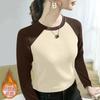 Camisa de cuello alto medio para mujer, otoño e invierno, camiseta interior de manga larga, camiseta de mujer de terciopelo de doble cara, letras estampadas de moda, top de estilo occidental