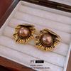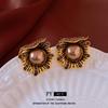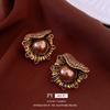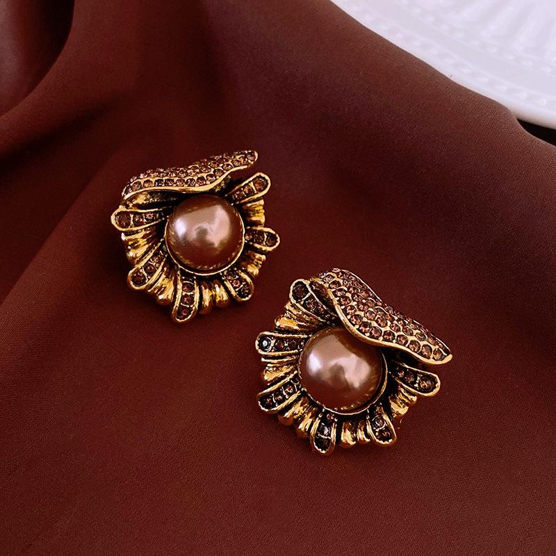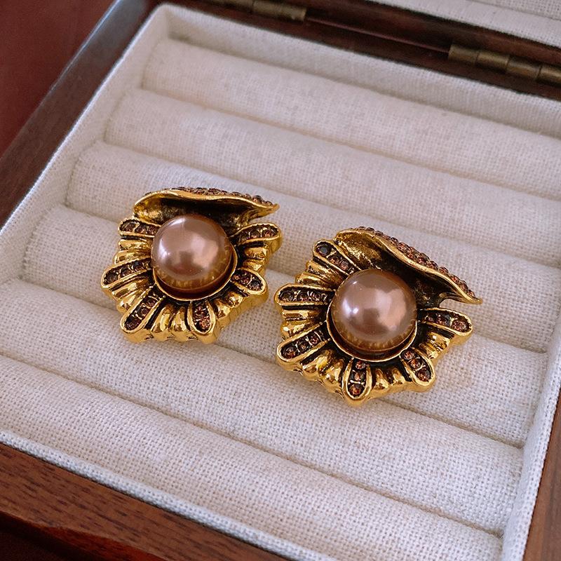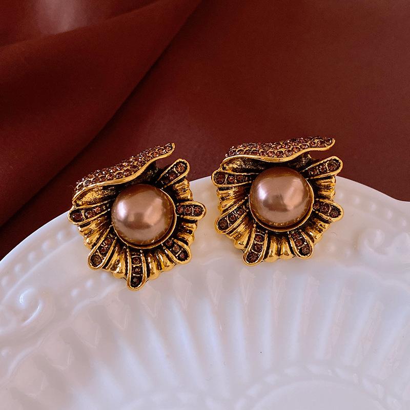 Pendientes vintage medievales de diamantes y perlas con diseño de flor, estilo cortesano retro, venta al por mayor