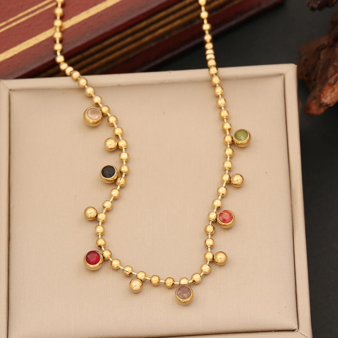 Compra Nuevo collar de joyería transfronteriza de diamante de color simple de acero inoxidable cadena de bolas de moda cadena de clavícula de moda INS N1131 al por mayor en Joom.pro