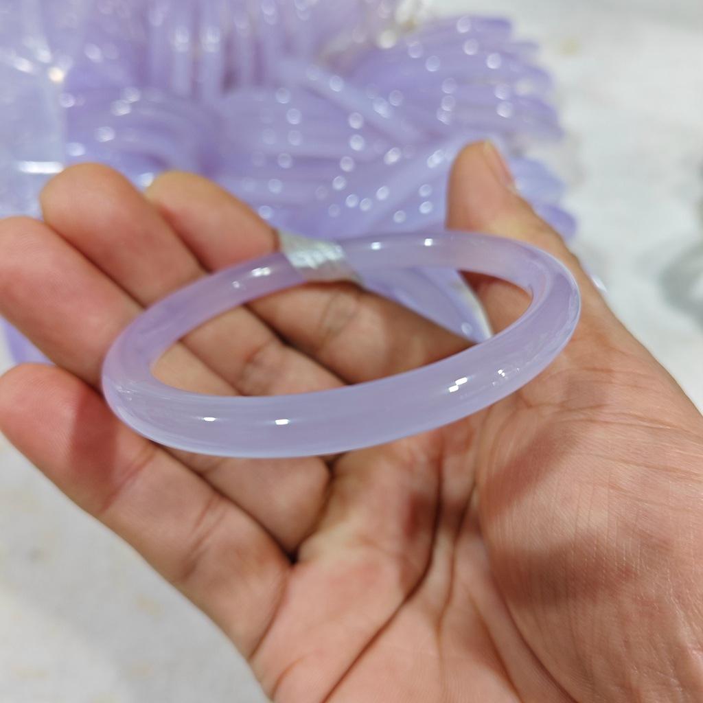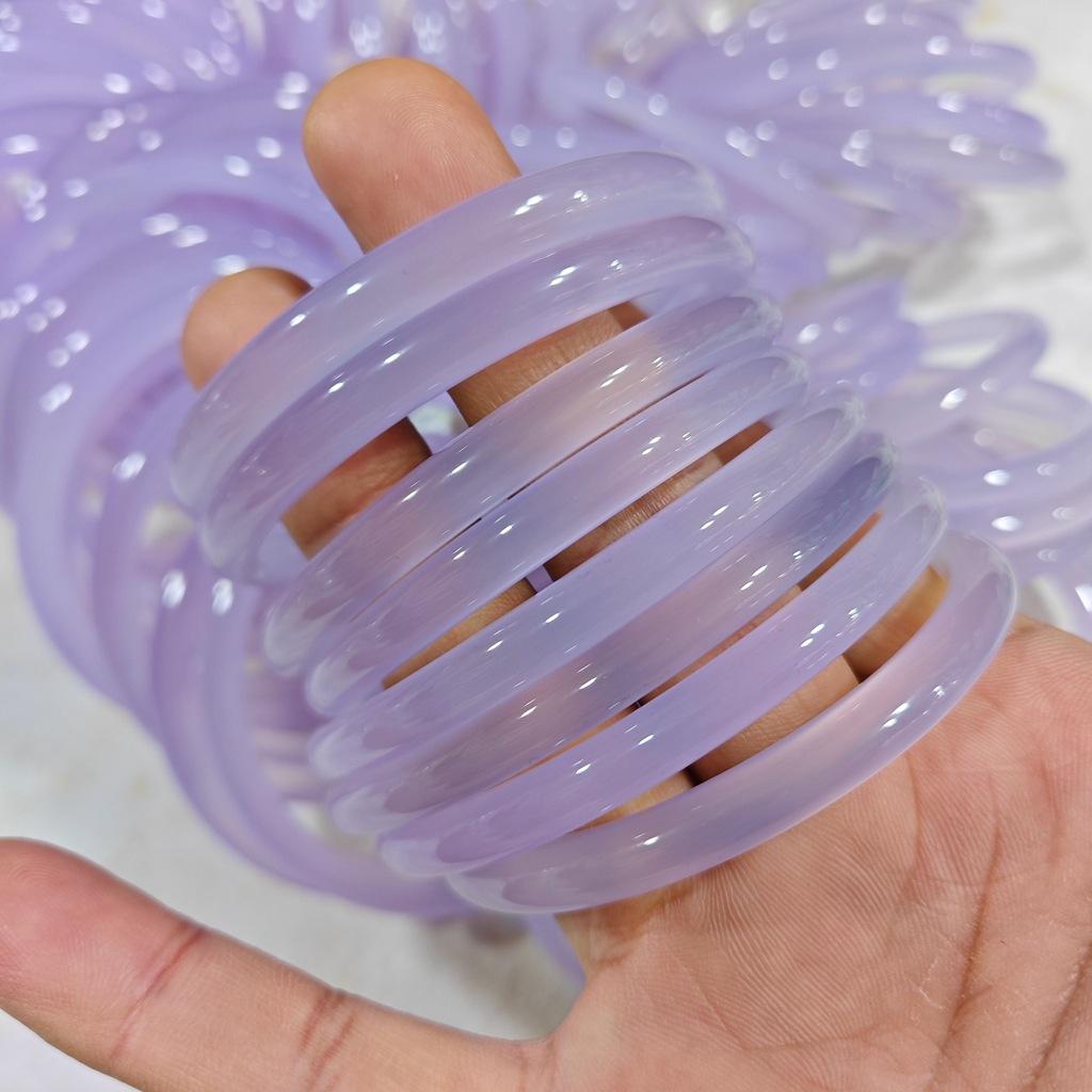 Pulsera Violeta Calcedonia Pulsera Cascabel 6mm para Mujer Lila Claro Lavanda Ágata Jade Pulsera Lichi Congelado Calcedonia Púrpura Pulsera