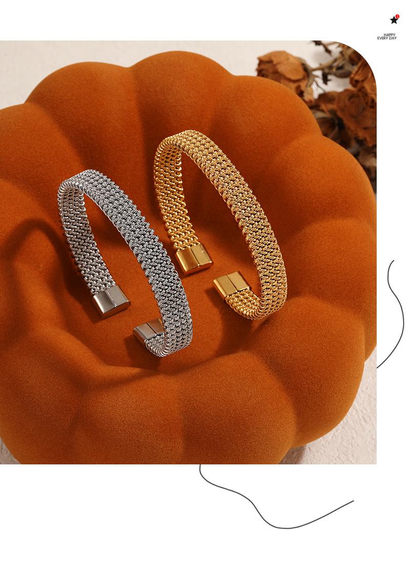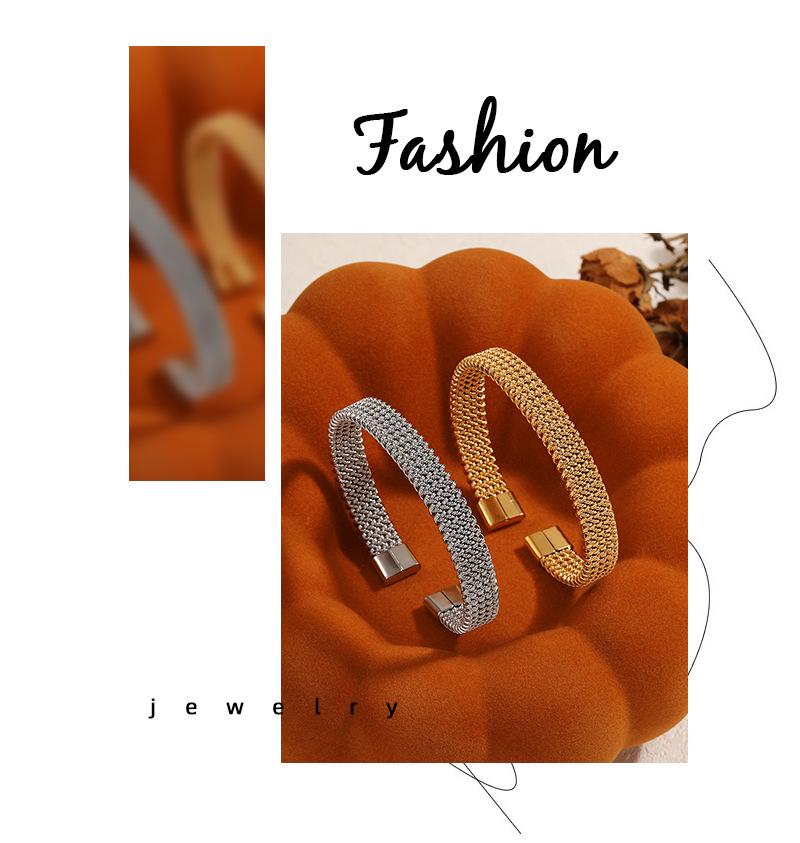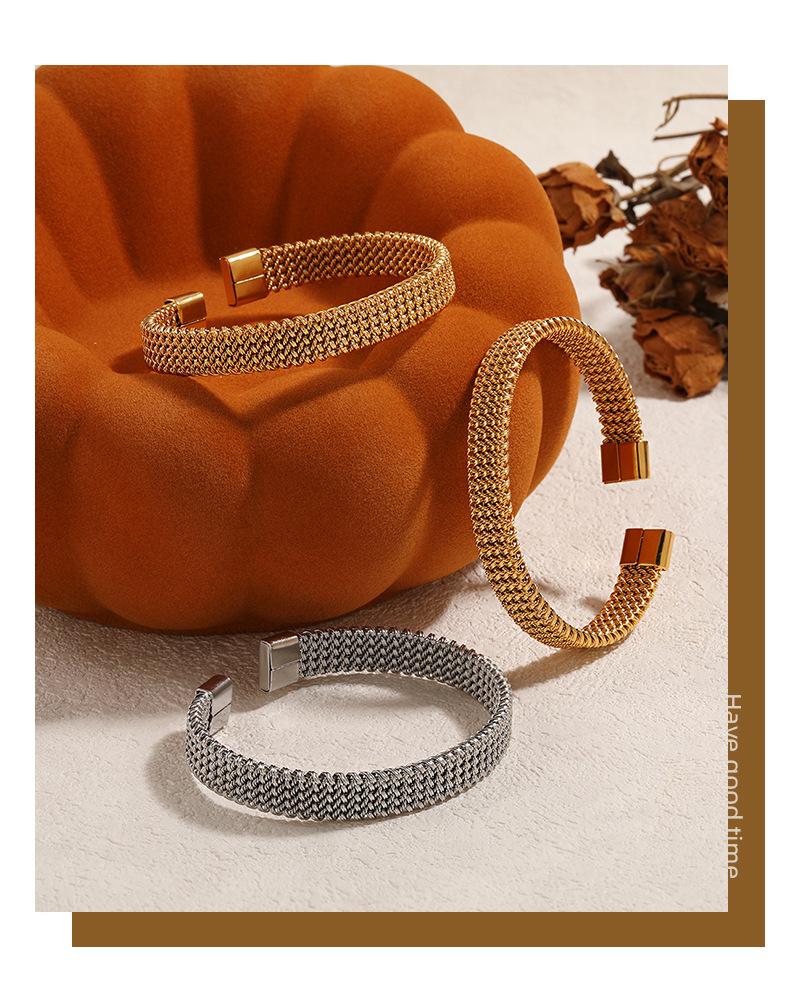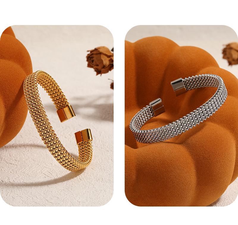 Europa y Estados Unidos pulsera elástica abierta de malla tejida de acero inoxidable transfronteriza nueva moda personalidad alto sentido pulsera de acero de titanio