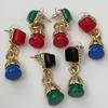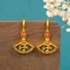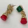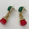 Pendientes largos de estilo antiguo medio con patrón de oro verde rojo retro de moda europea y americana