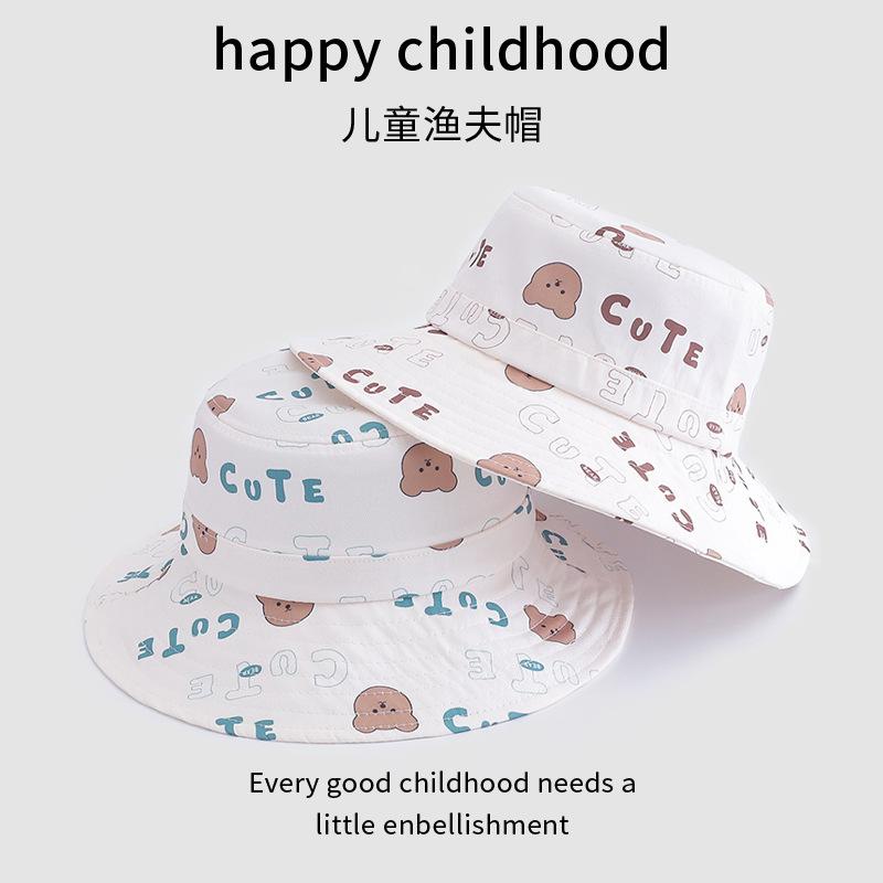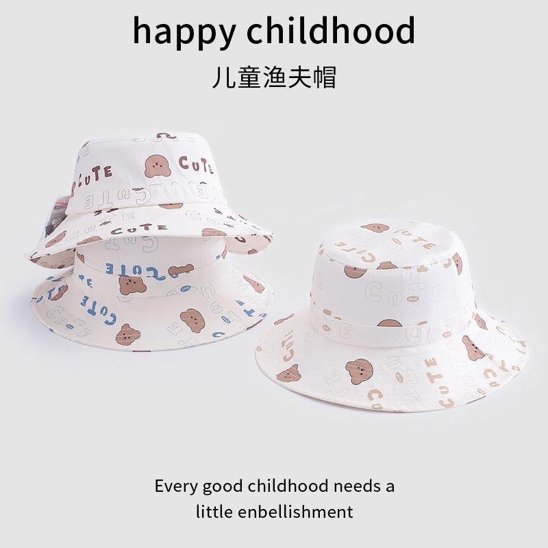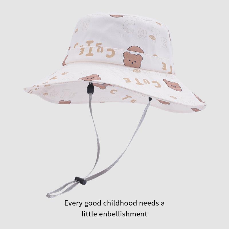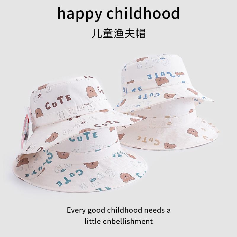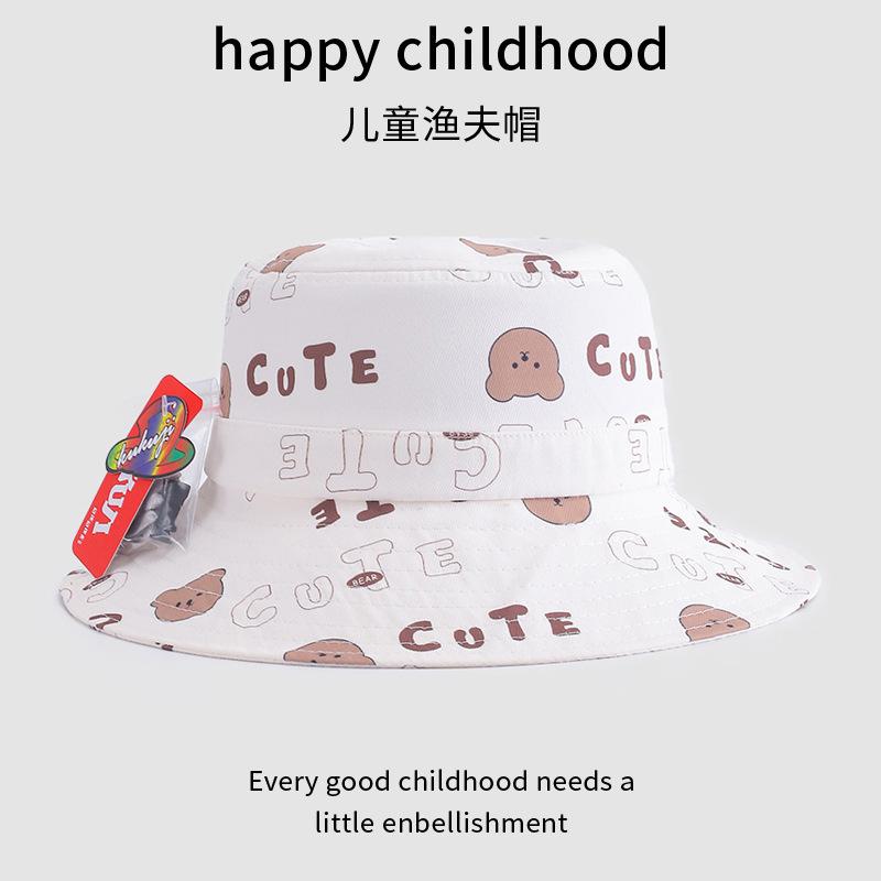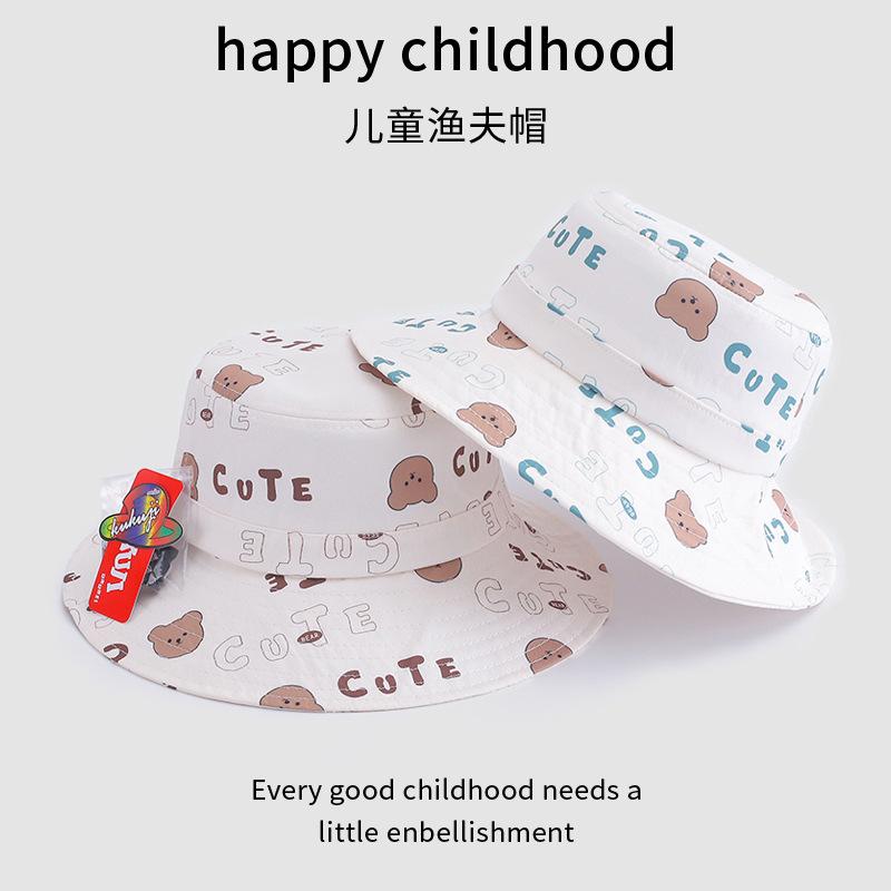Sombrero de pescador para niños, diseño de oso de dibujos animados, fino, estilo japonés, para playa, para niños y niñas.