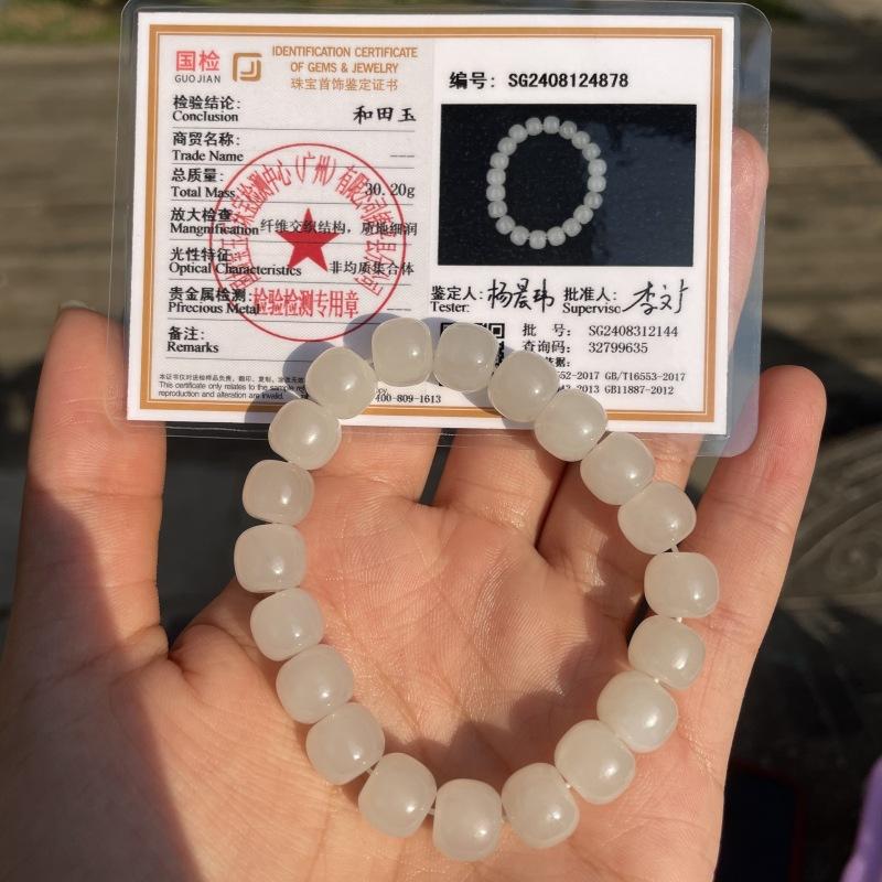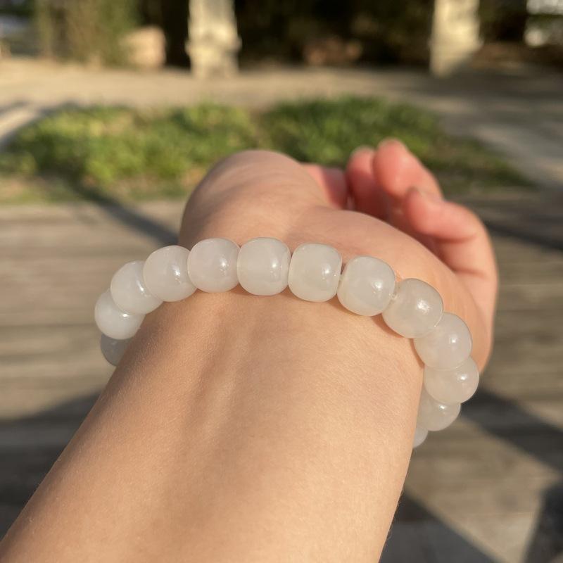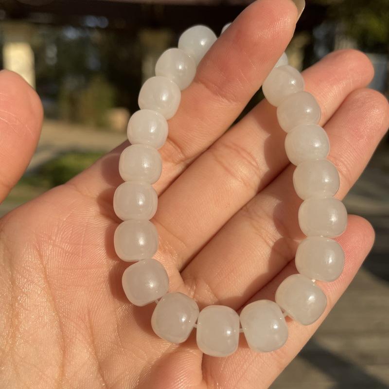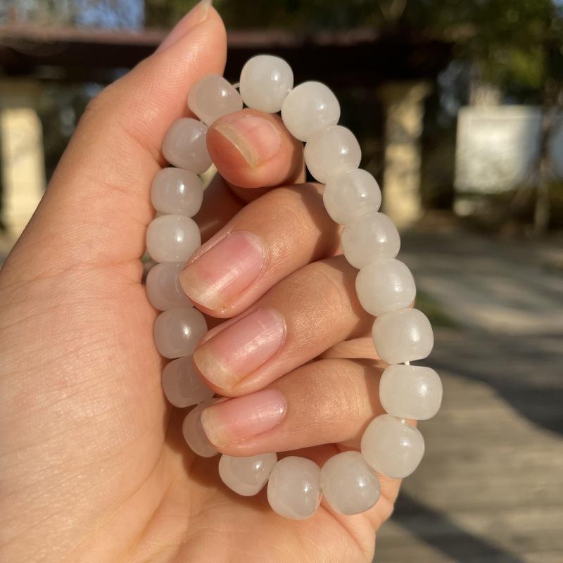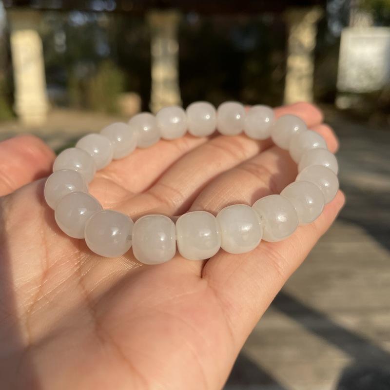 Pulsera de Cuentas Antiguas de Jade Hetian Jade Blanco Jade Natural Material de Montaña Pulsera para Mujer de una Sola Vuelta Cuentas de Barril Joyería de Jade Cuentas de Manzana Venta al por Mayor