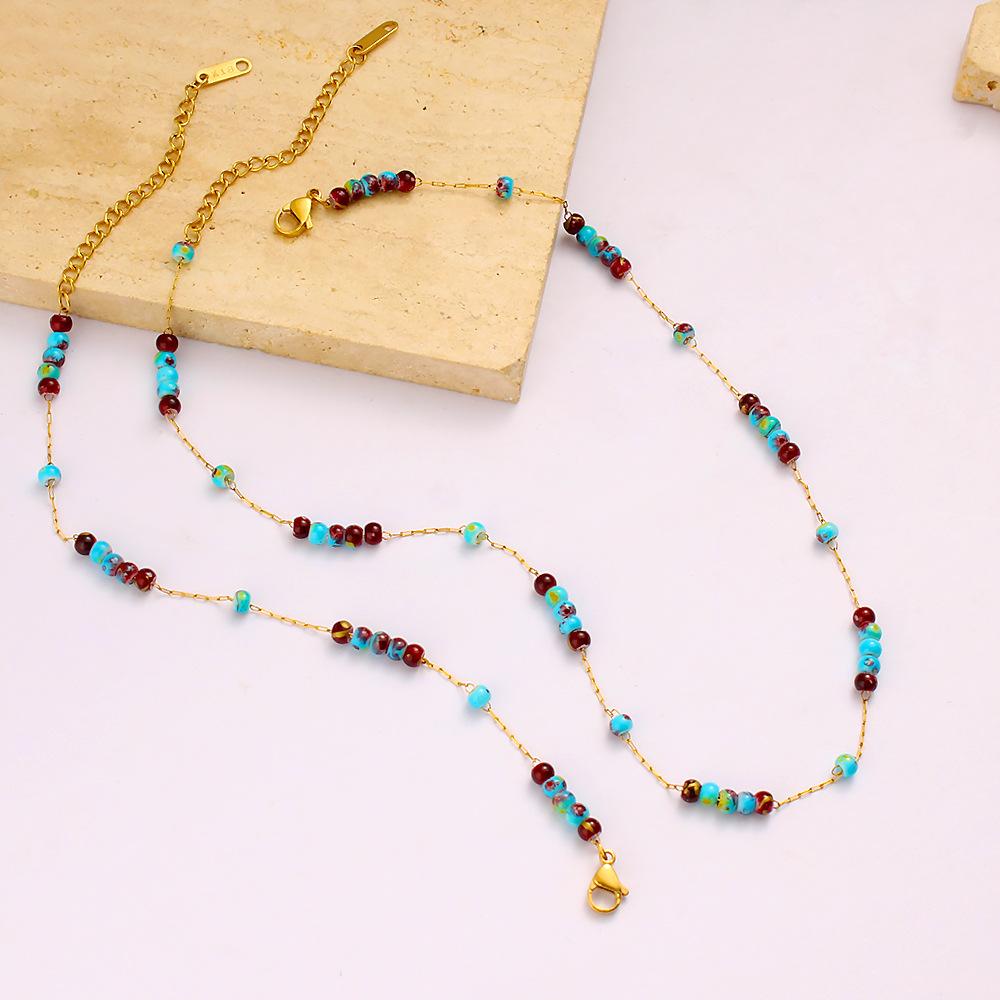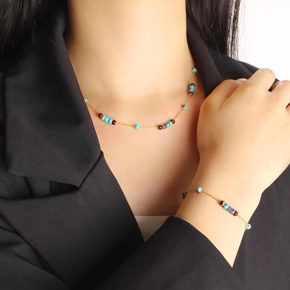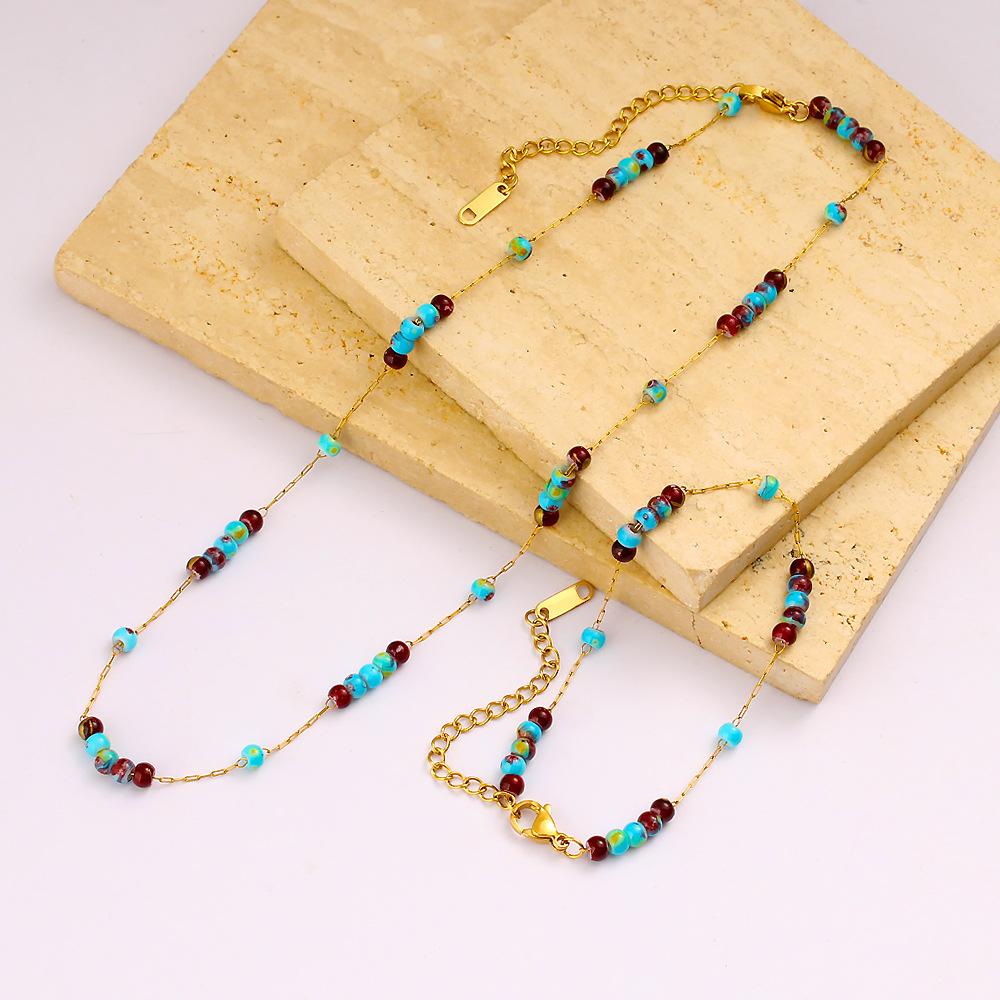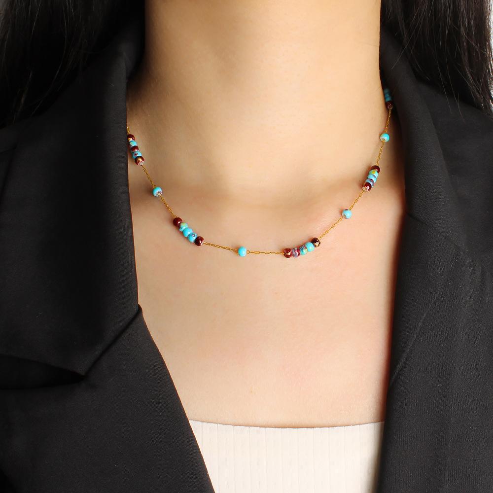 Pulsera de perlas de piedra natural nicho japonesa y coreana Ins Wind Beach, personalizada, de acero de titanio y esmaltado en oro de 18 quilates, cadena para el cuello