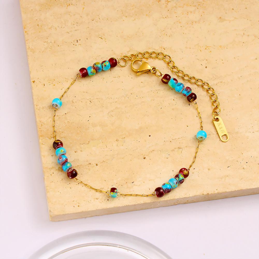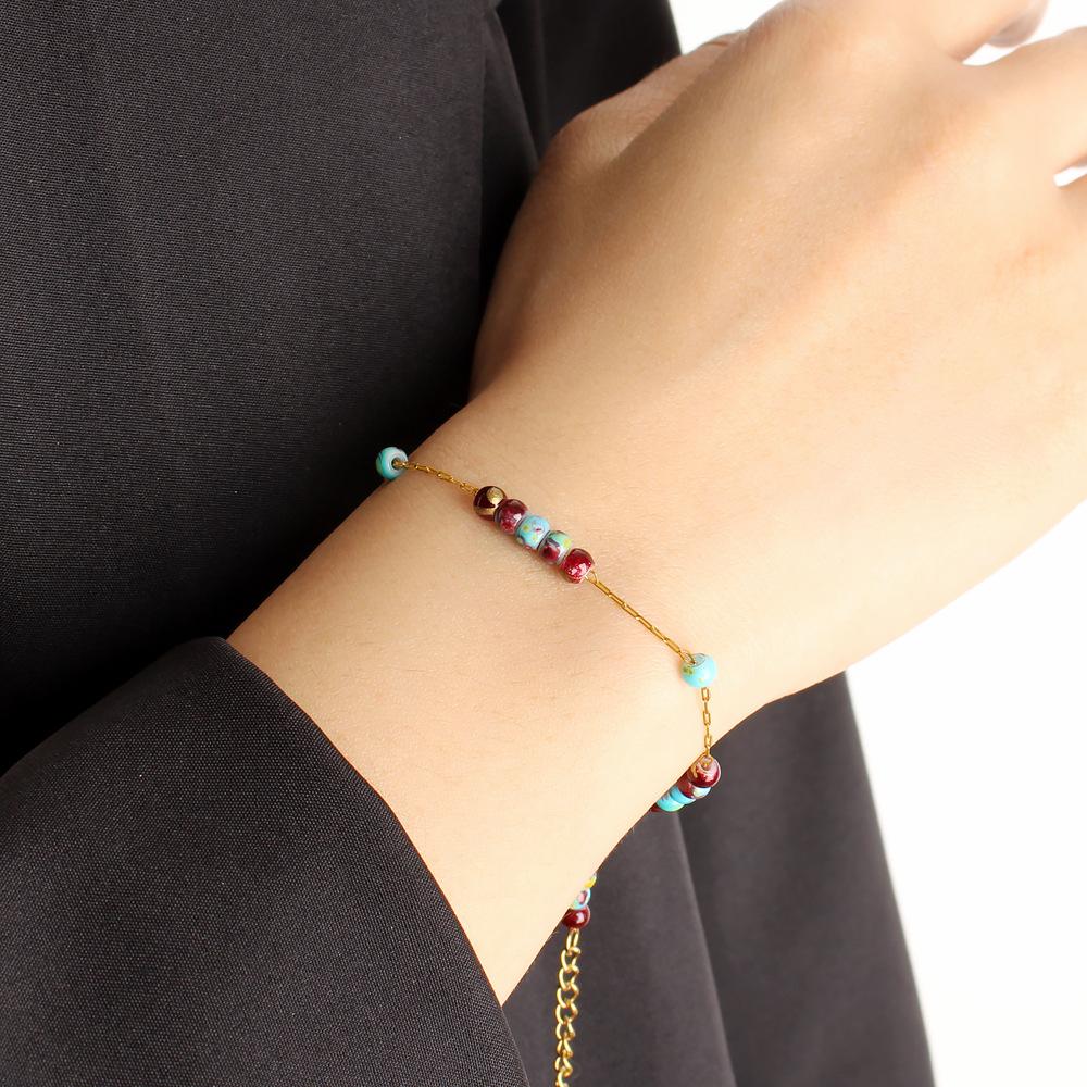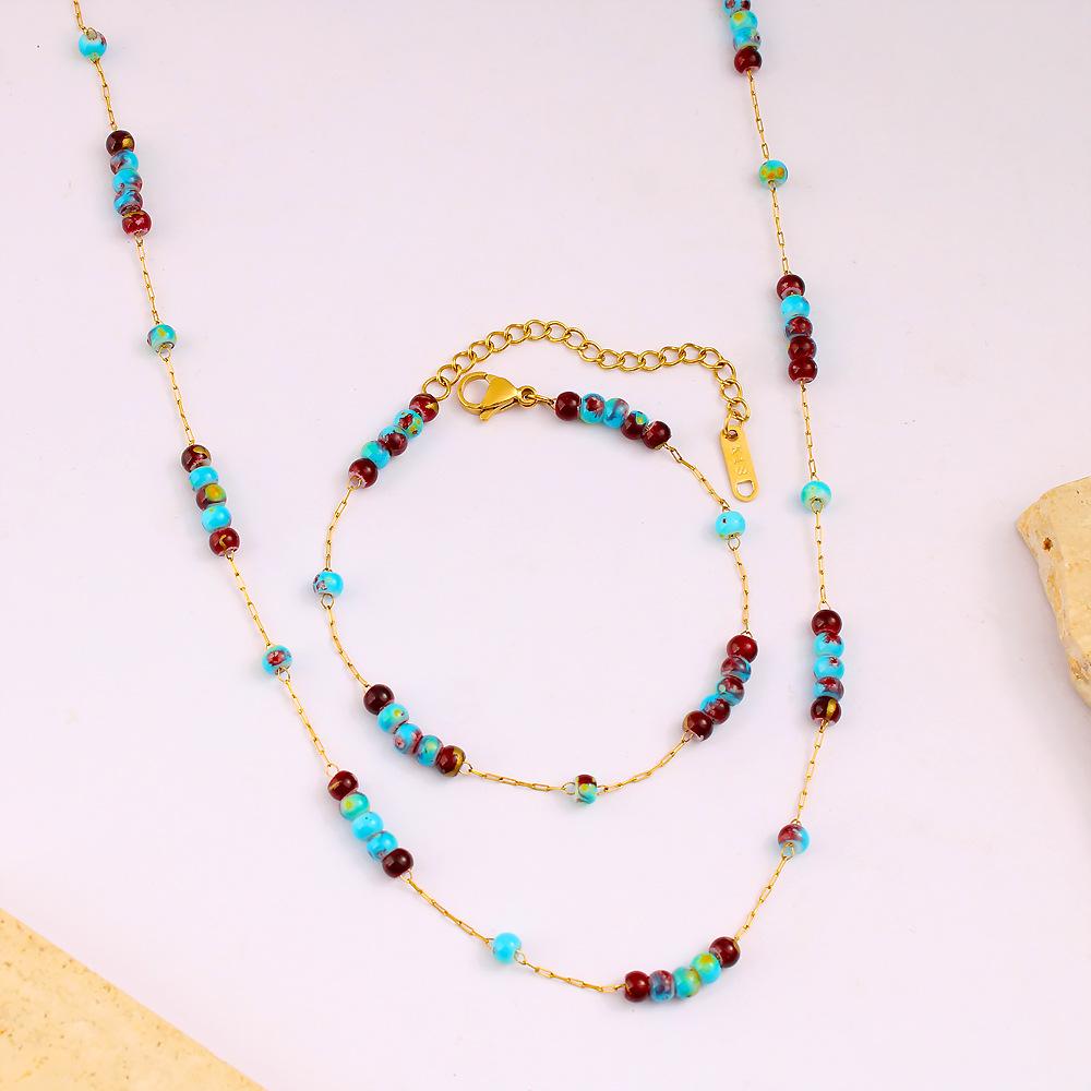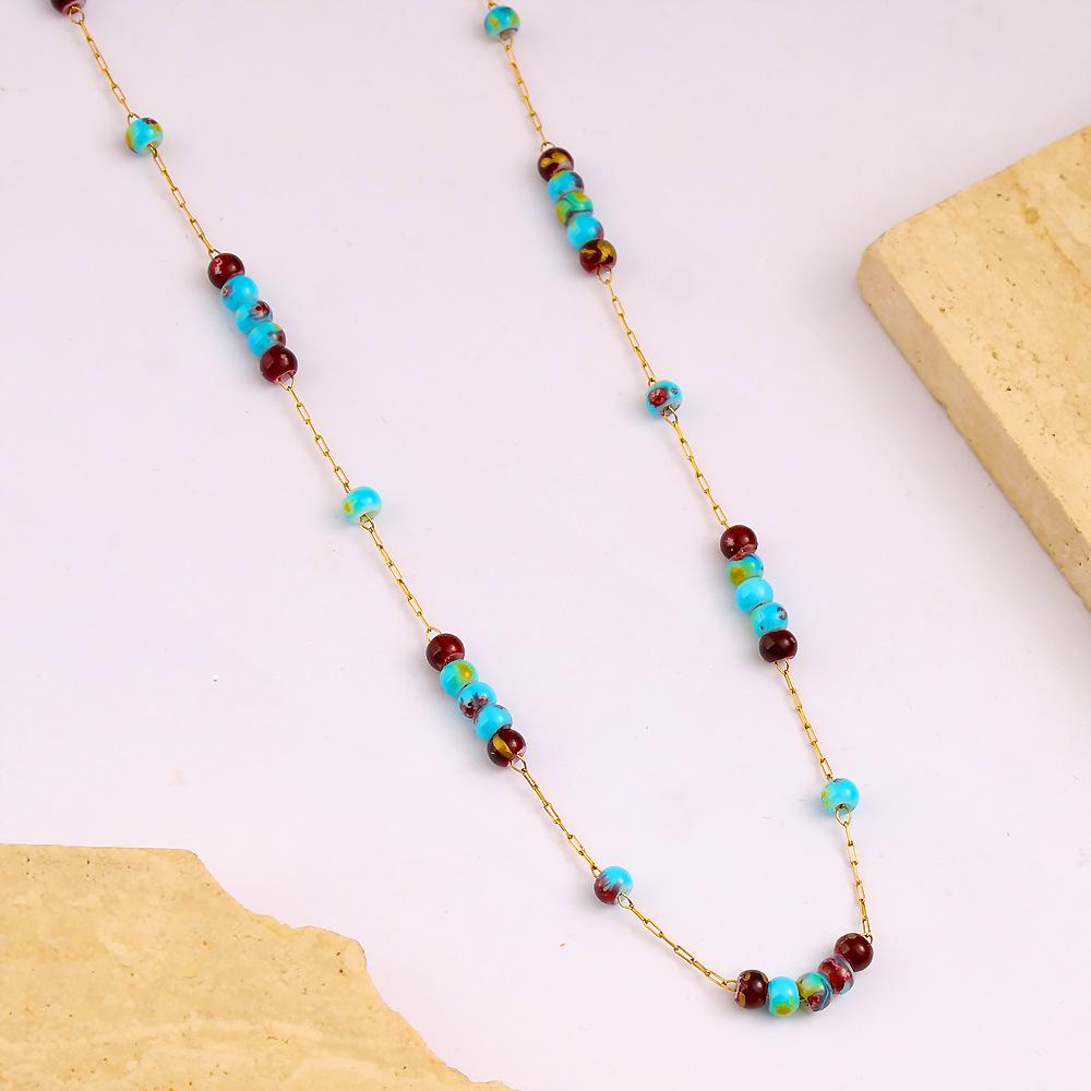 Pulsera de perlas de piedra natural nicho japonesa y coreana Ins Wind Beach, personalizada, de acero de titanio y esmaltado en oro de 18 quilates, cadena para el cuello