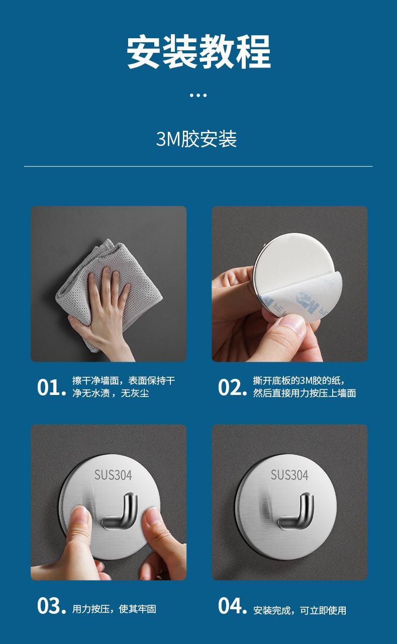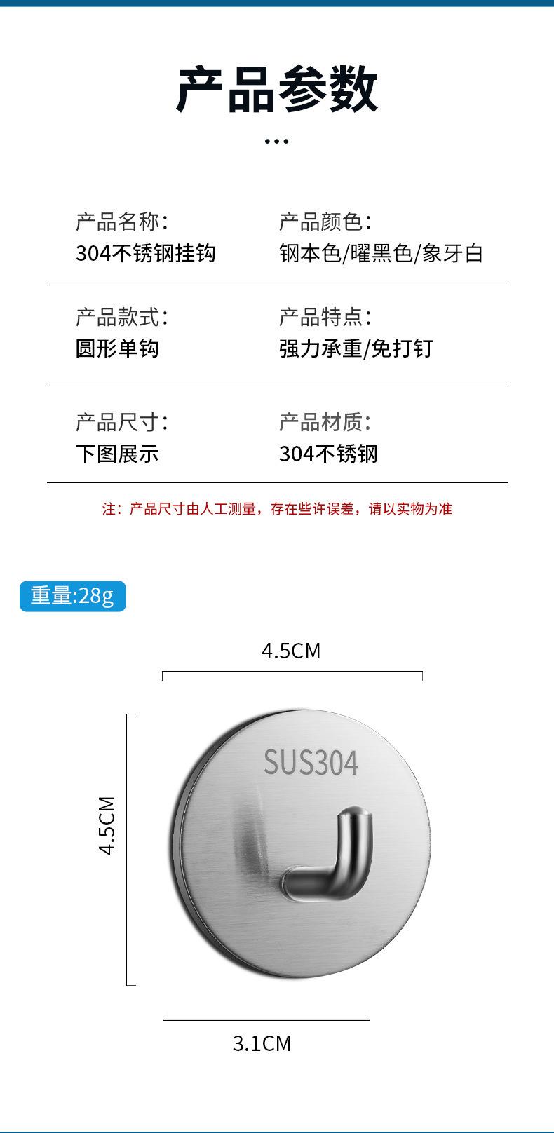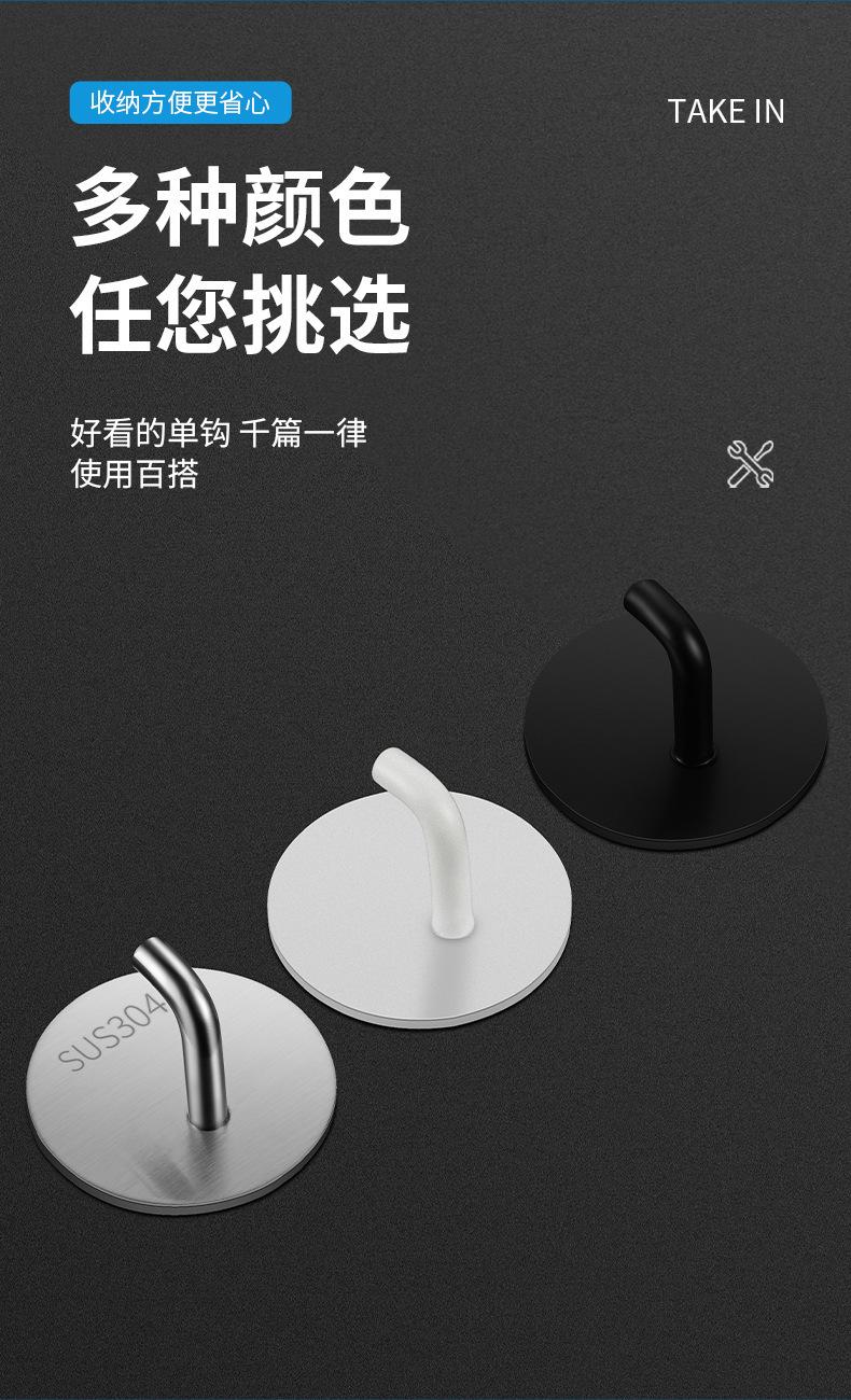 Gancho simple de acero inoxidable, gancho adhesivo redondo blanco y negro, gancho impermeable para cocina, baño y ducha.