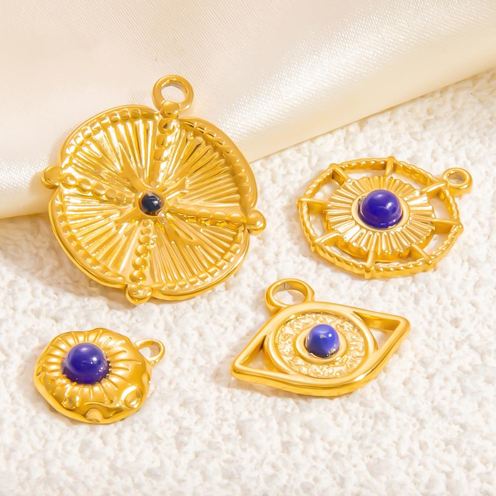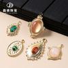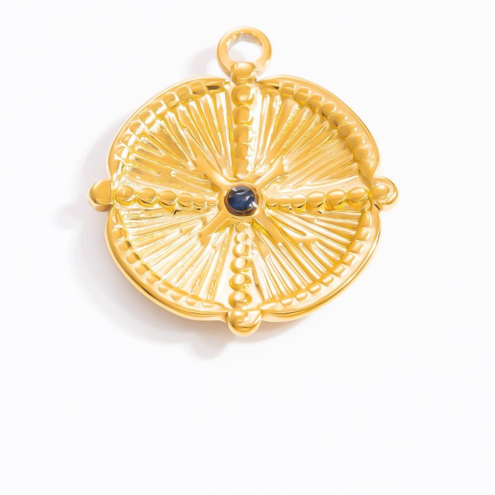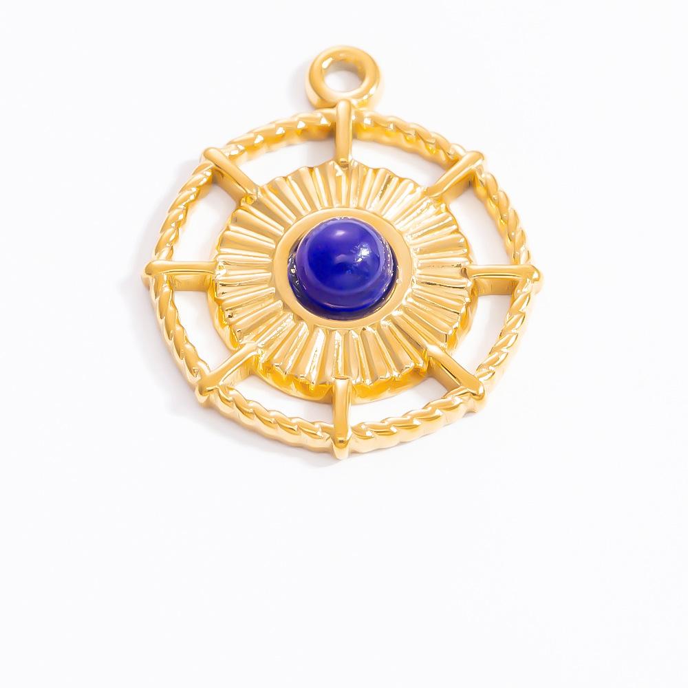 Accesorios de joyería DIY no se decoloran, colgante de collar con brújula de piedra natural, colgante único, joyería de acero de titanio y oro de 18 quilates con borde cruzado.