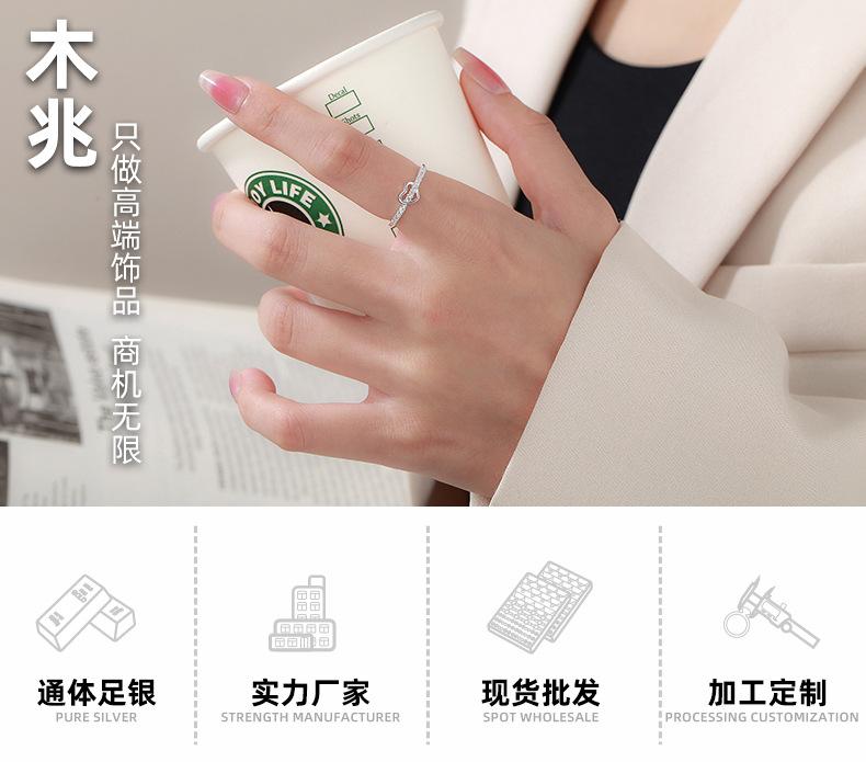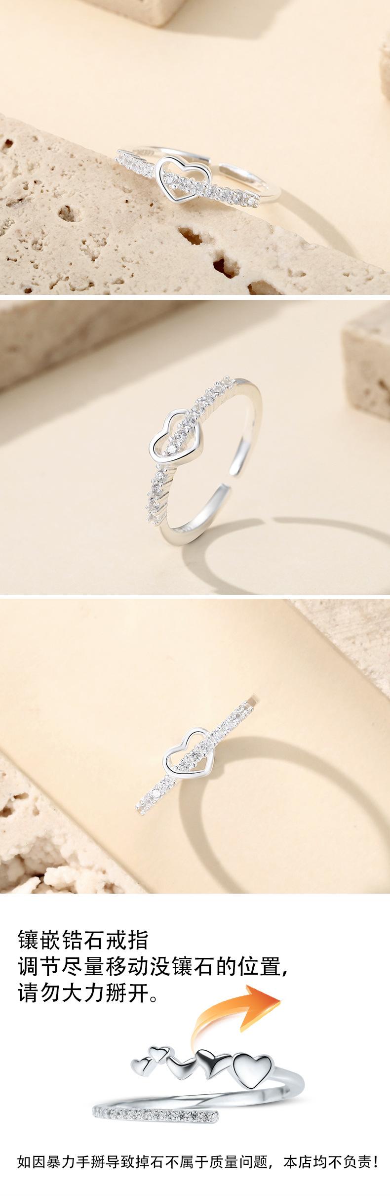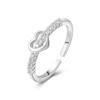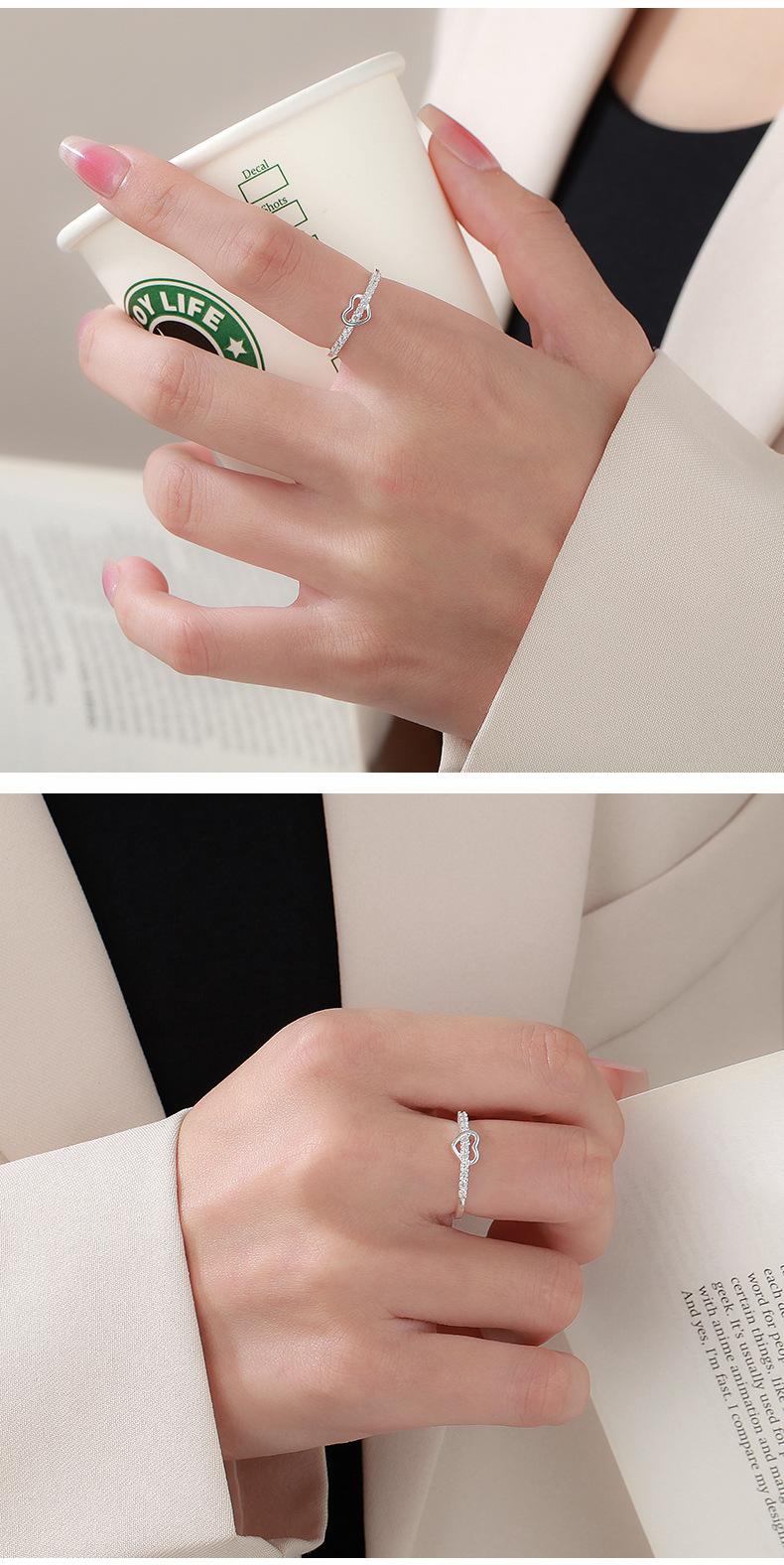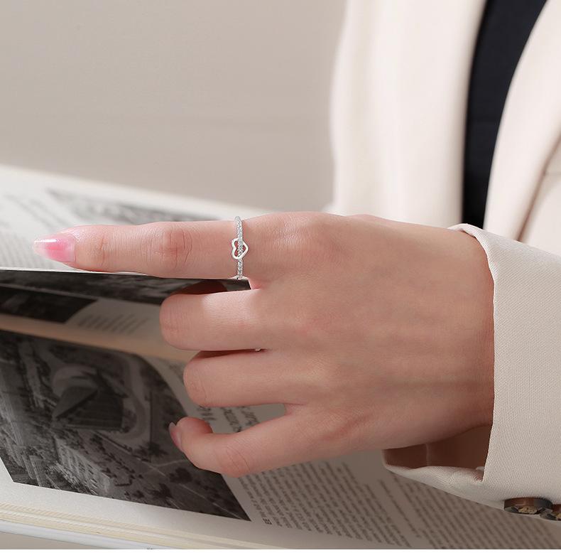 Anillo de plata de ley S999 con forma de corazón y diamantes, moderno y de alta gama, con un toque de plata, ligero y de lujo, abierto y combinable.