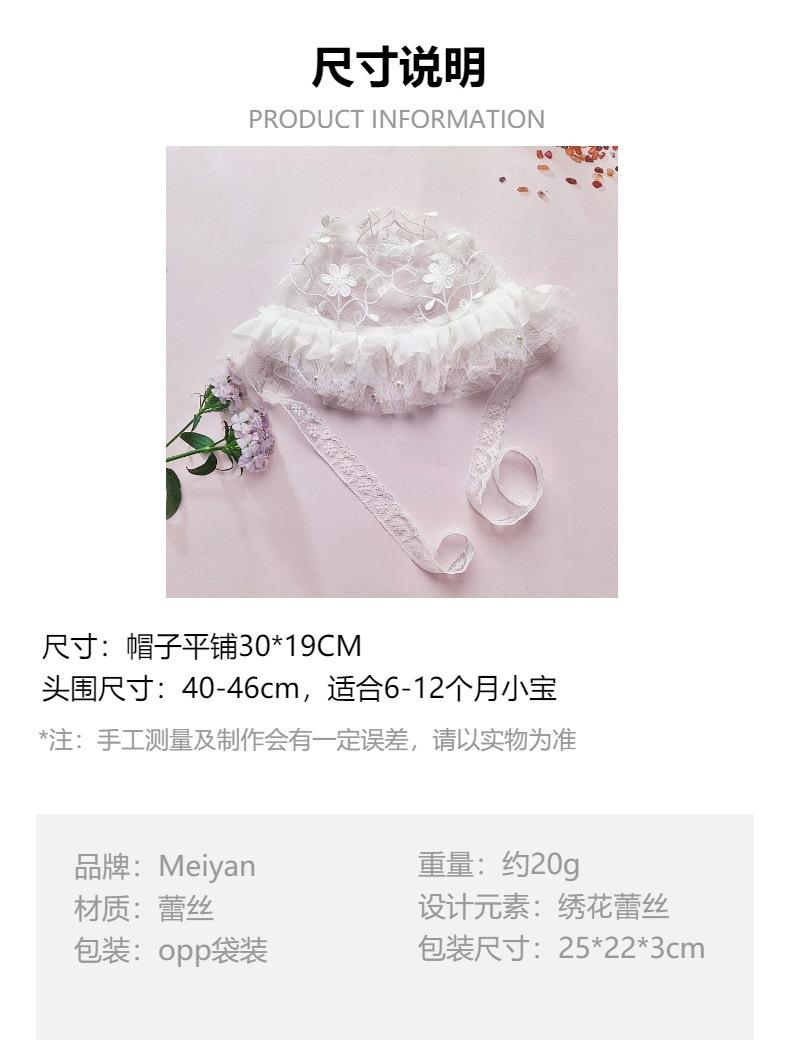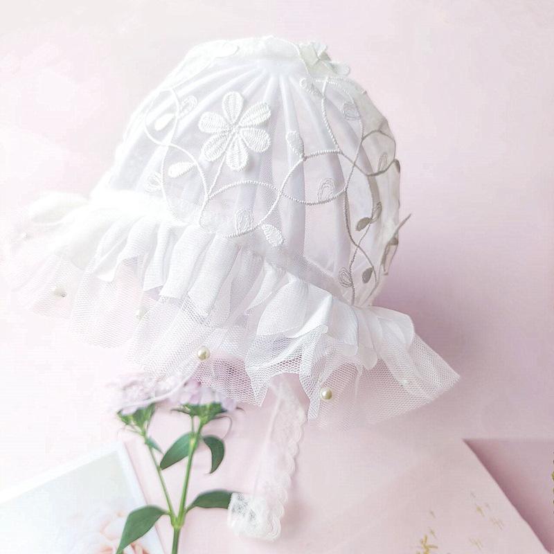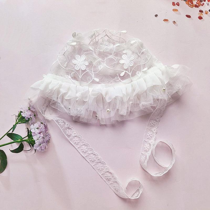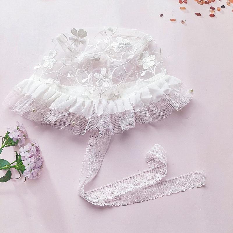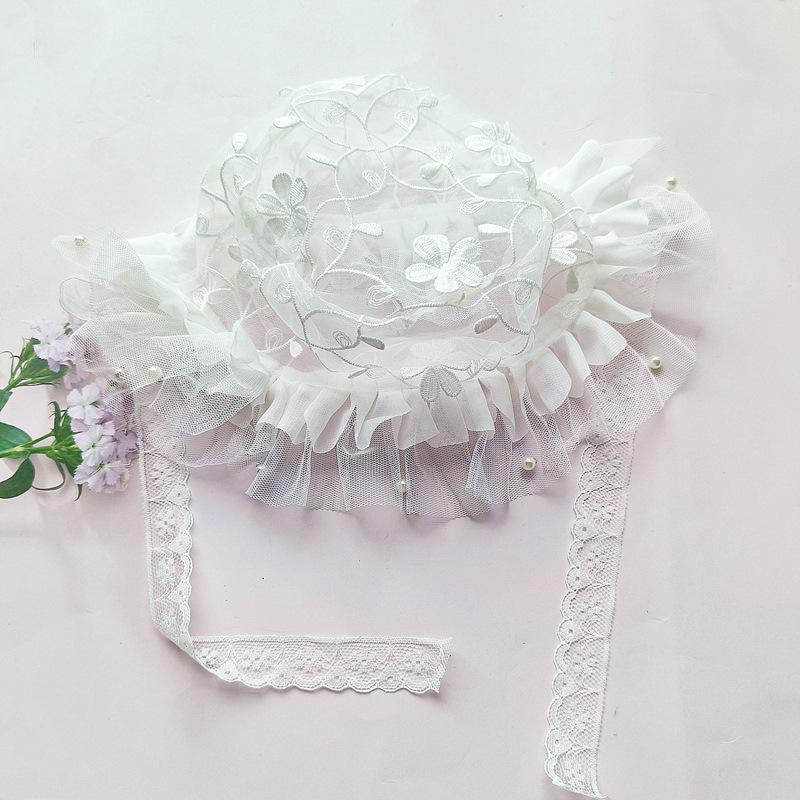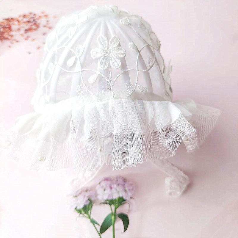 Gorra de encaje de verano para niños, sombrero de sol para bebés, protección transpirable para la cabeza, linda gorra de corte de princesa para bebés de 0 a 12 meses