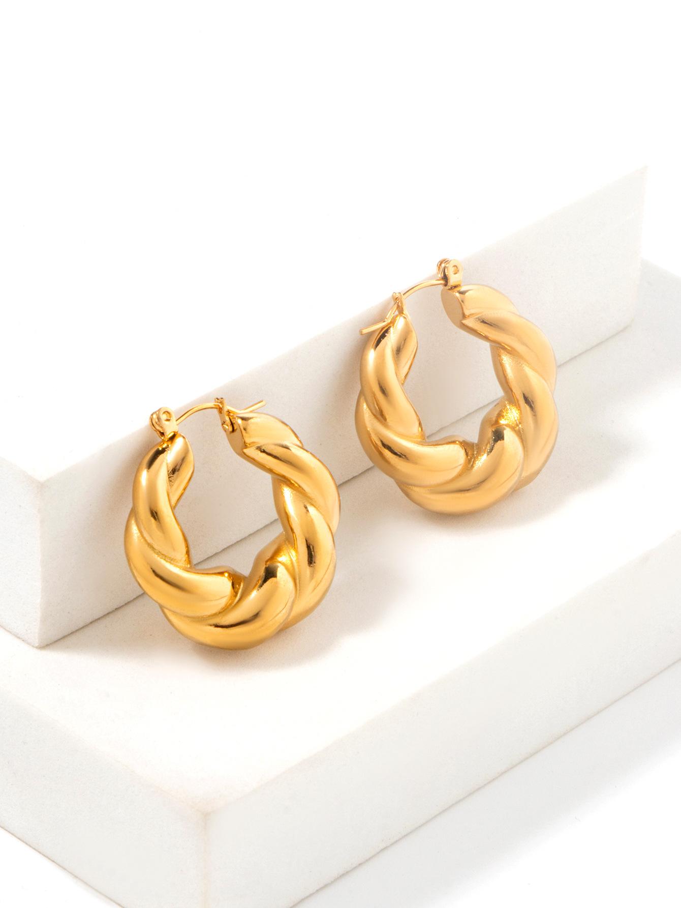 Aretes de Estilo Celebridad de Internet Europeo y Americano, Aretes de Aro Torcido de Acero Inoxidable Dorado, Aretes Gruesos Trenzados de Acero Titanio en Forma de U