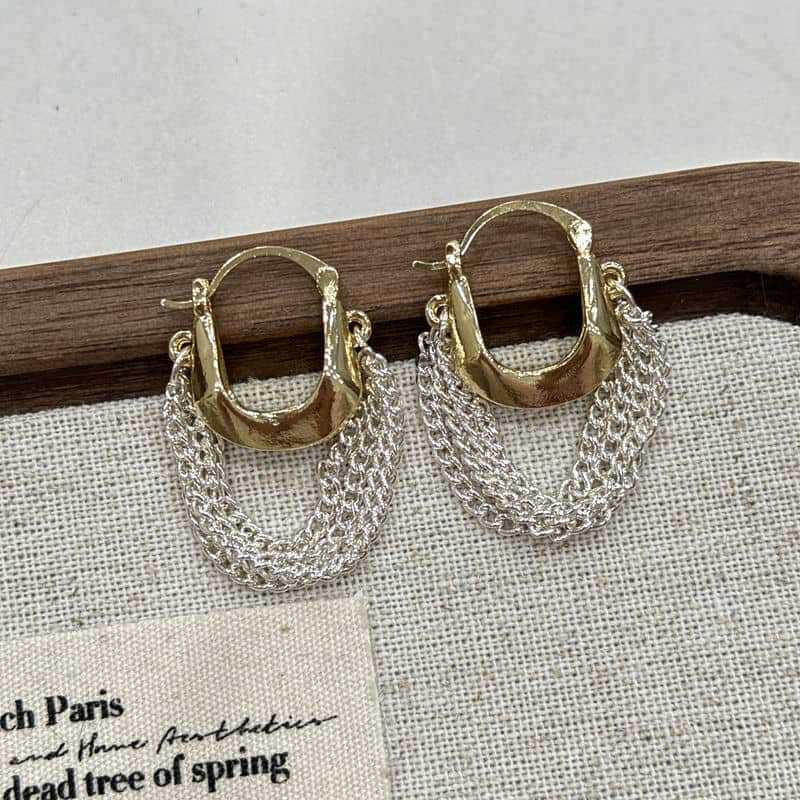 Pendientes de malla con diseño de nicho, ligeros y lujosos, de estilo retro de alta gama, para mujer.