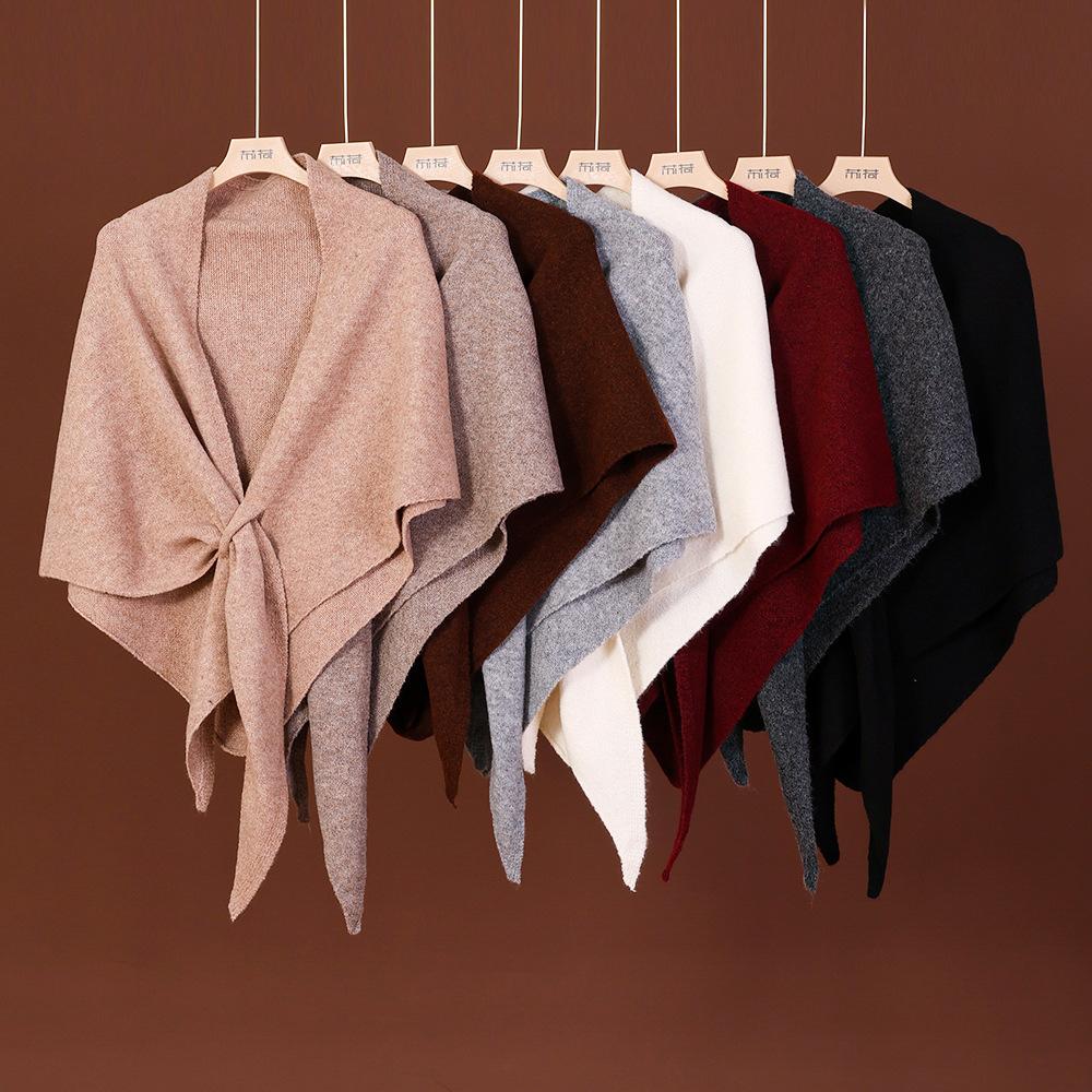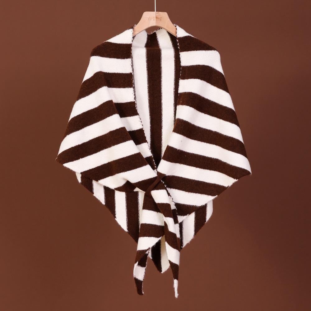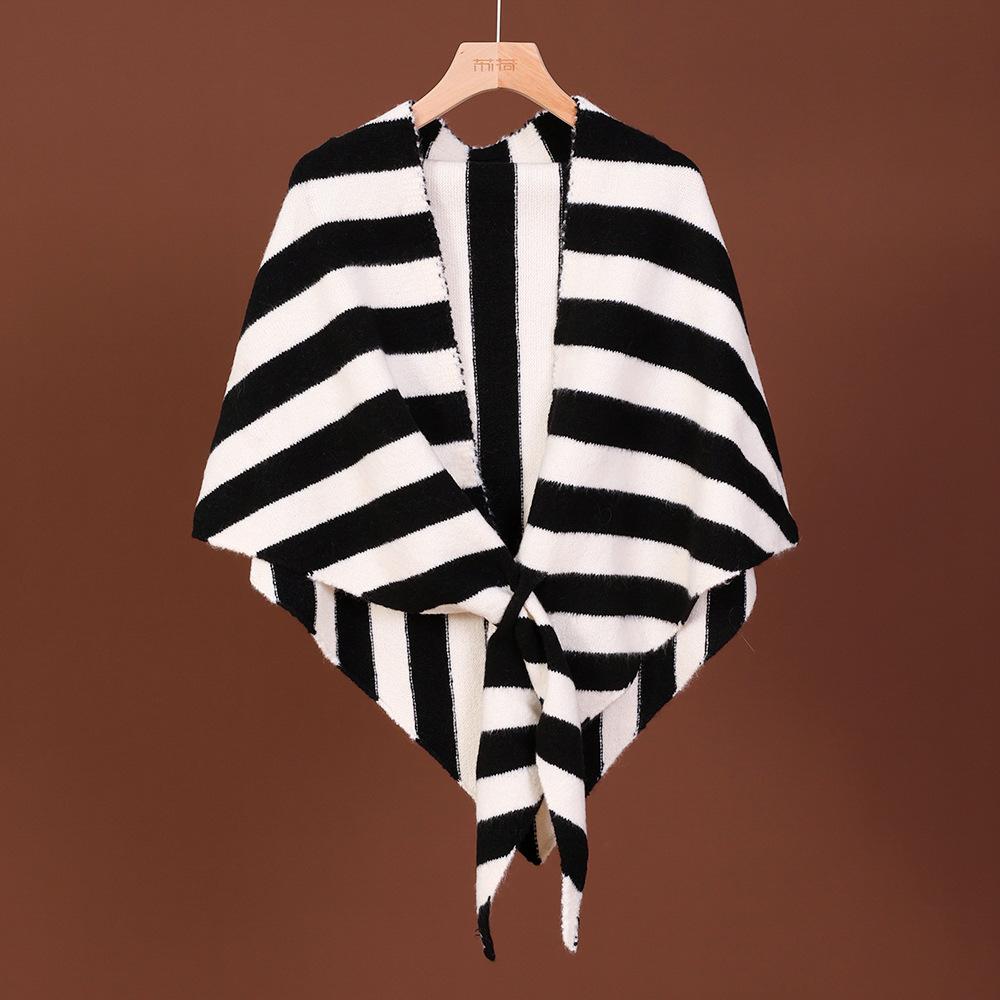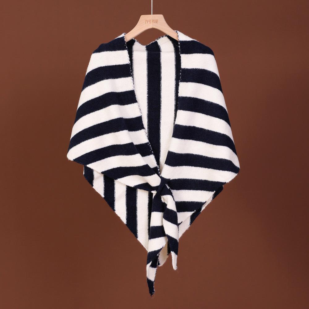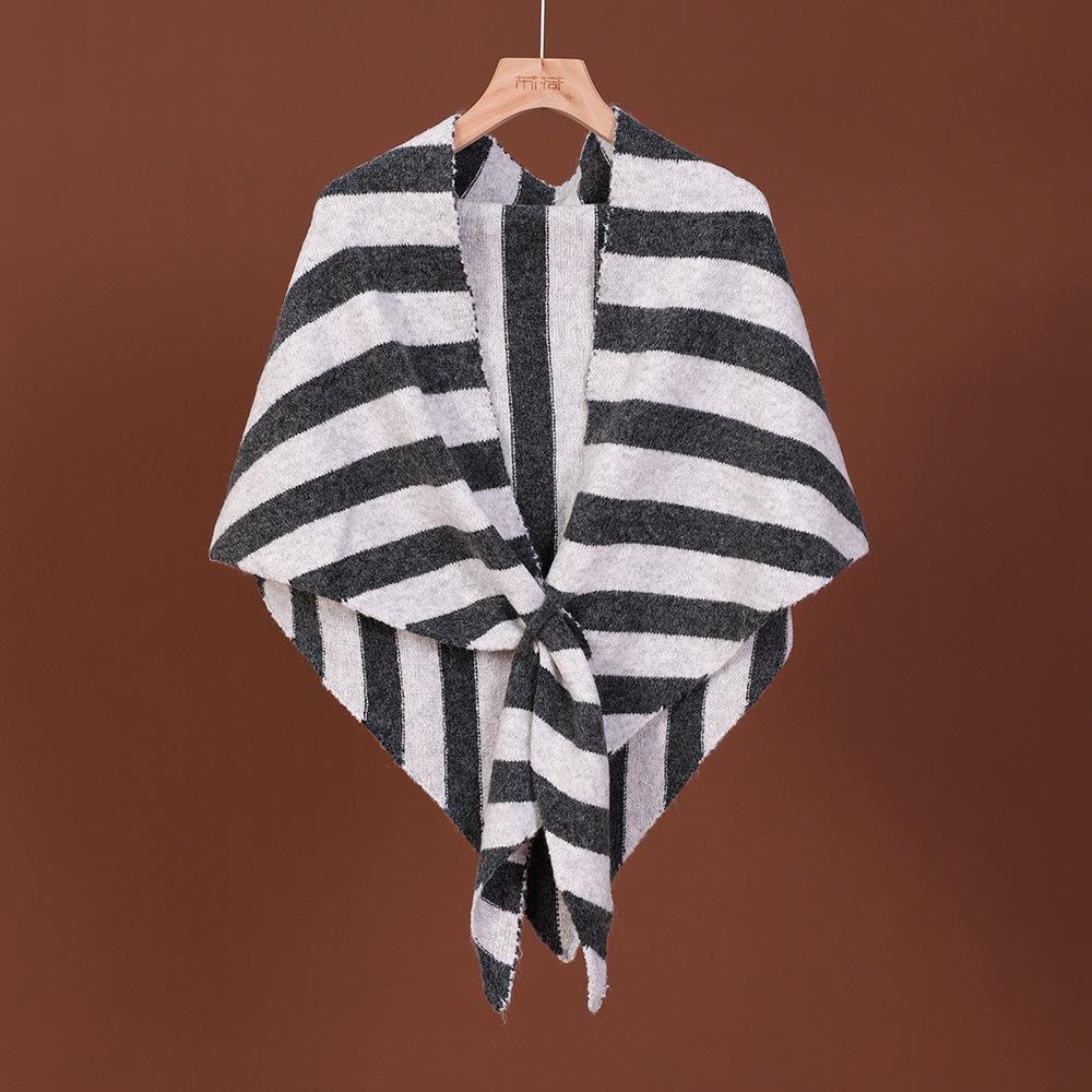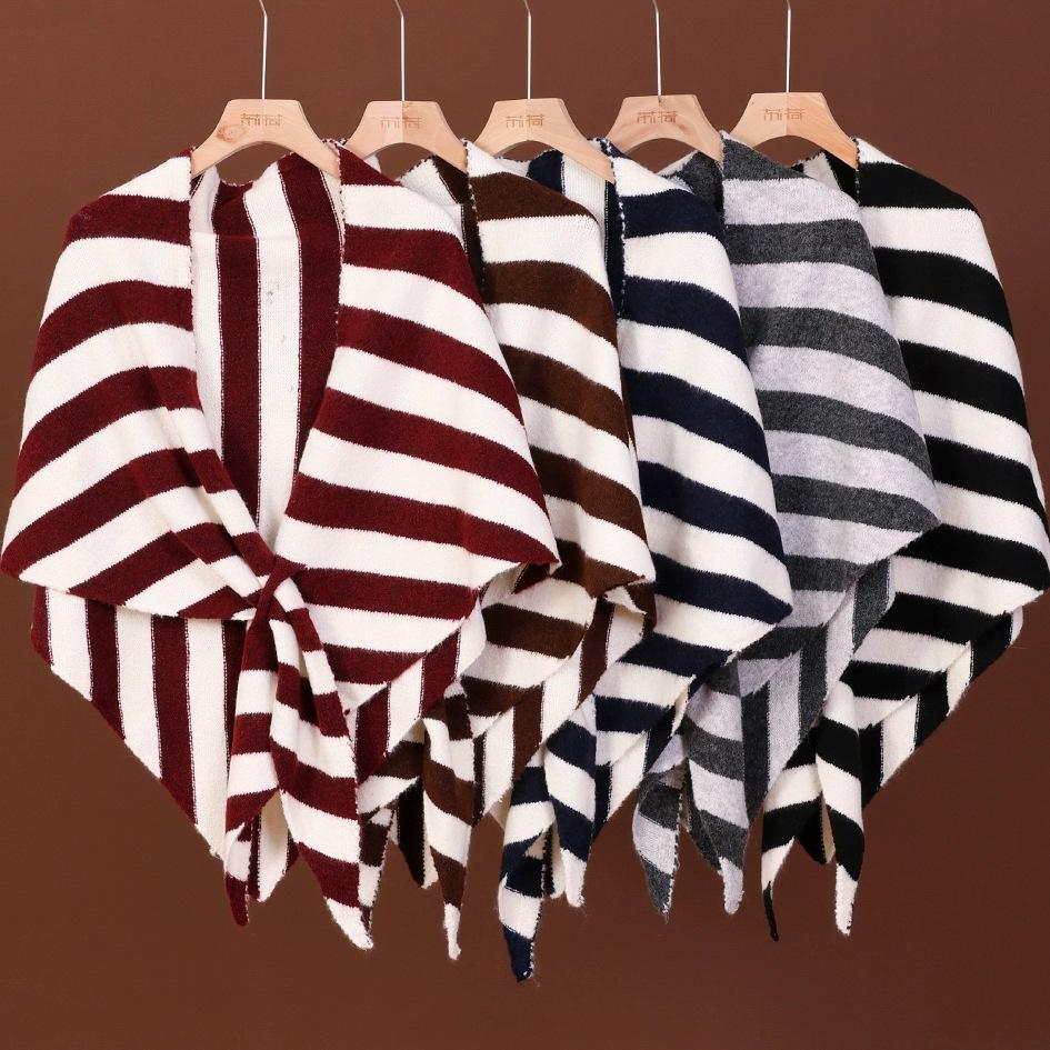 Bufanda triangular de lana a rayas para mujer, cálida, para otoño e invierno, con protección para el cuello, de color liso, grande, para habitaciones con aire acondicionado