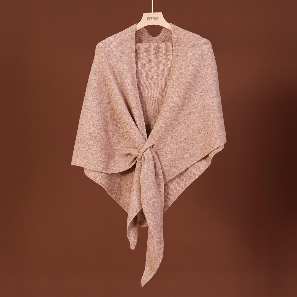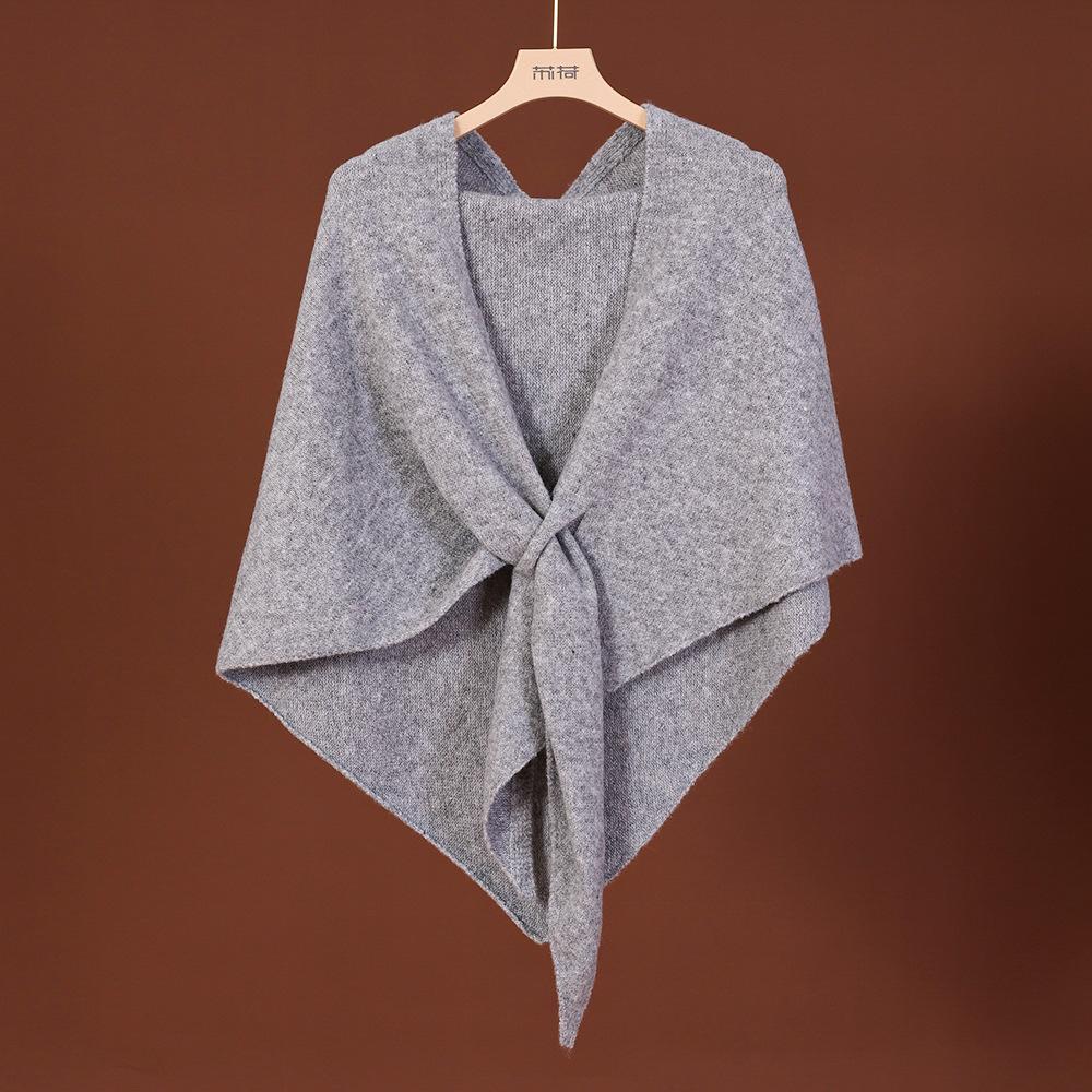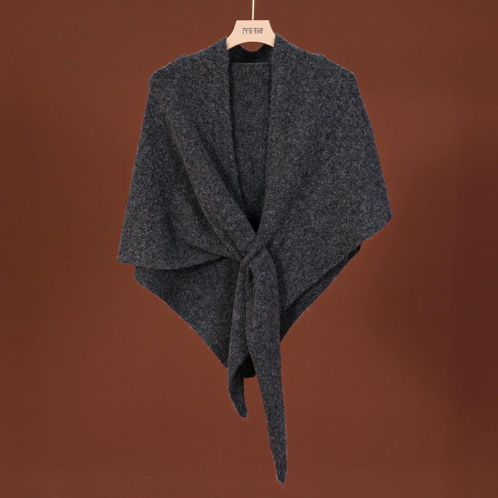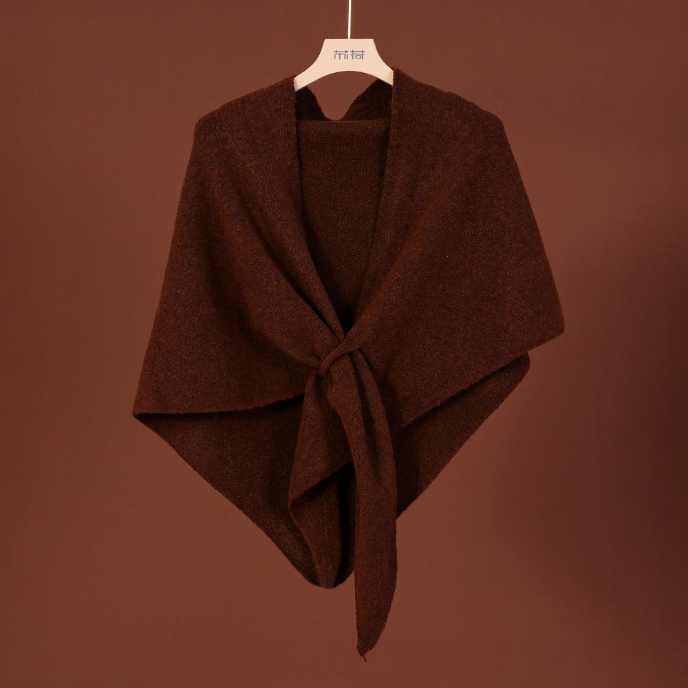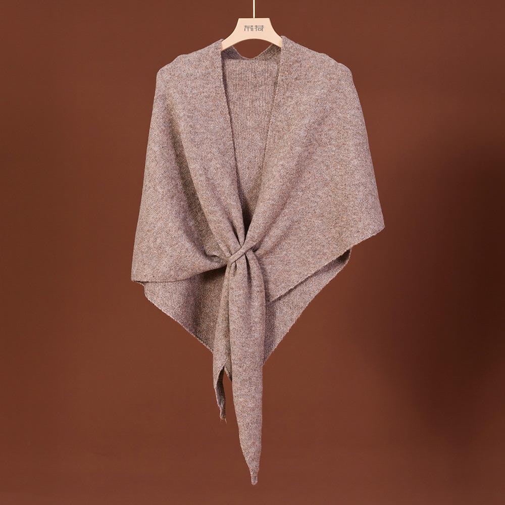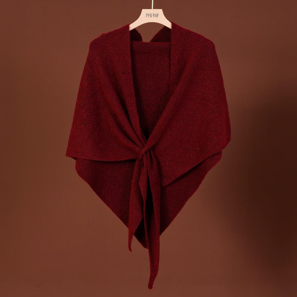 Bufanda triangular de lana a rayas para mujer, cálida, para otoño e invierno, con protección para el cuello, de color liso, grande, para habitaciones con aire acondicionado