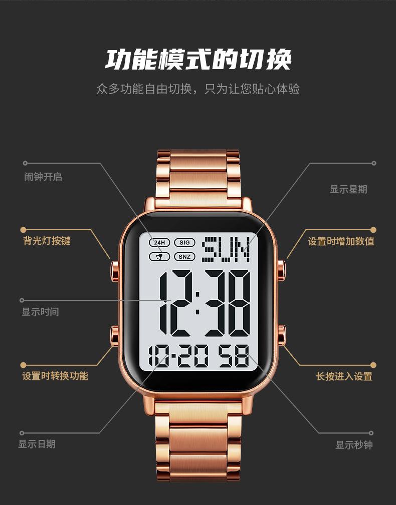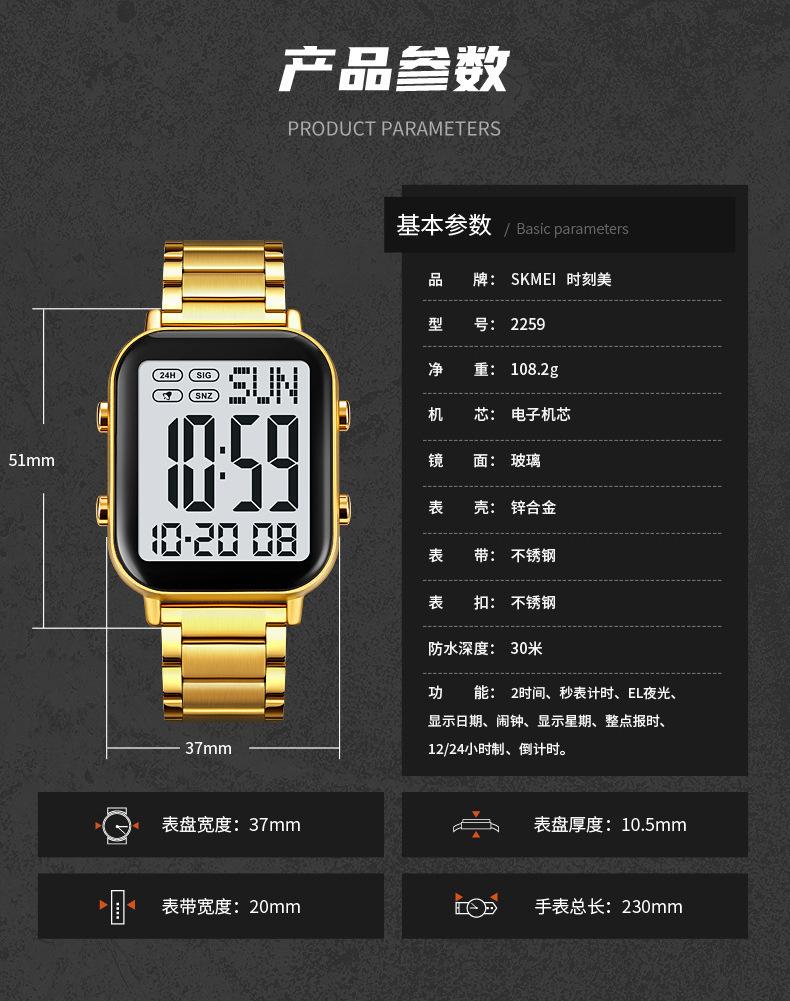 SKMEI Moment - Hermoso reloj deportivo para hombre y mujer, multifuncional, resistente al agua, luminoso, despertador, reloj electrónico, reloj de pulsera, venta al por mayor