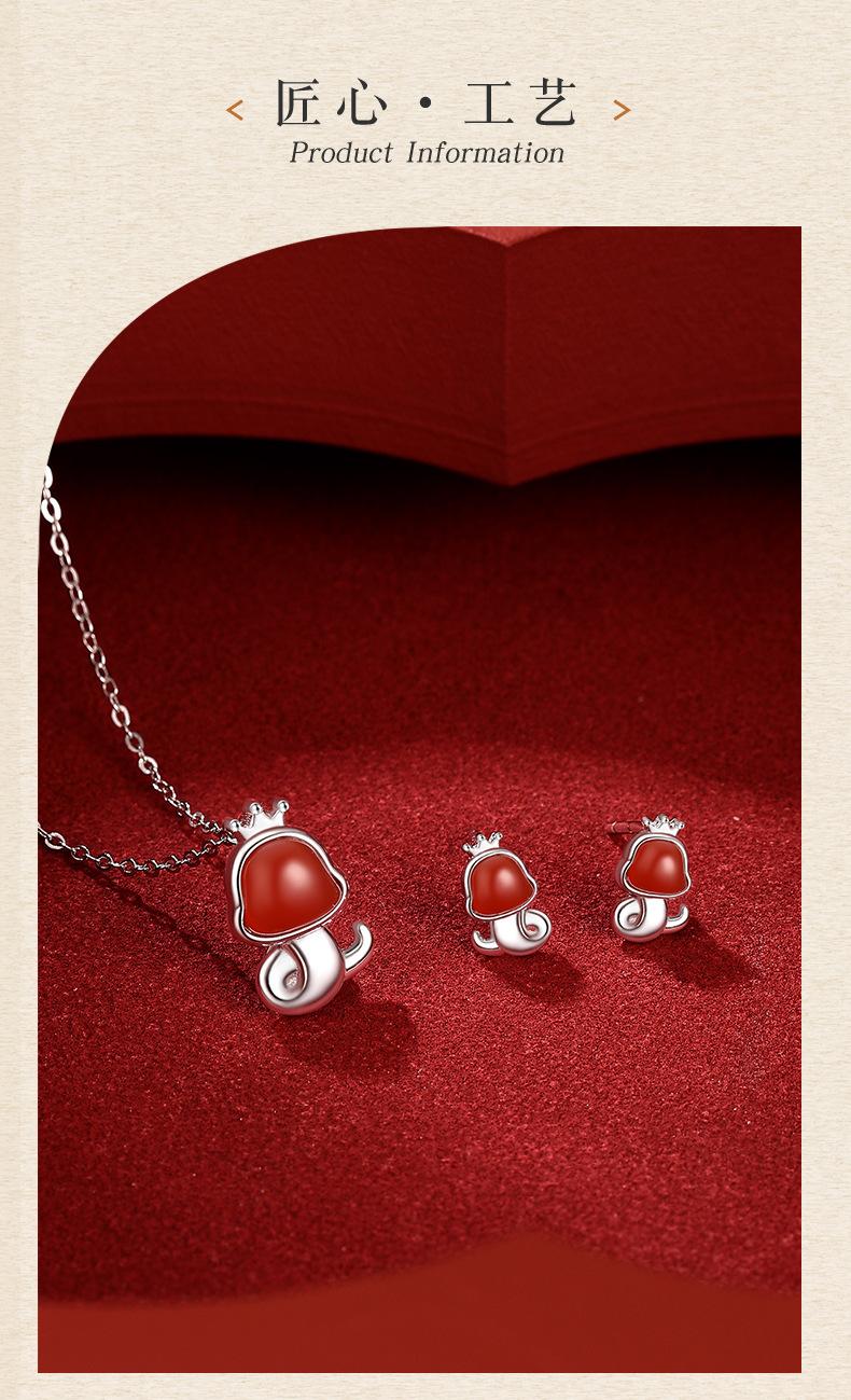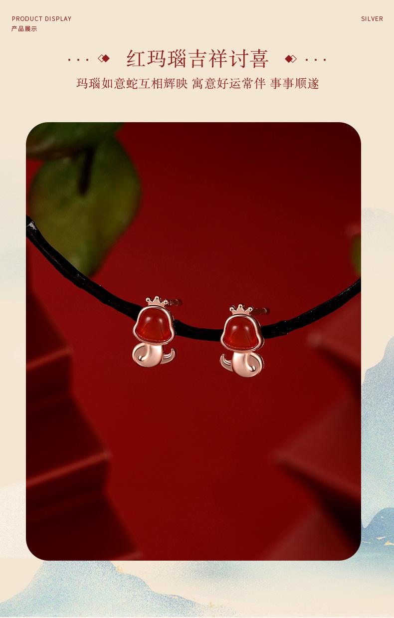 Collar y pendientes con diseño de serpiente del zodiaco Benmingnian, nuevo estilo 2025, ideal para mujer, moda nacional, colgante de ágata roja, cadena de clavícula, nicho.