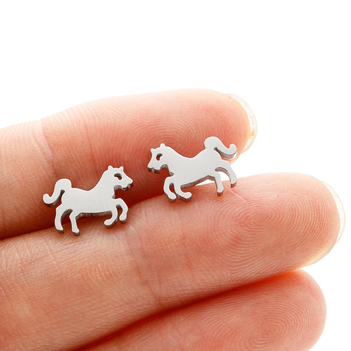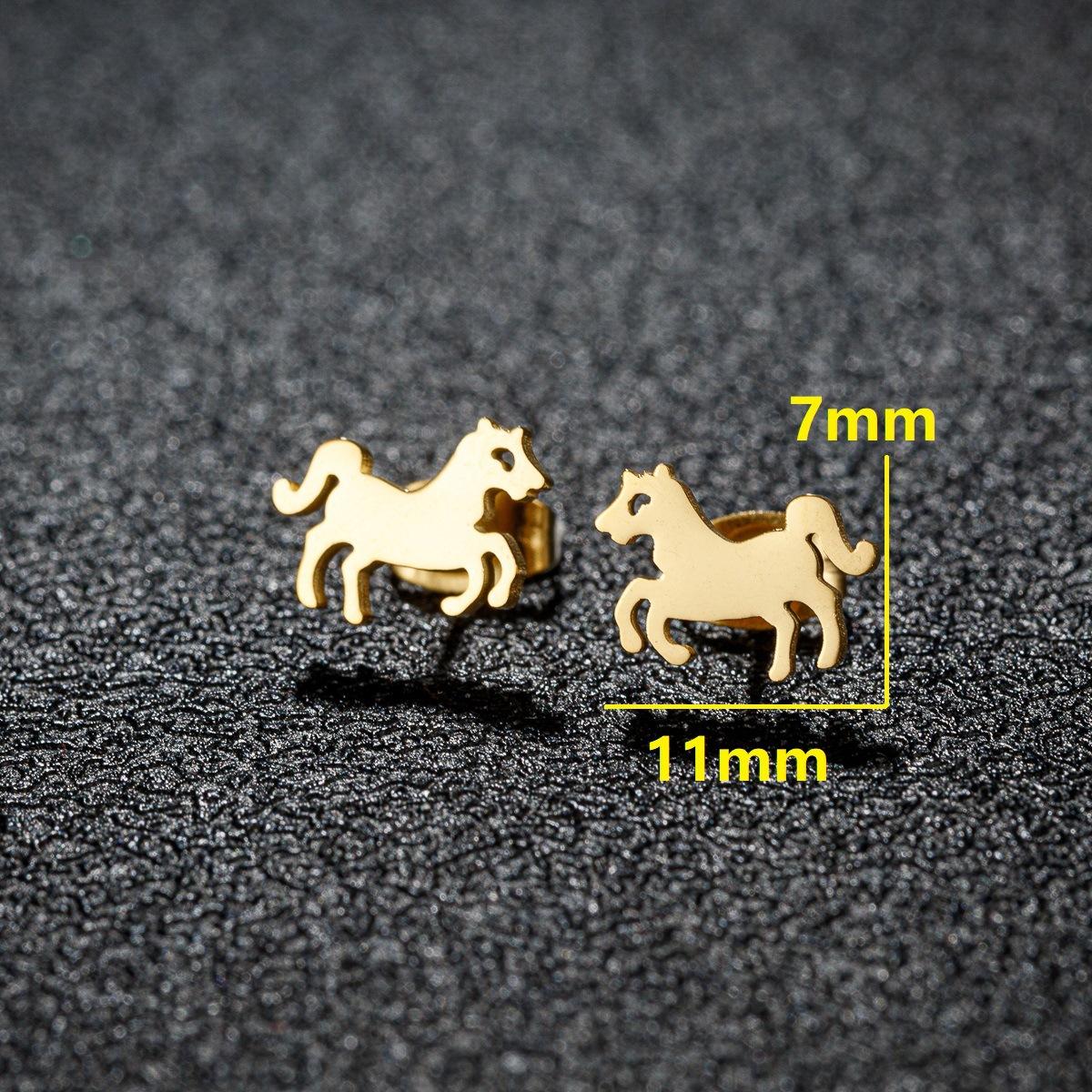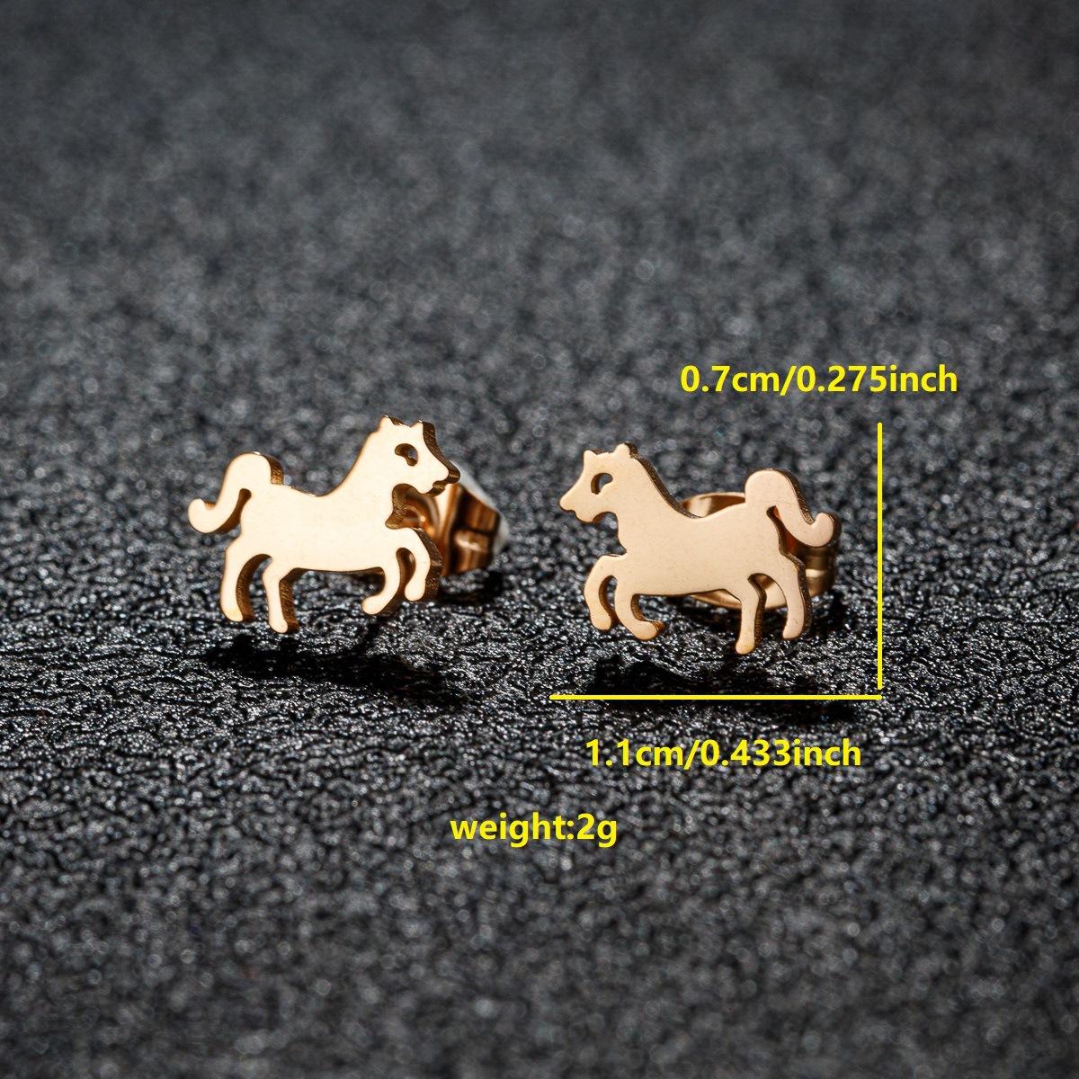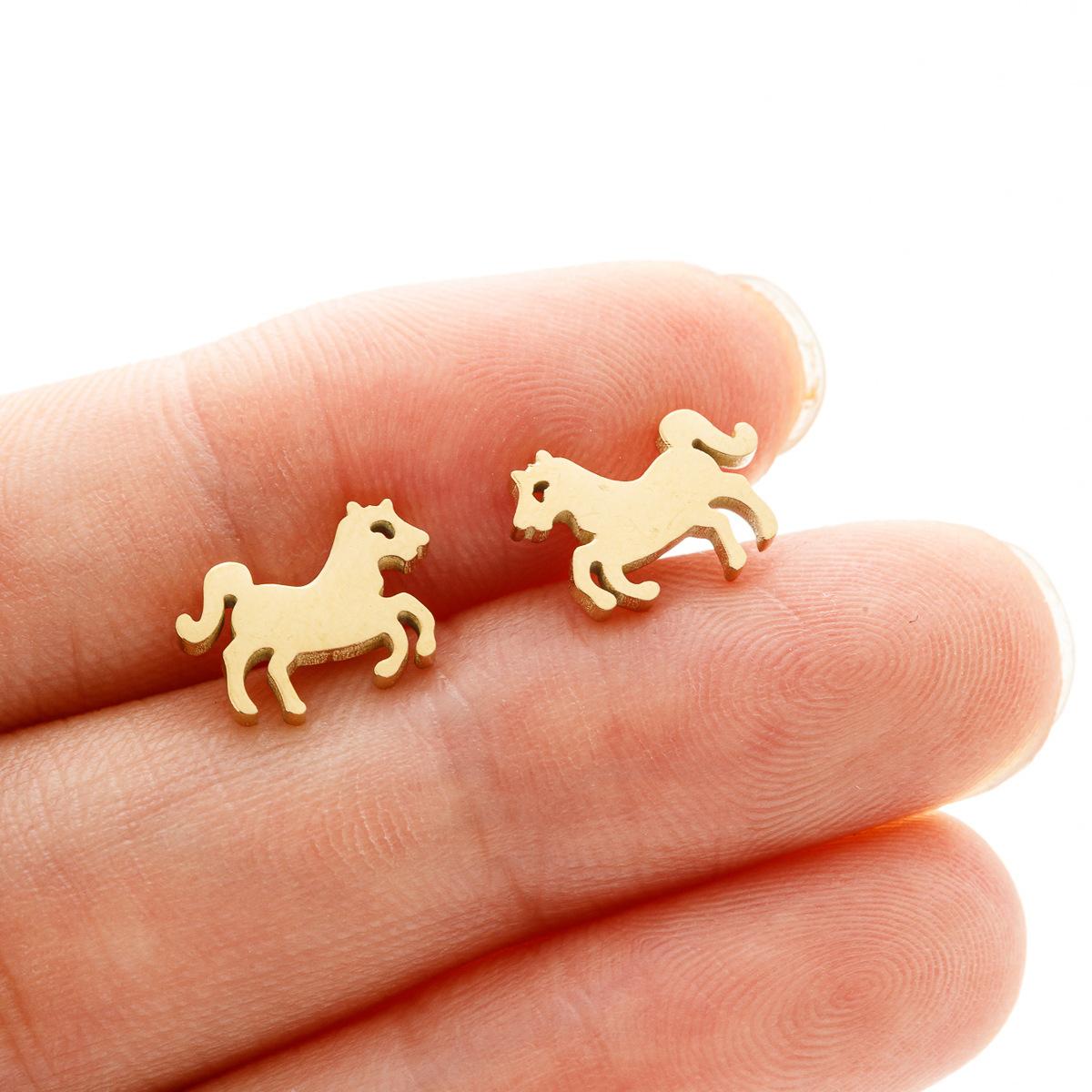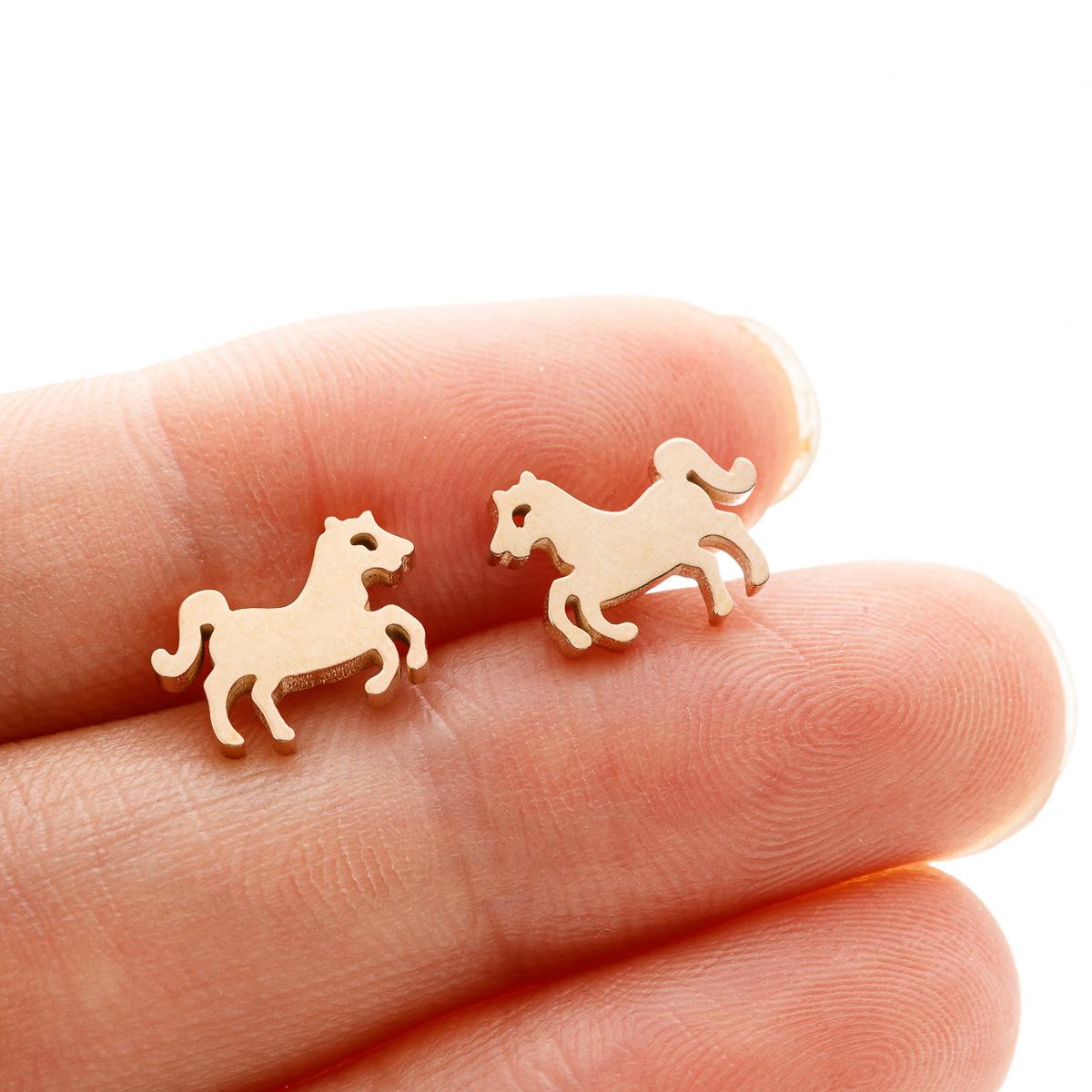 Pendientes de unicornio de acero inoxidable galvanizado en oro de 18 quilates personalizados con diseño transfronterizo, con diseño de animales de dibujos animados.