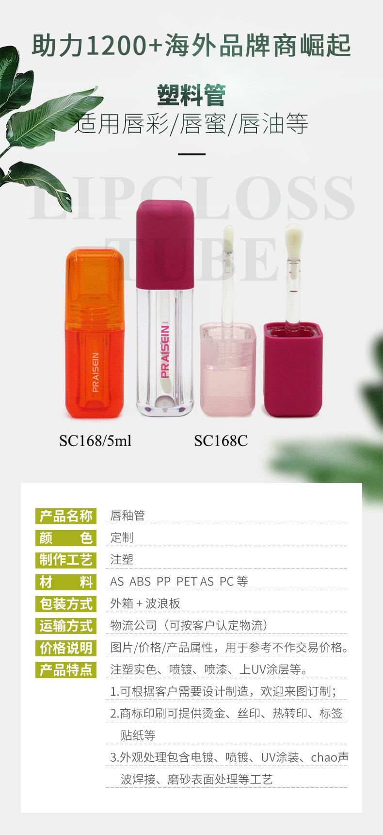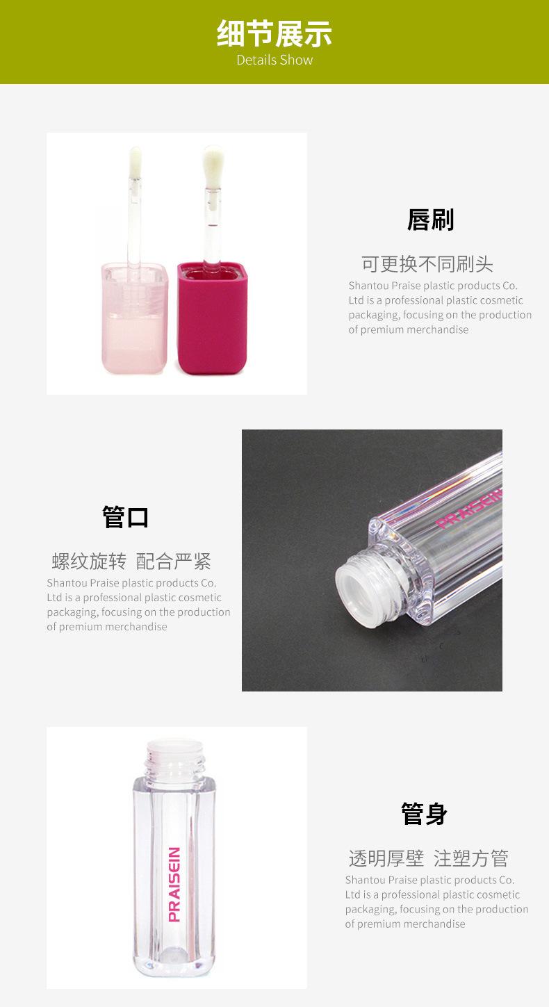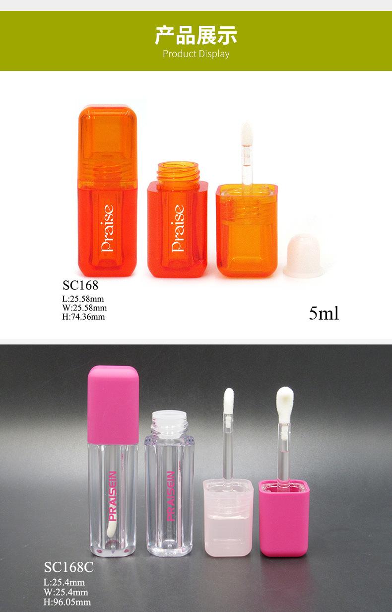 Tubo Cuadrado de Brillo Labial de Pared Gruesa Material de Embalaje 5ml Moldeado por Inyección Tubo Cosmético para Brillo Labial Tubo Vacío con Cabezal de Cepillo Reemplazable