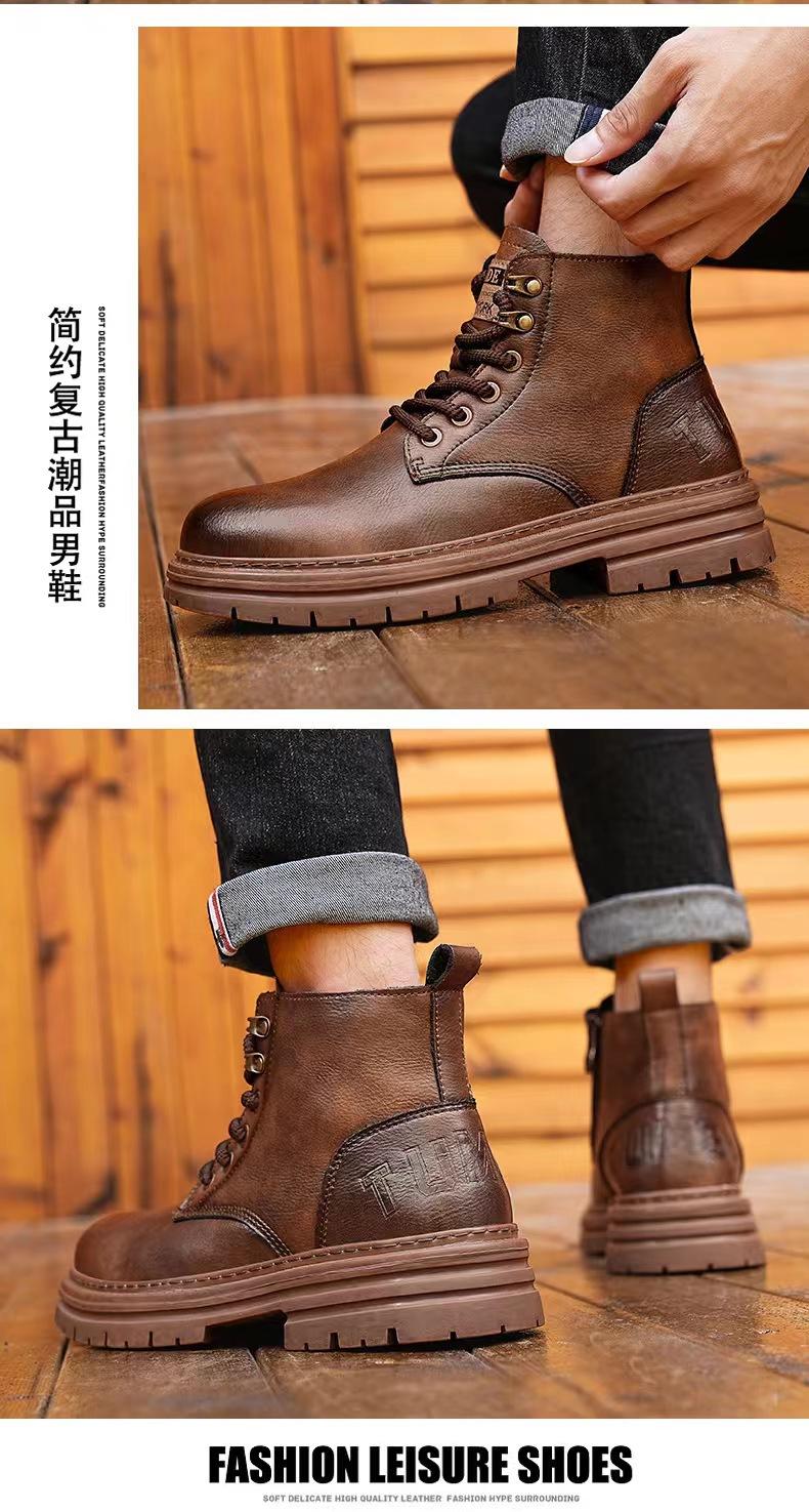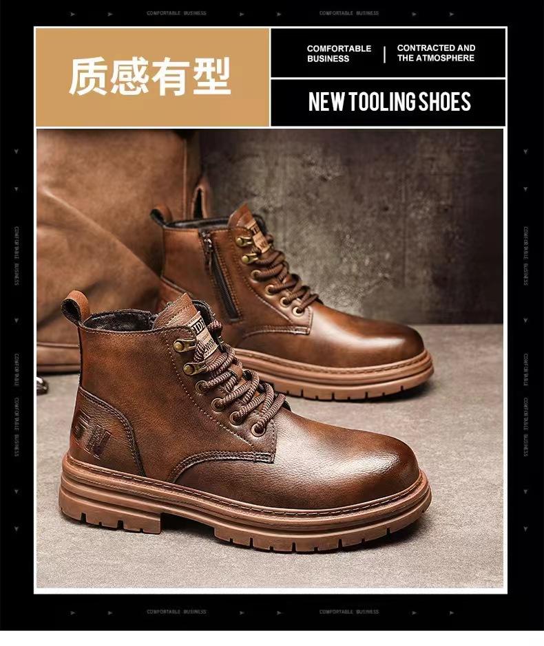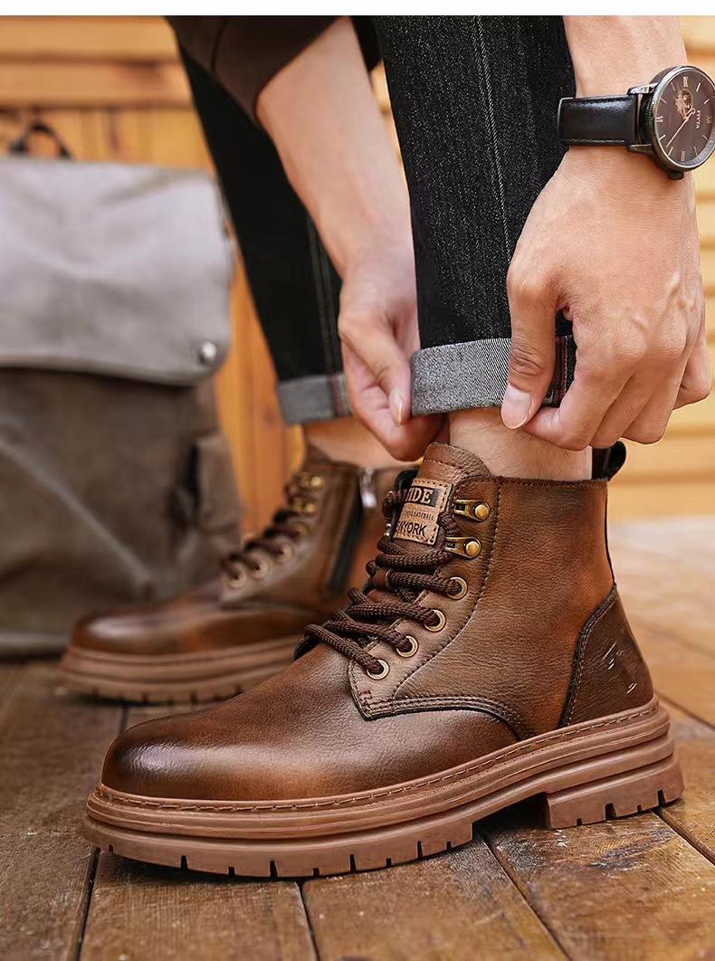 Botas Martin para hombre, zapatos de cuero de caña alta, nueva moda otoño-invierno 2024, botas de trabajo estilo americano retro, botines de motociclista de caballero.