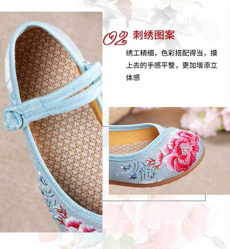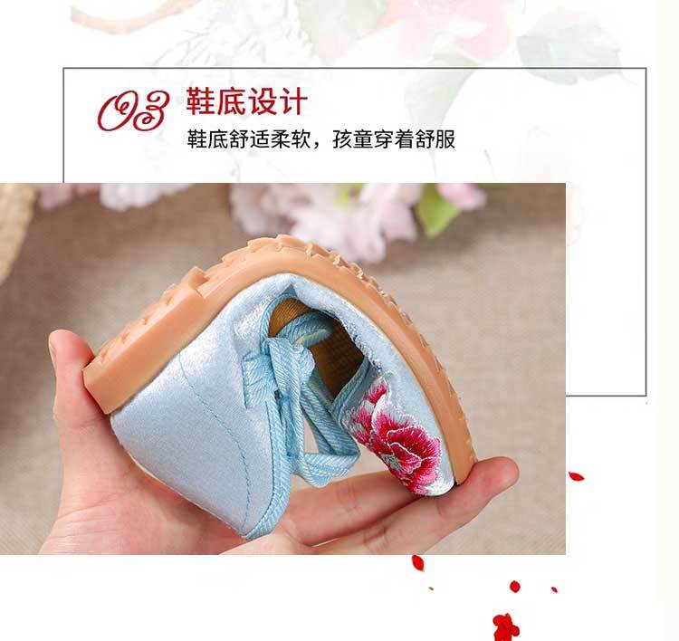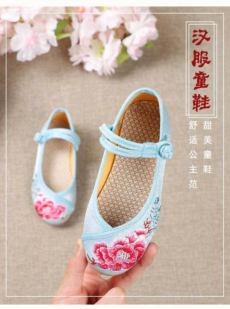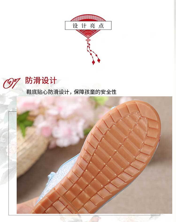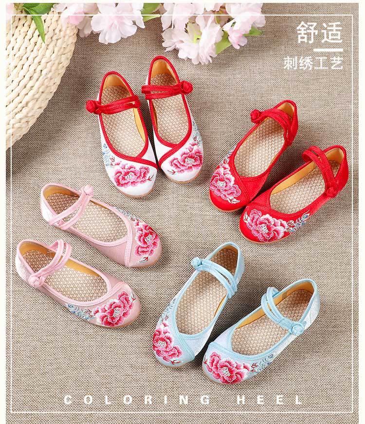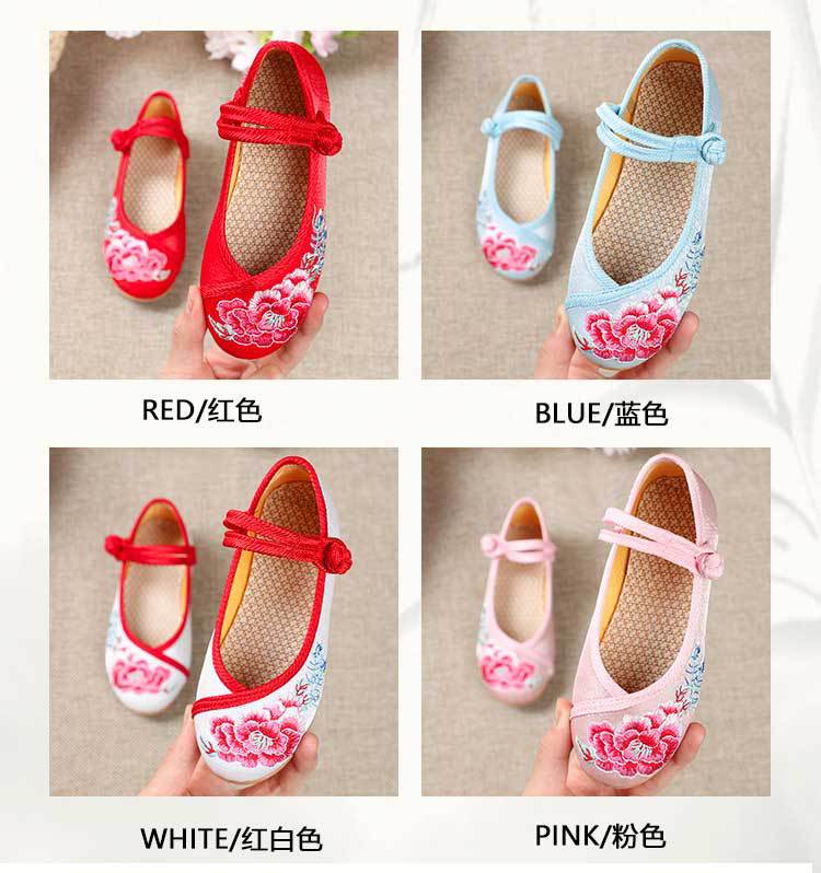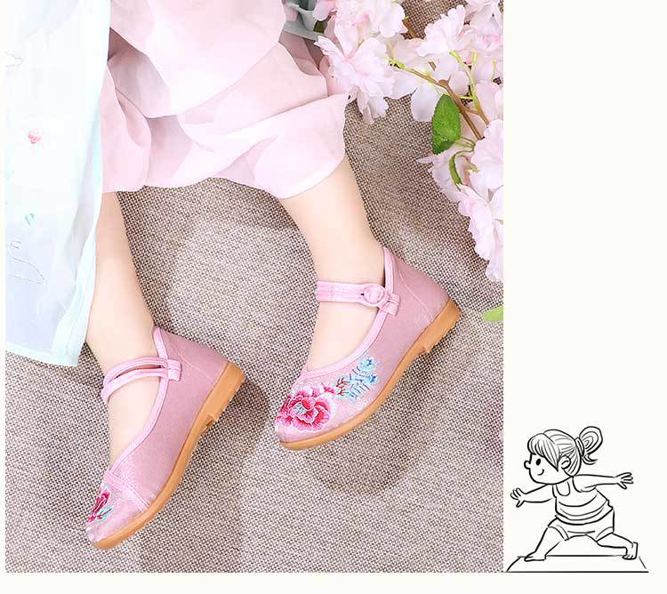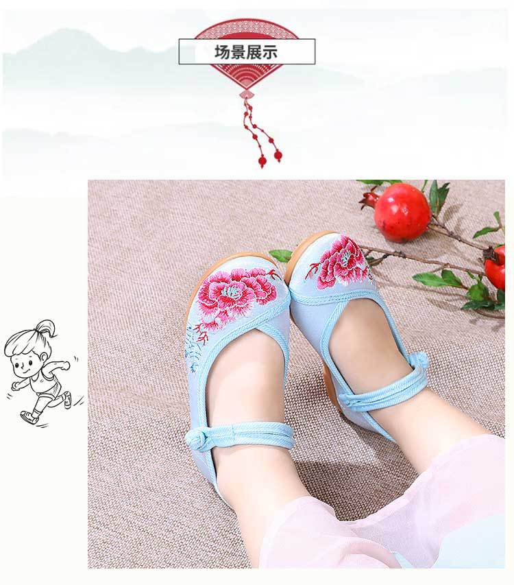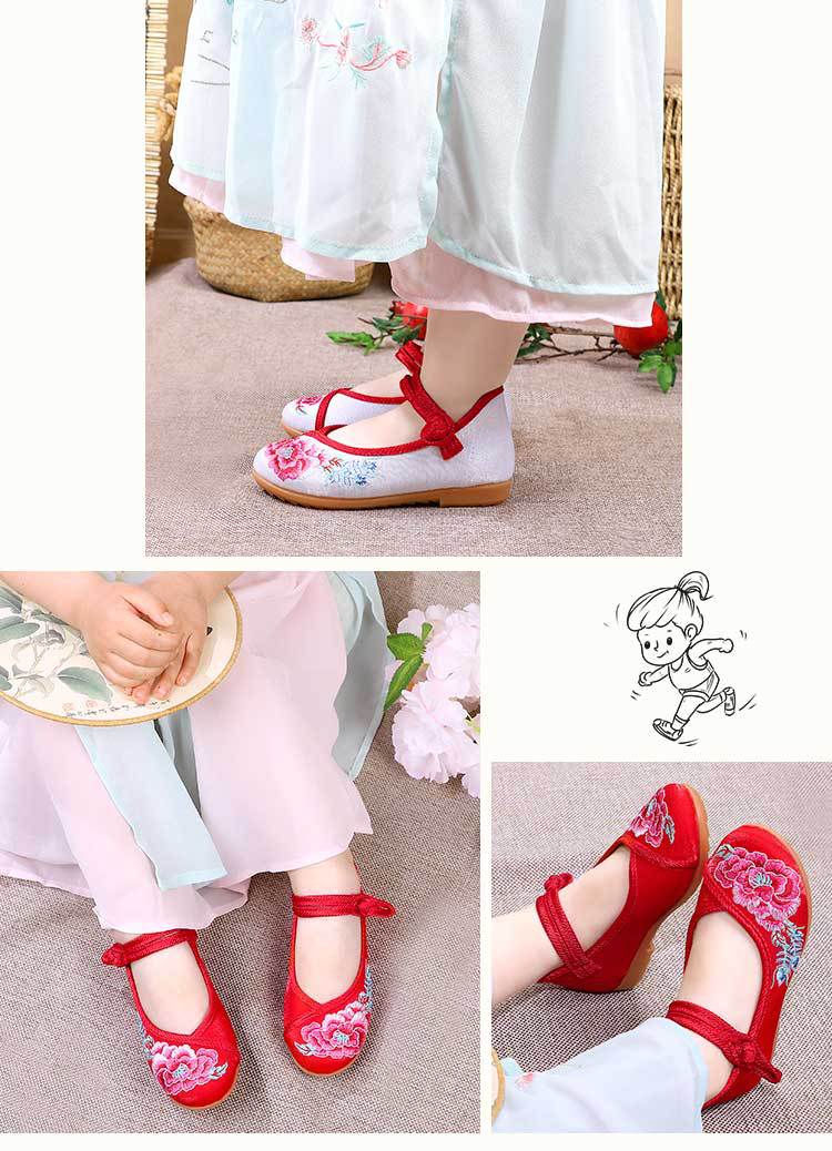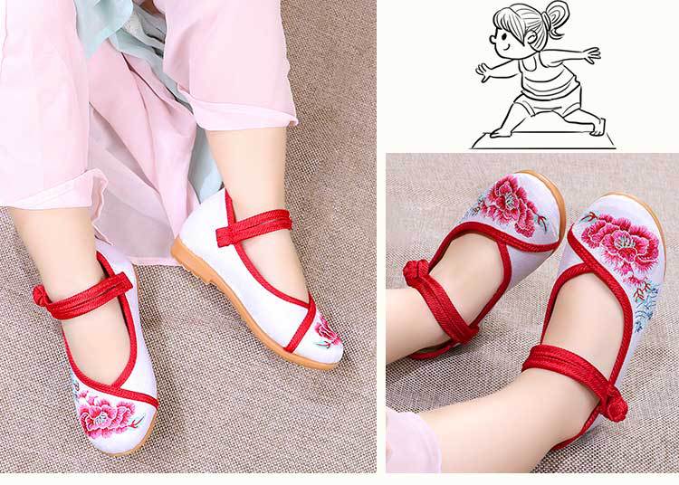 Zapatos Bordados para Niños con Suelas de Goma, Zapatos de Danza Tradicional China para Niñas, Zapatos Hanfu de Estilo Antiguo, Zapatos de Tela de Pekín Antiguo, Zapatos Bordados de Estilo Étnico