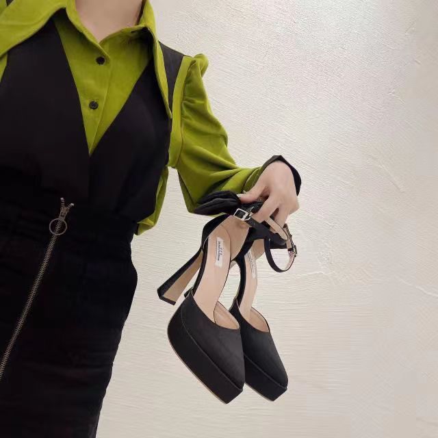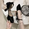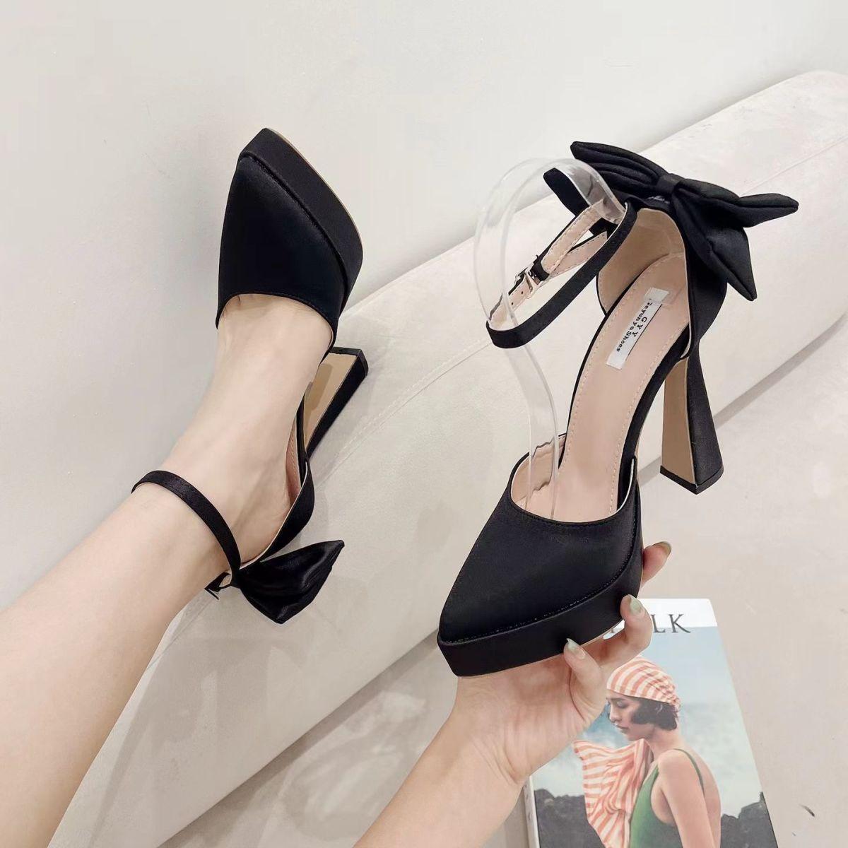 Sandalias de Tacón Largo con Pierna de Carácter Pequeño 2024 Verano Dulce Vestido Combinable Lazo Antideslizante Sandalias para Aumentar la Altura