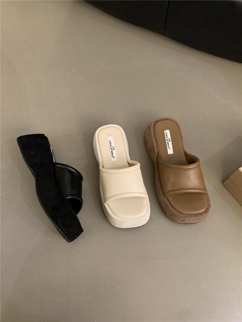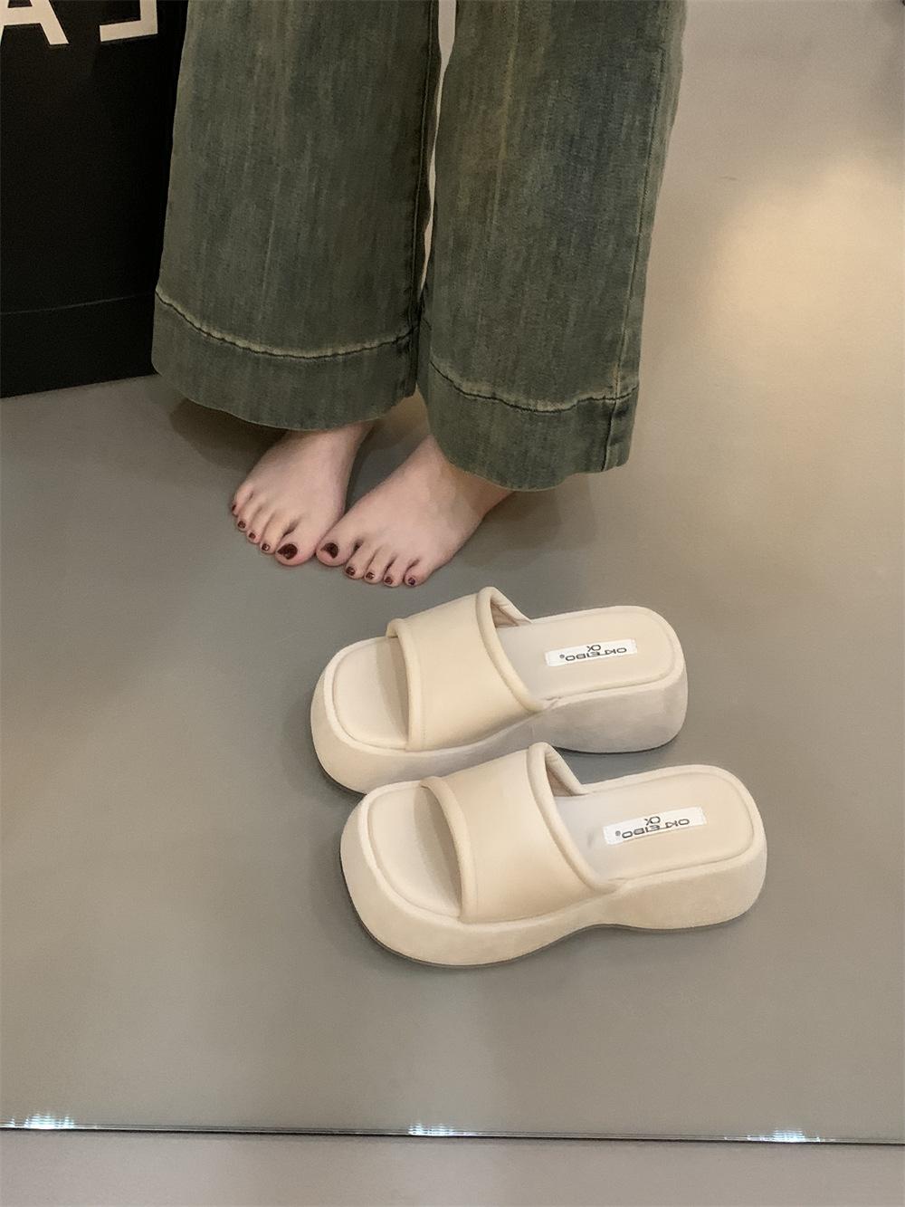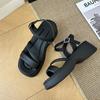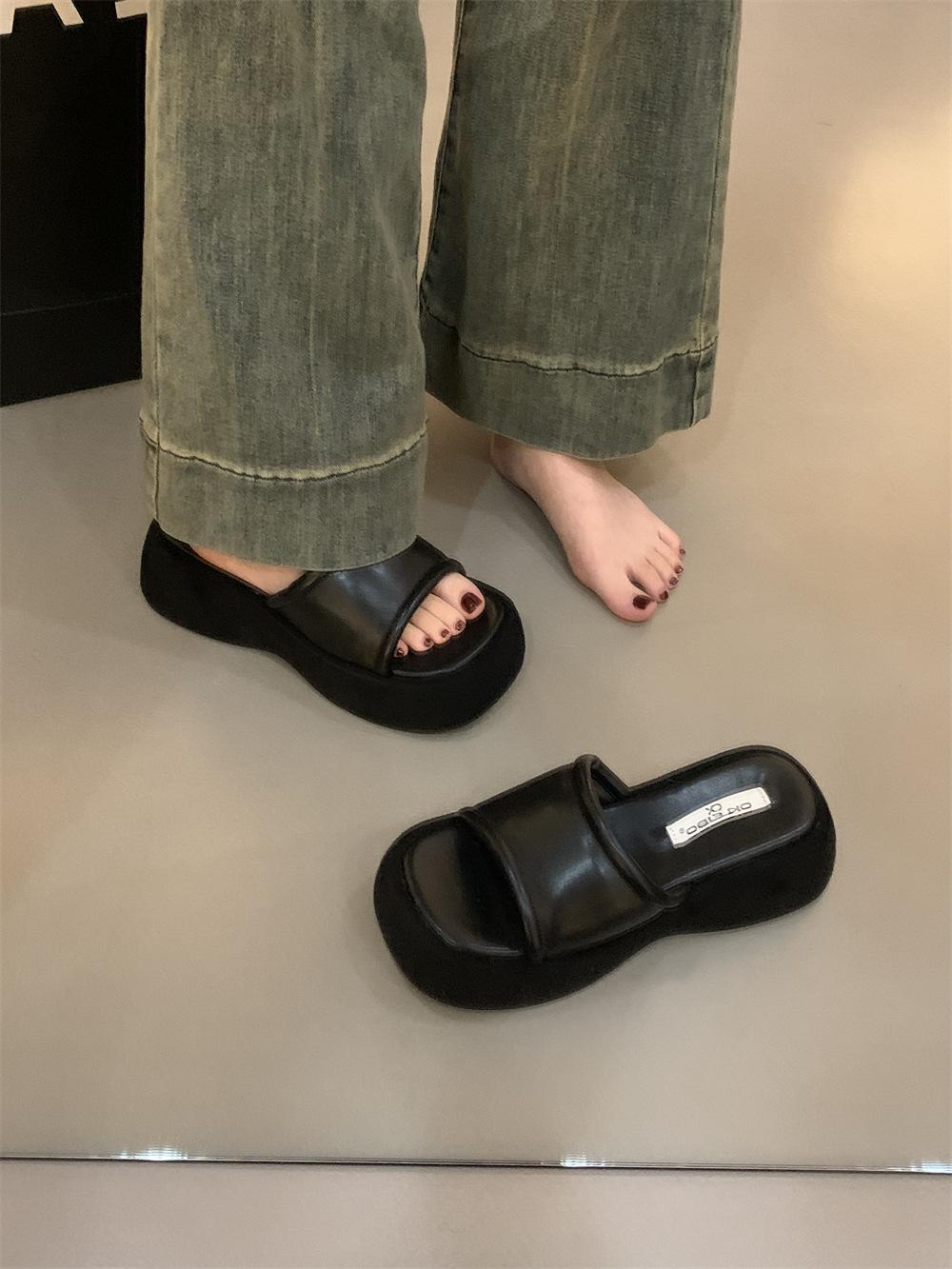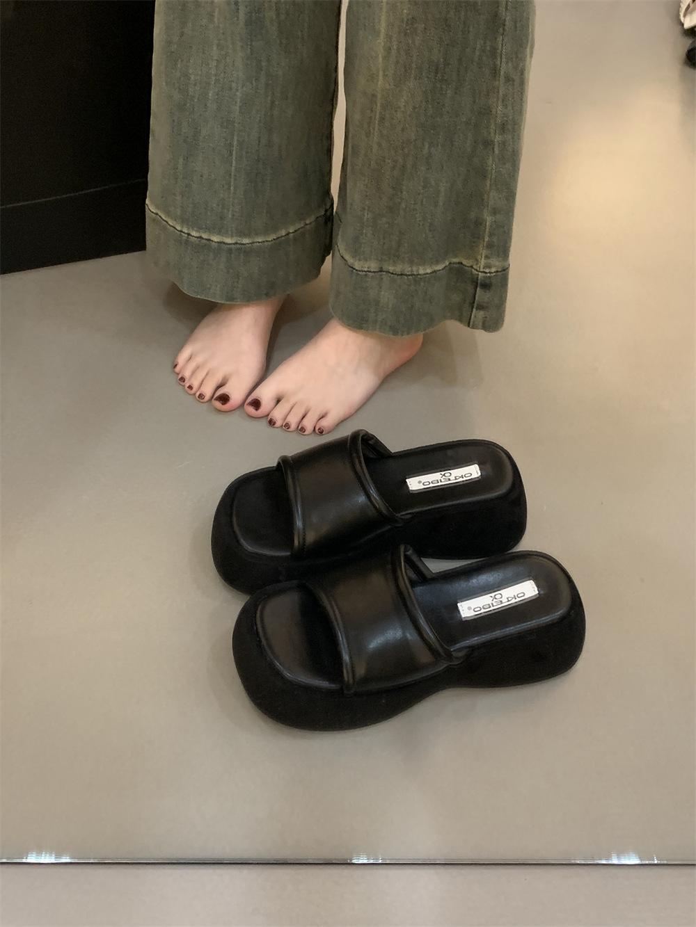 Sandalias Pequeñas de Plataforma con Suela Gruesa para Aumentar la Altura para Mujer para Usar en el Exterior Verano Sandalias de Plataforma Versátiles Chanclas Negras