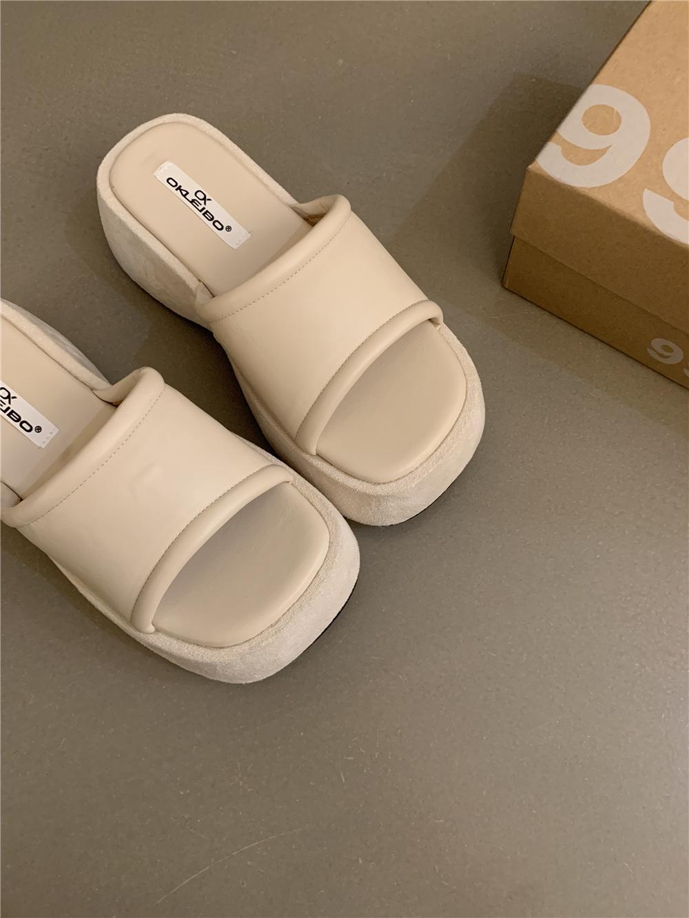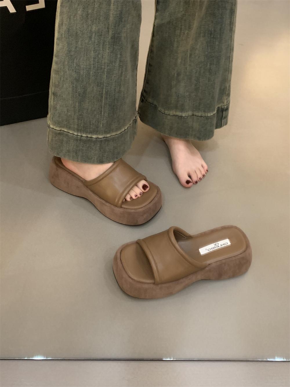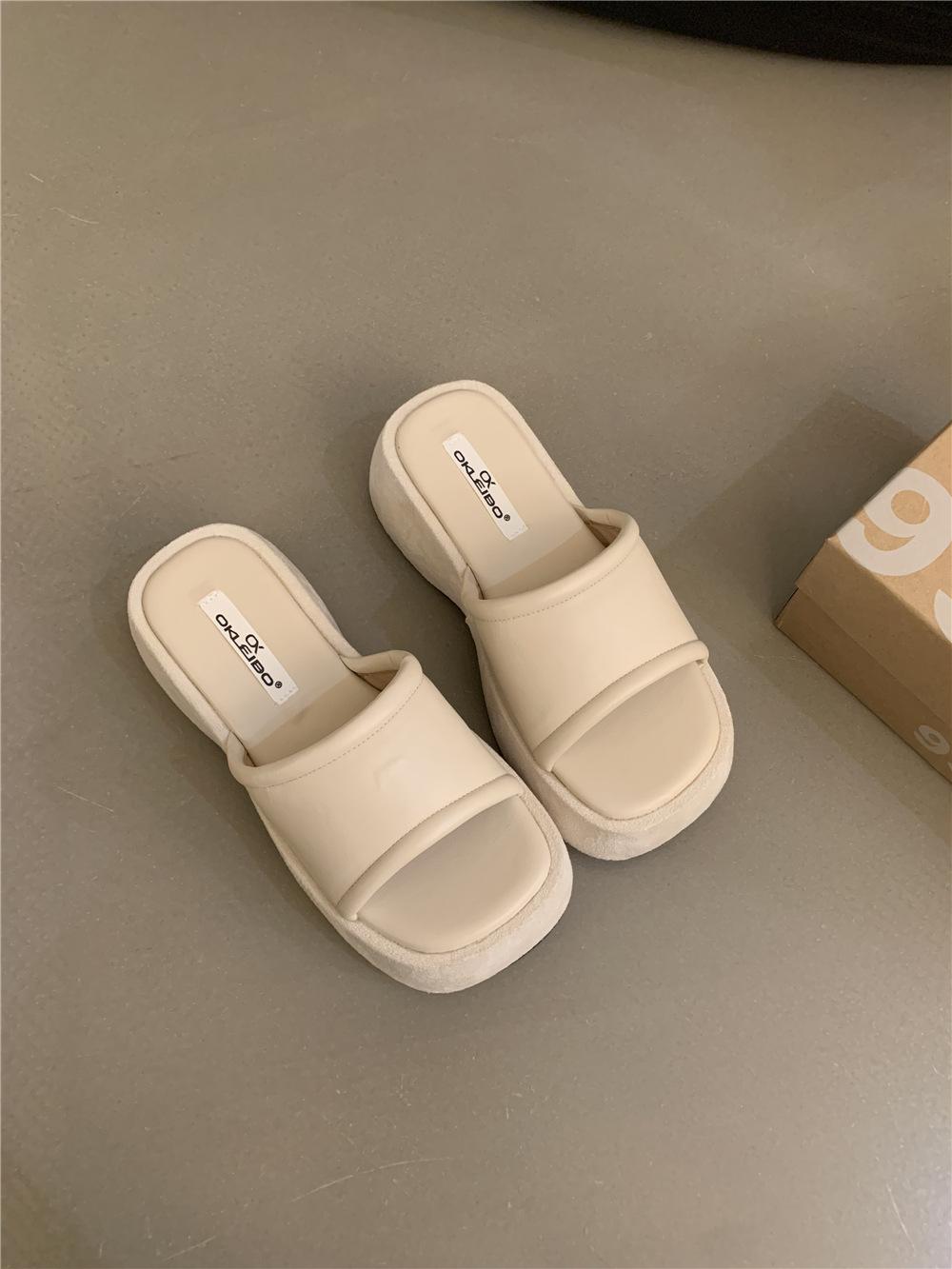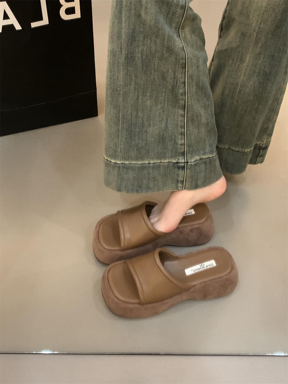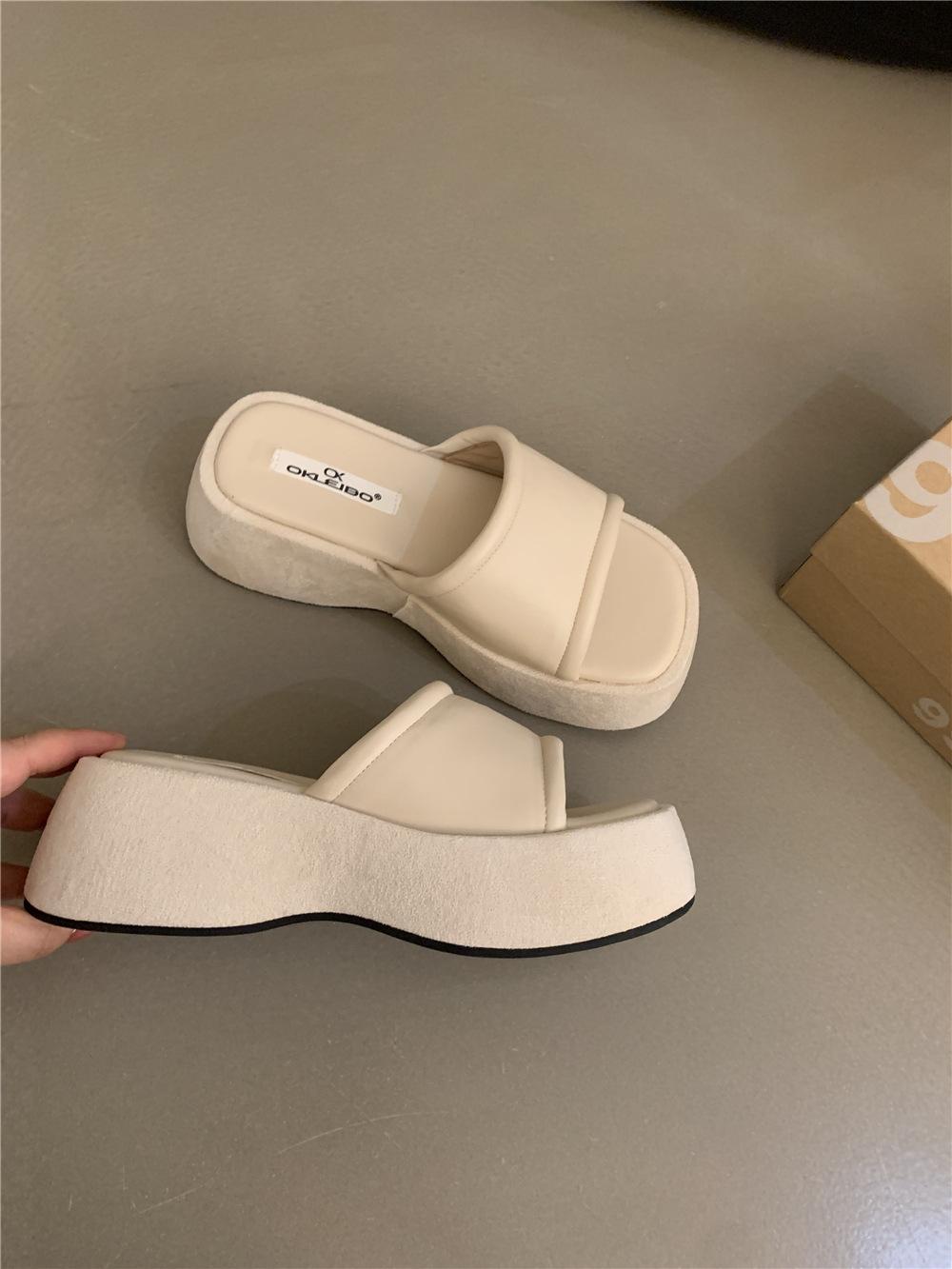 Sandalias Pequeñas de Plataforma con Suela Gruesa para Aumentar la Altura para Mujer para Usar en el Exterior Verano Sandalias de Plataforma Versátiles Chanclas Negras