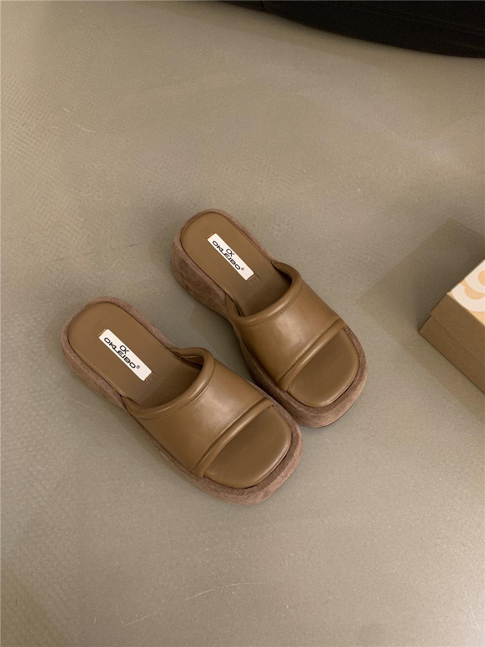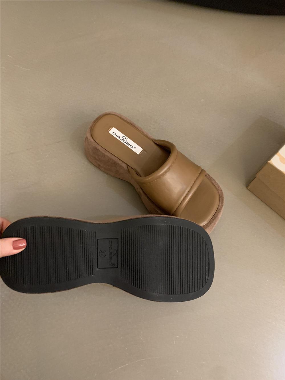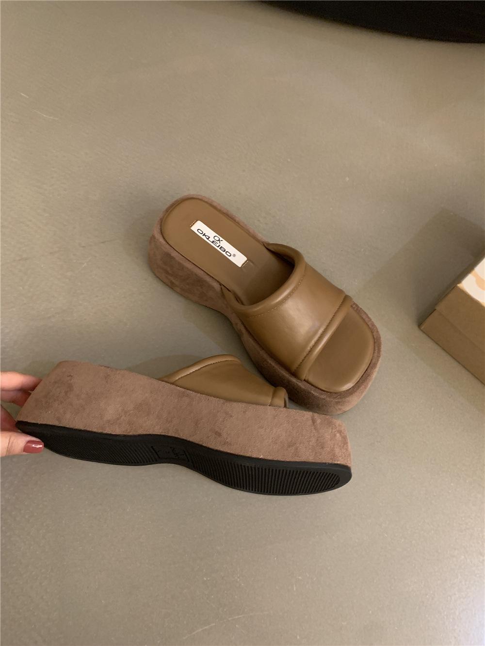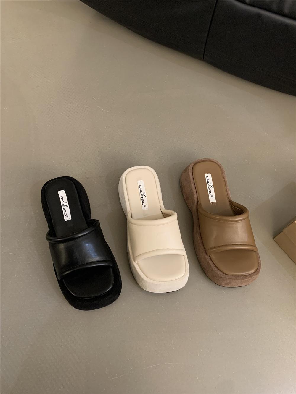 Sandalias Pequeñas de Plataforma con Suela Gruesa para Aumentar la Altura para Mujer para Usar en el Exterior Verano Sandalias de Plataforma Versátiles Chanclas Negras