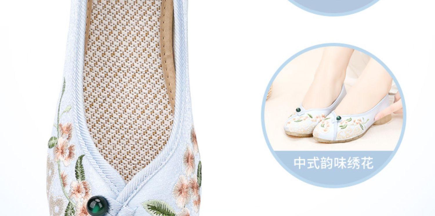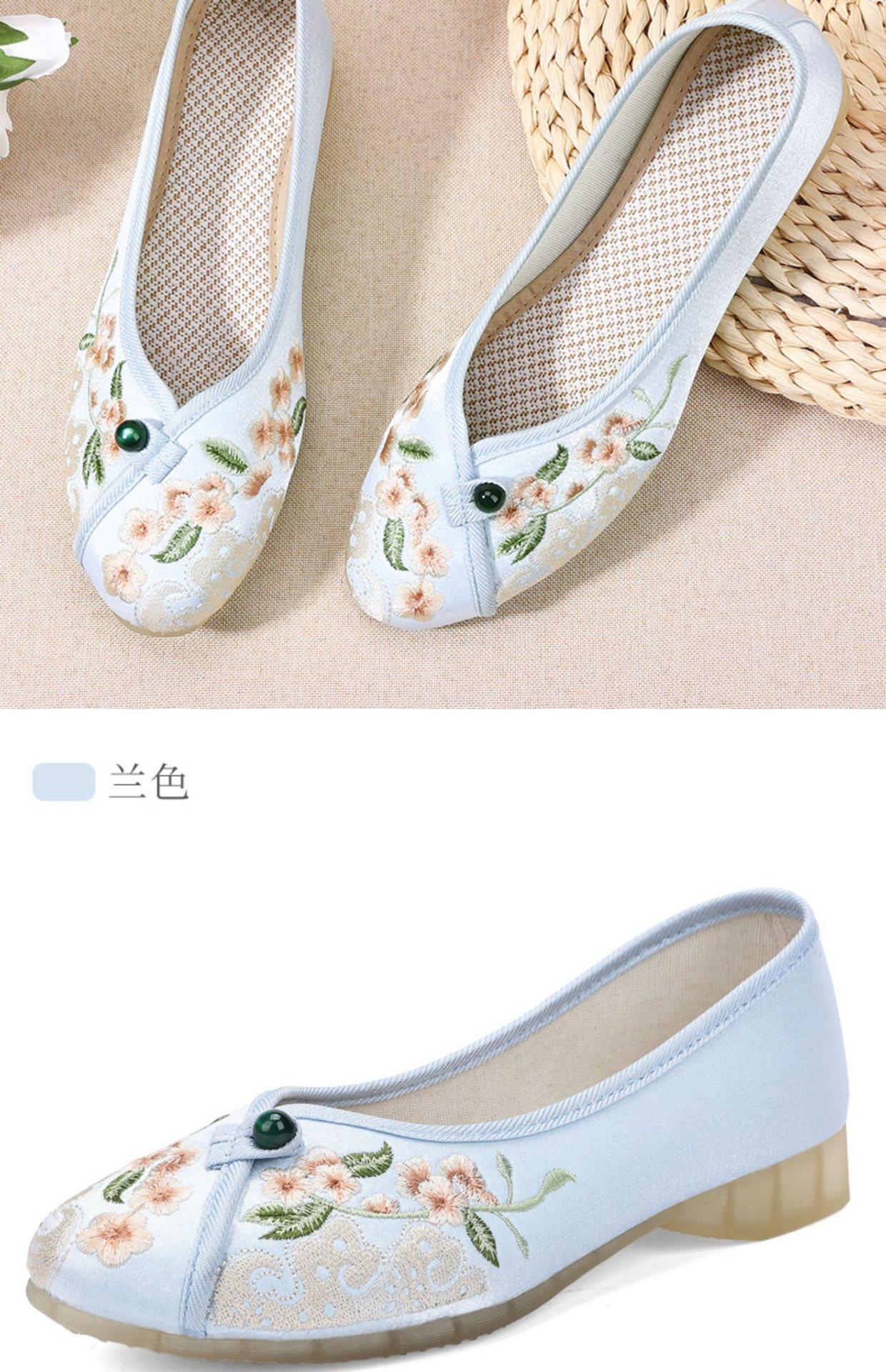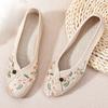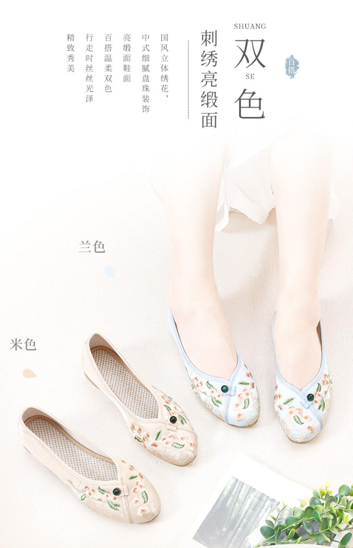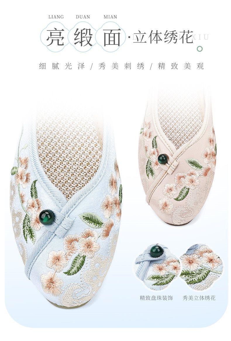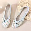 Primavera Nuevo Viejo Pekín Zapatos de Tela para Mujer Bordado Satén Chino Elegante Plano Suela Blanda Un Pedal Punta Redonda Poco Profunda