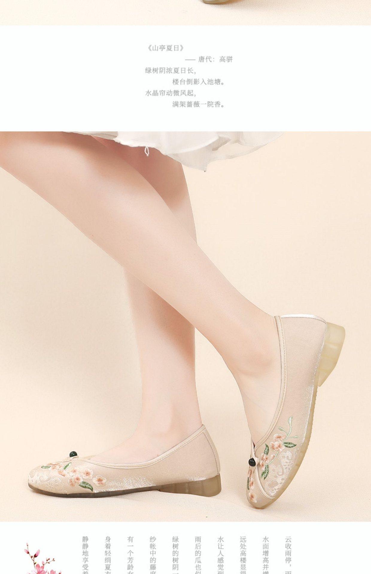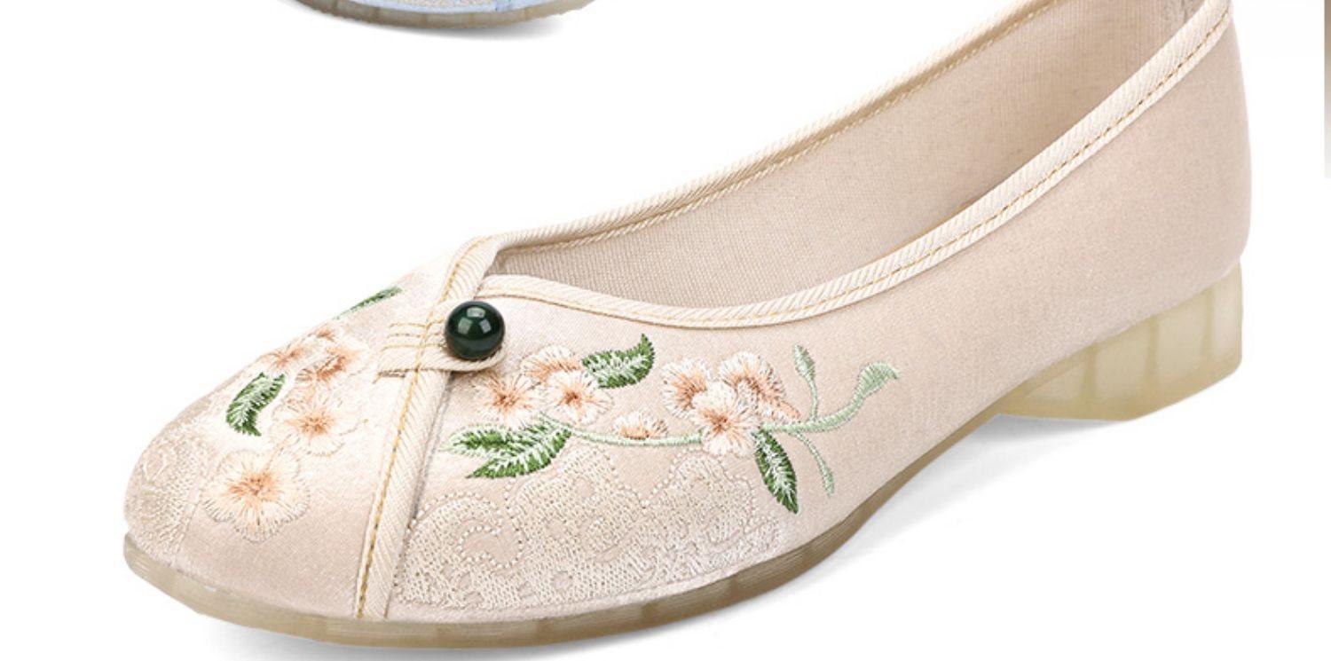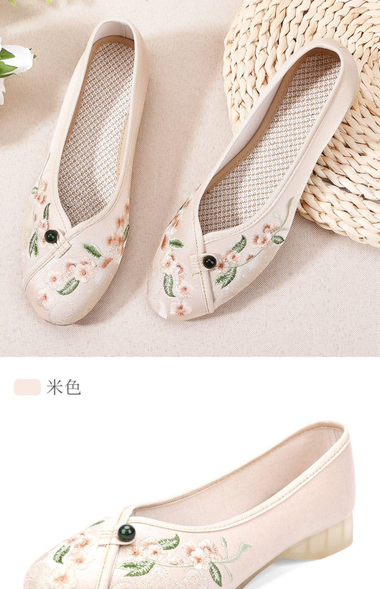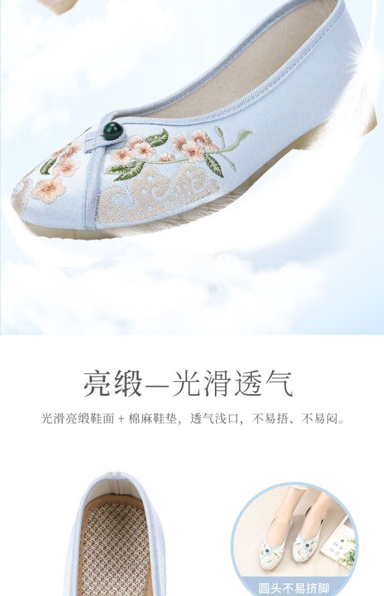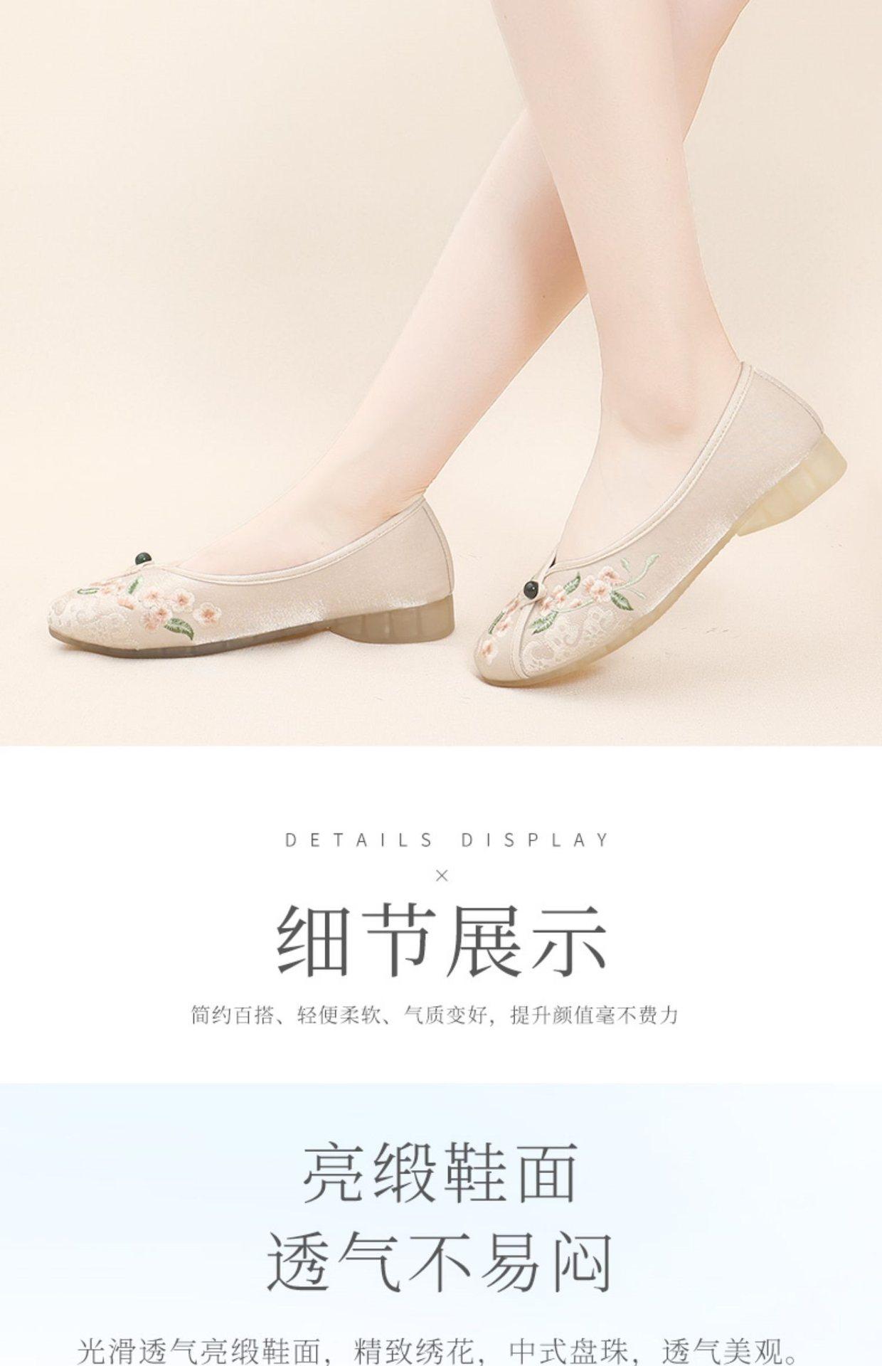 Primavera Nuevo Viejo Pekín Zapatos de Tela para Mujer Bordado Satén Chino Elegante Plano Suela Blanda Un Pedal Punta Redonda Poco Profunda