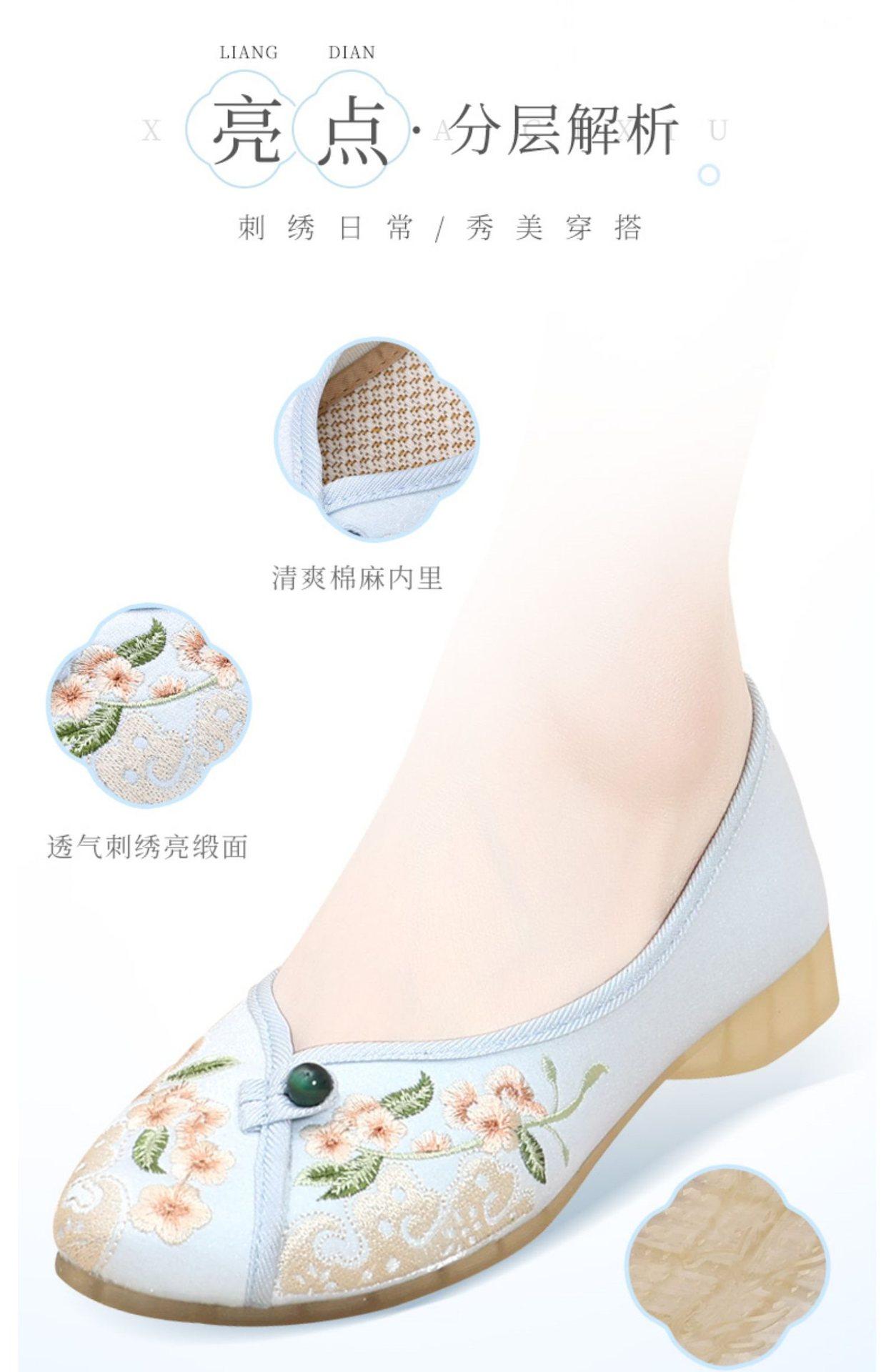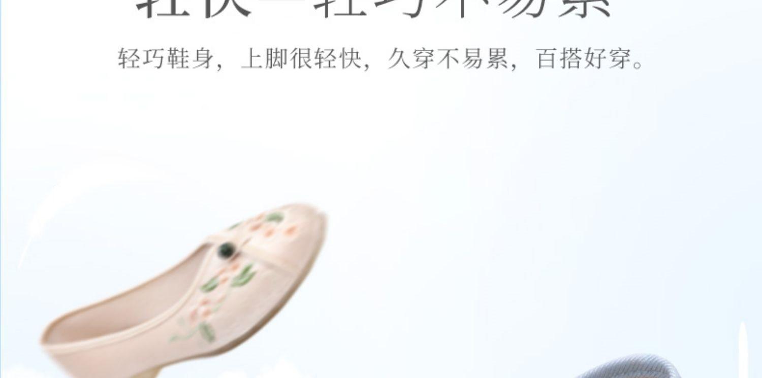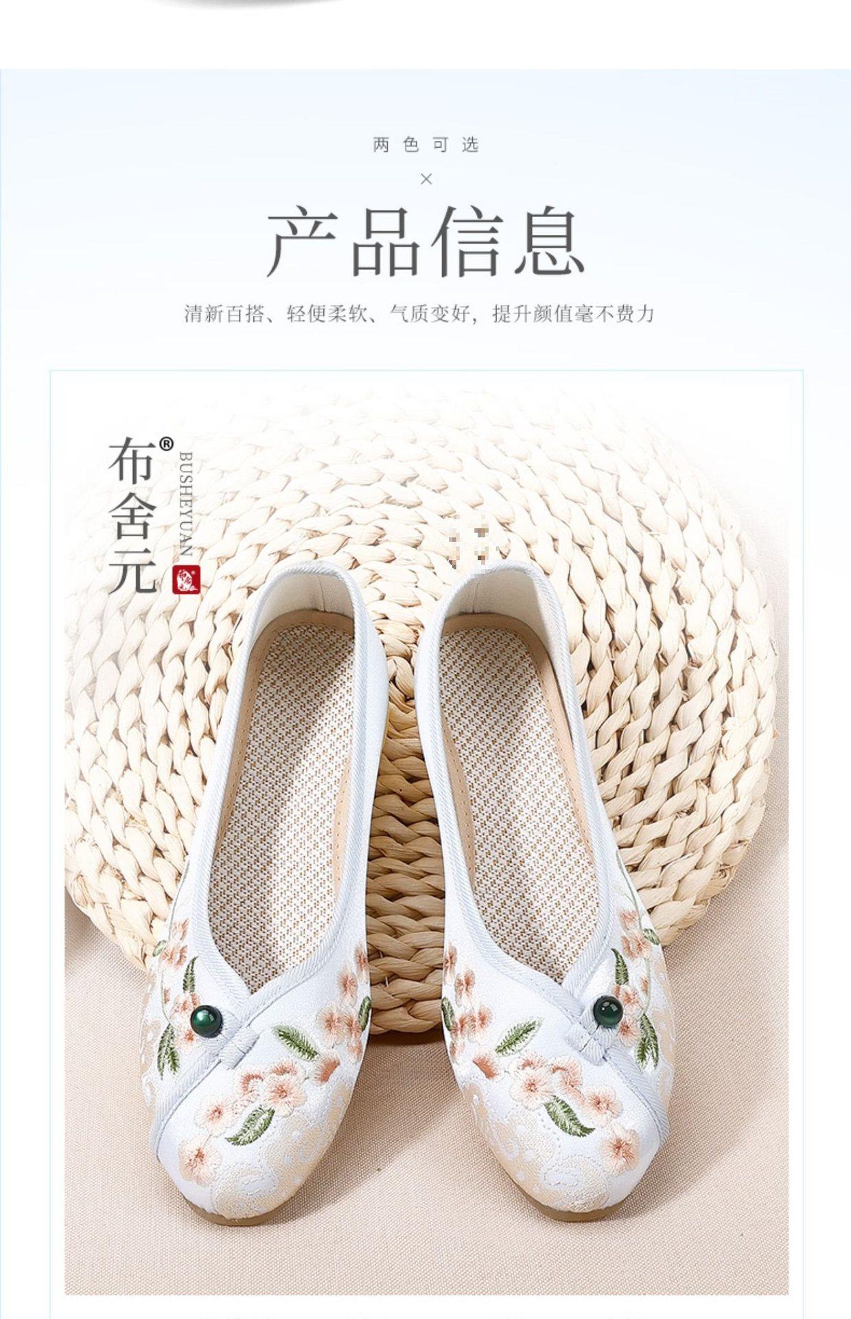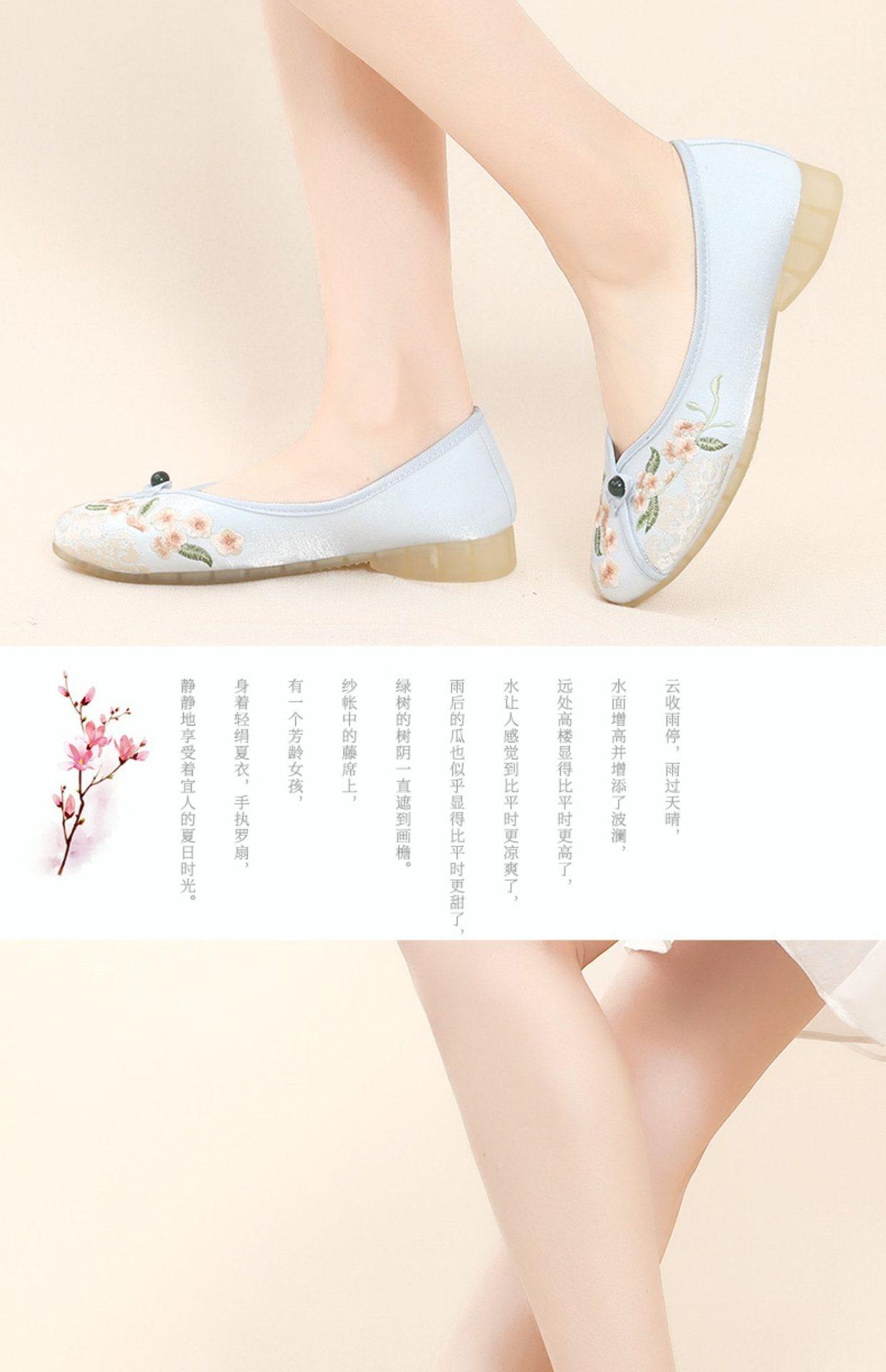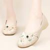 Primavera Nuevo Viejo Pekín Zapatos de Tela para Mujer Bordado Satén Chino Elegante Plano Suela Blanda Un Pedal Punta Redonda Poco Profunda