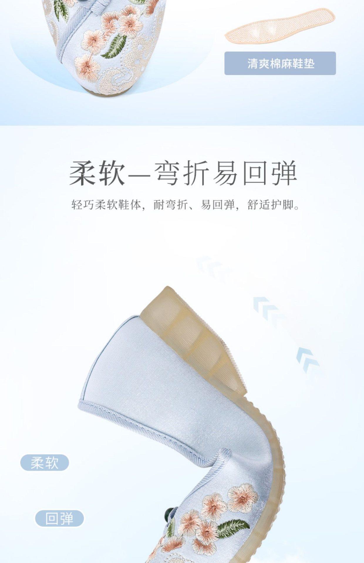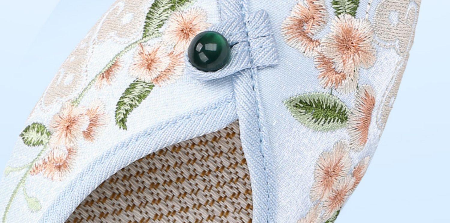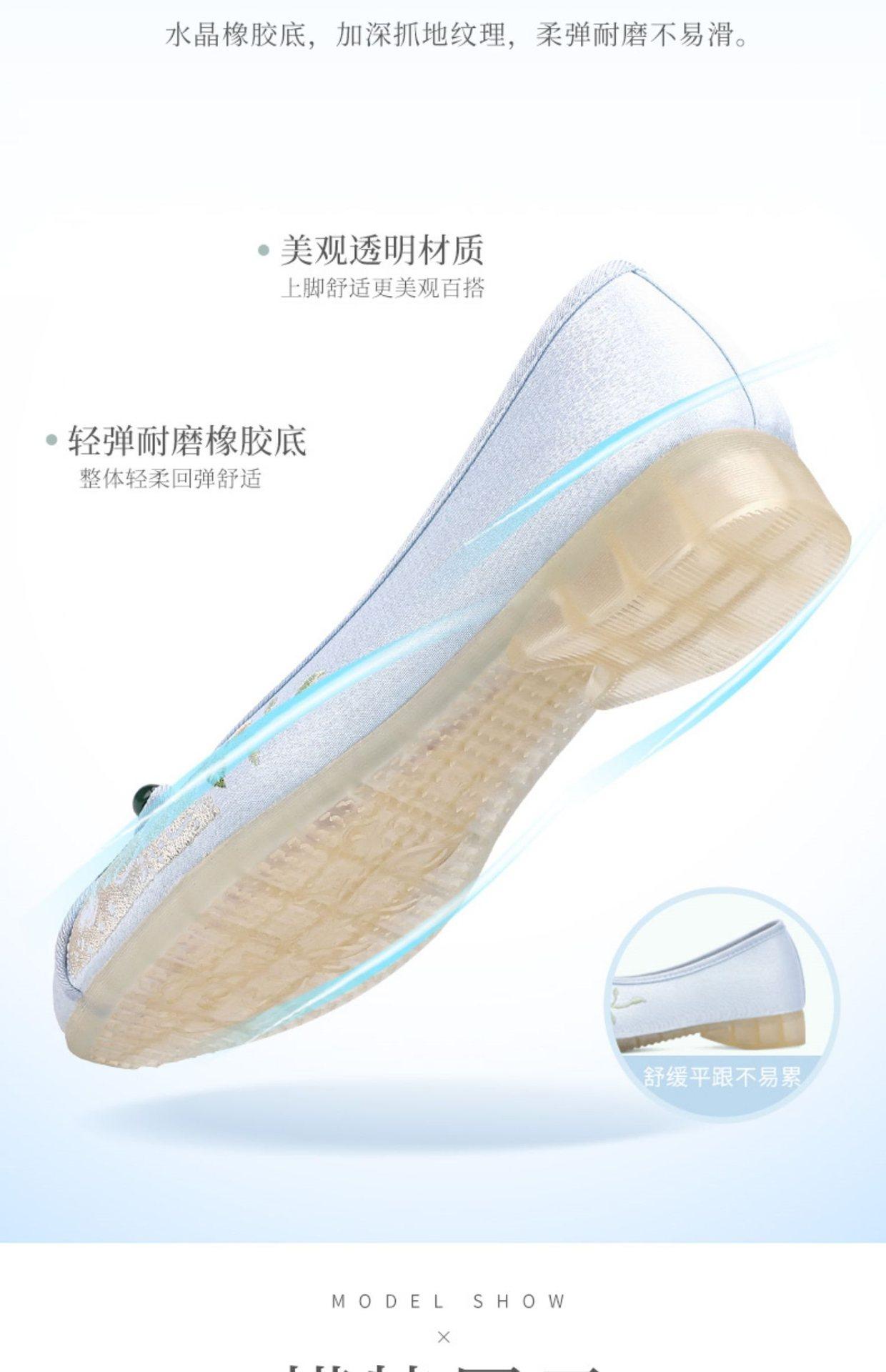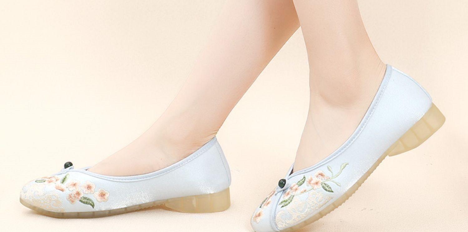 Primavera Nuevo Viejo Pekín Zapatos de Tela para Mujer Bordado Satén Chino Elegante Plano Suela Blanda Un Pedal Punta Redonda Poco Profunda