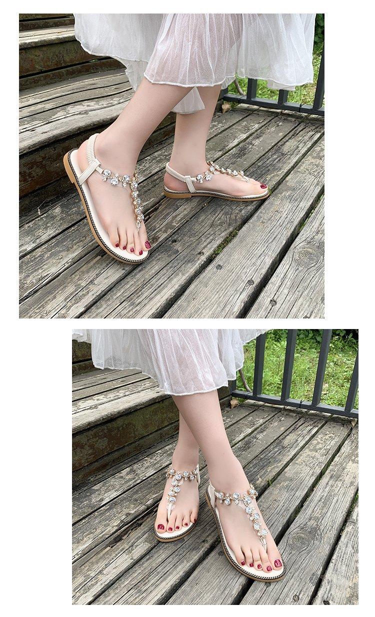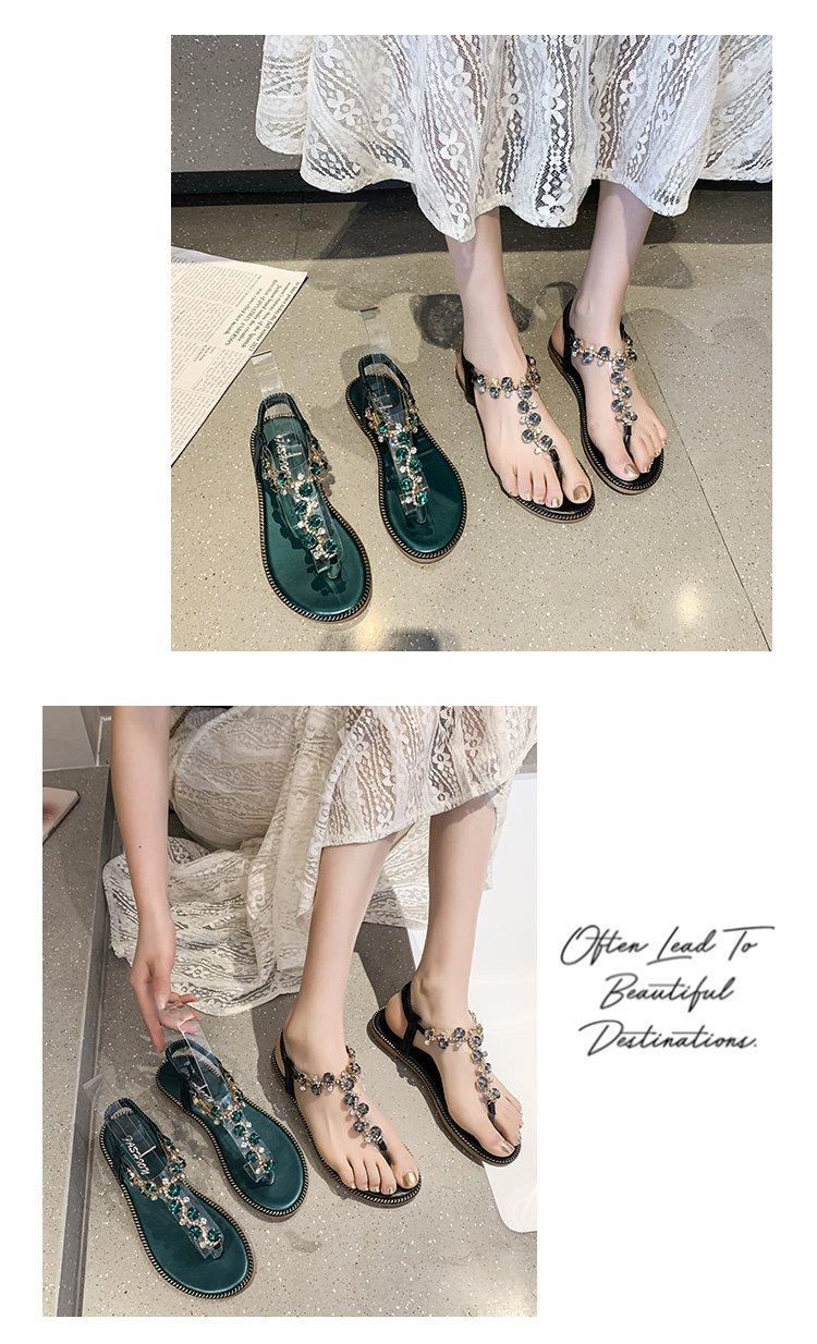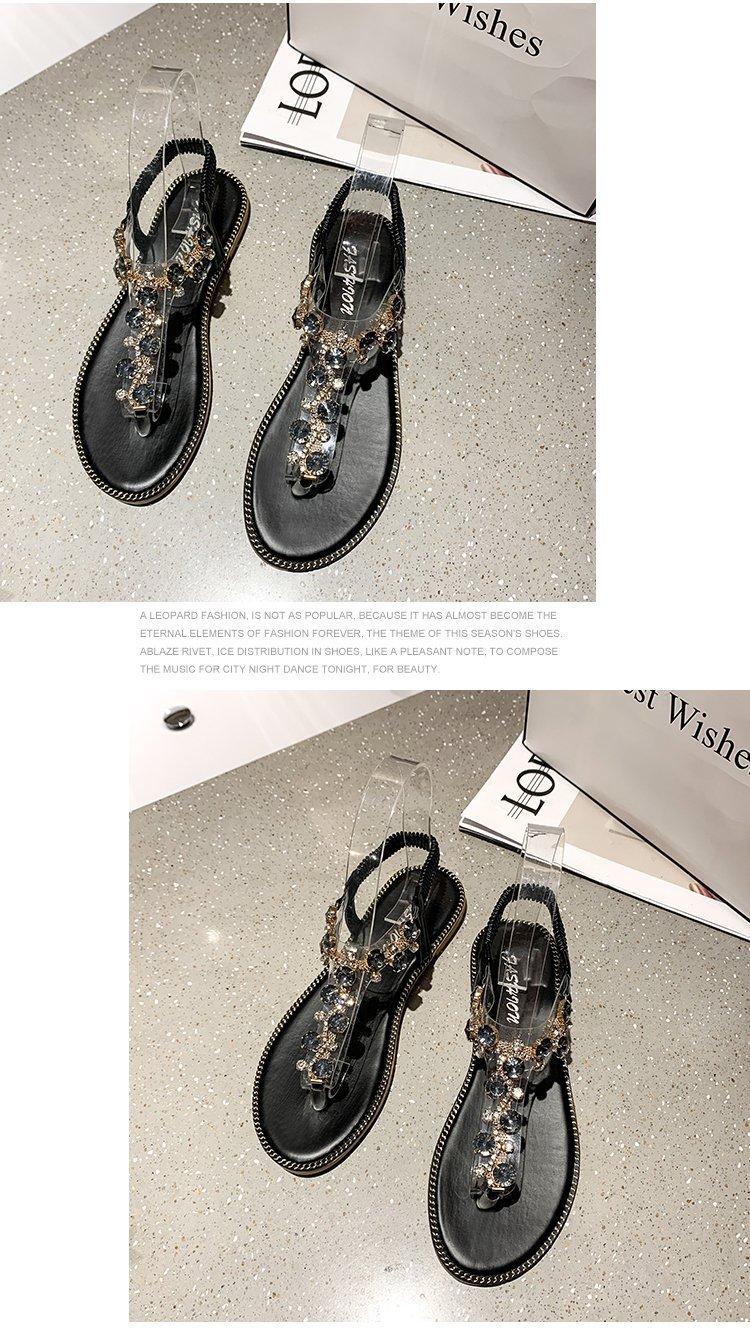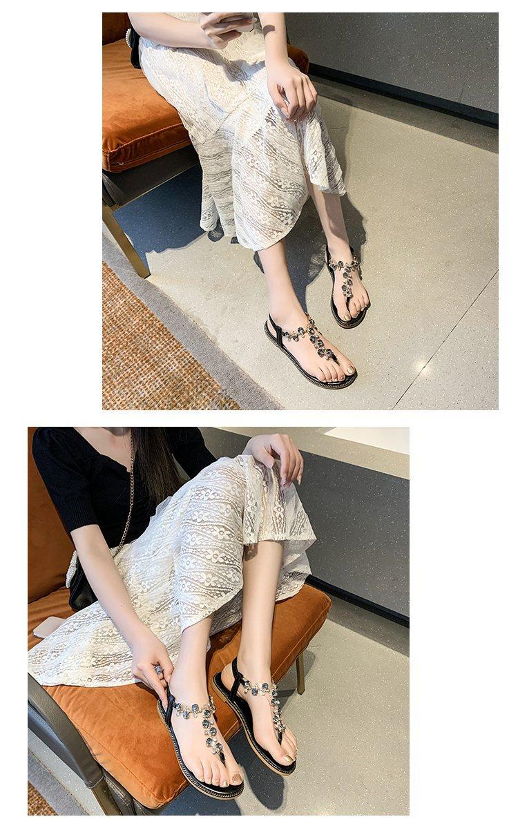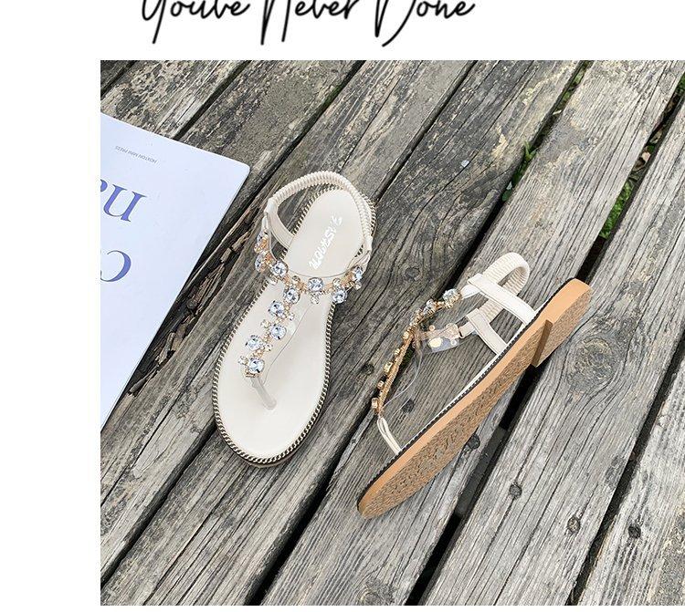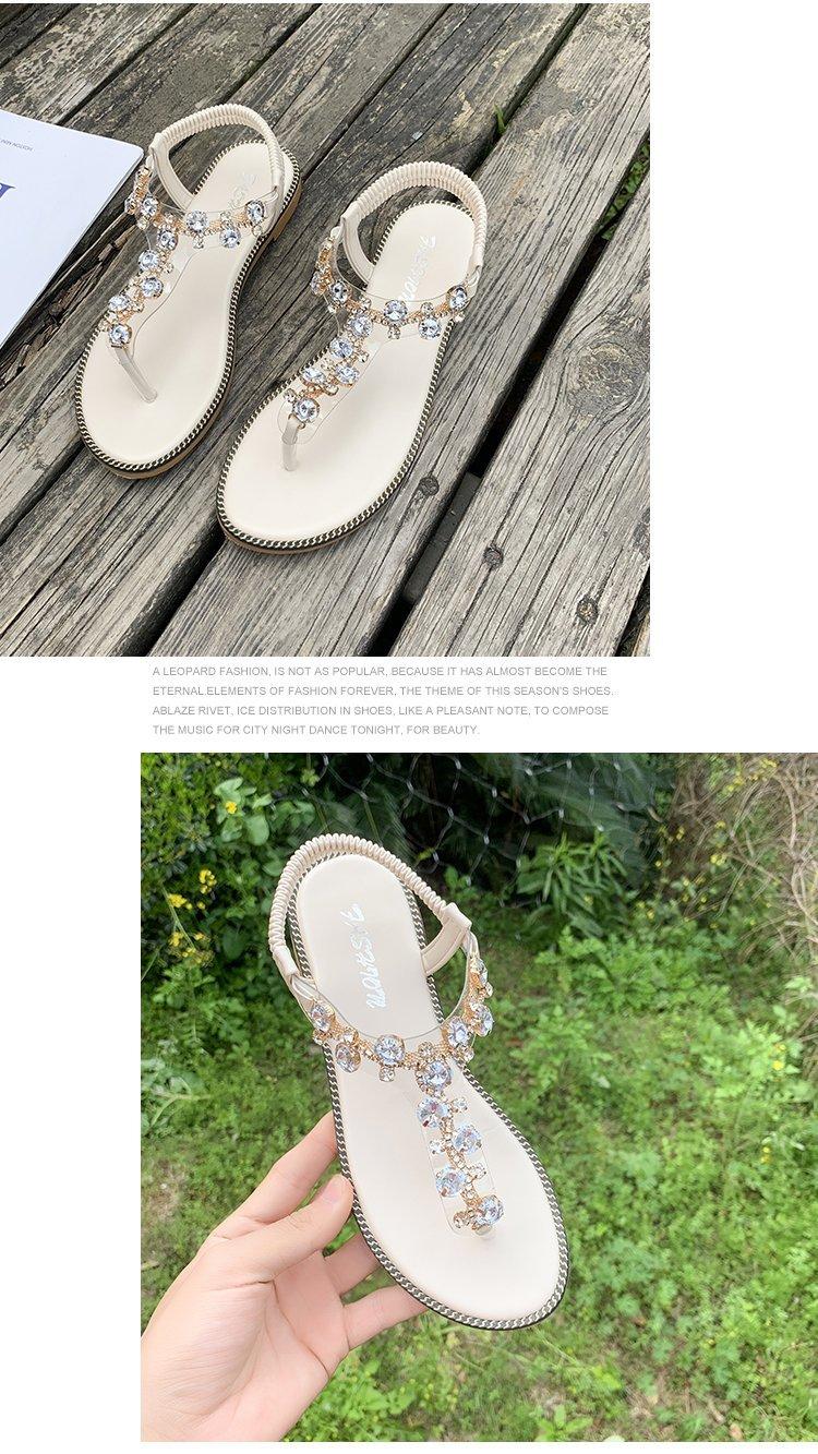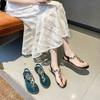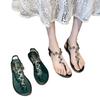 Sandalias Romanas Verano 2025 Nuevo Todo Combinable Estilo Hada Dama Plano Pedrería Espiga Sandalias Zapatos de Playa para Mujer