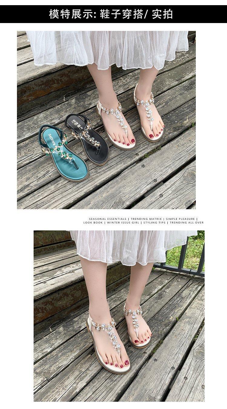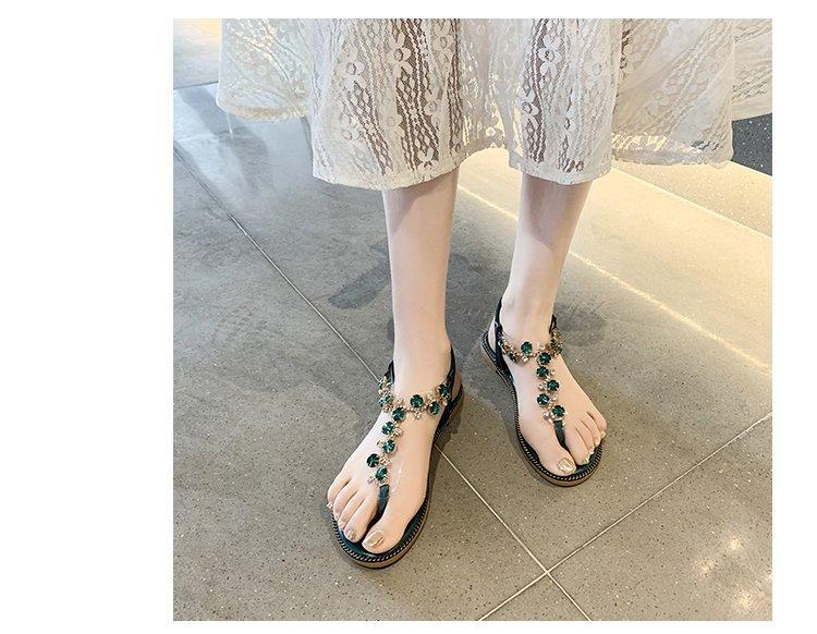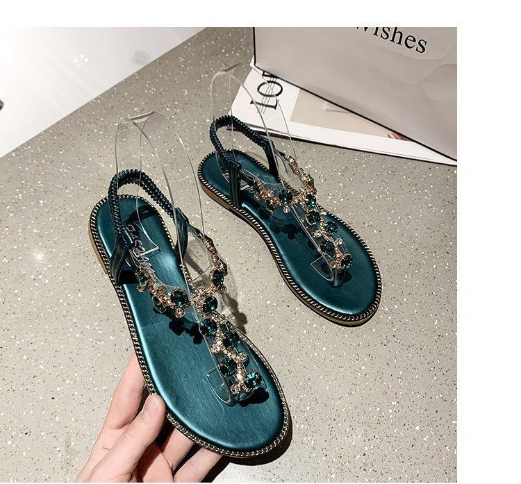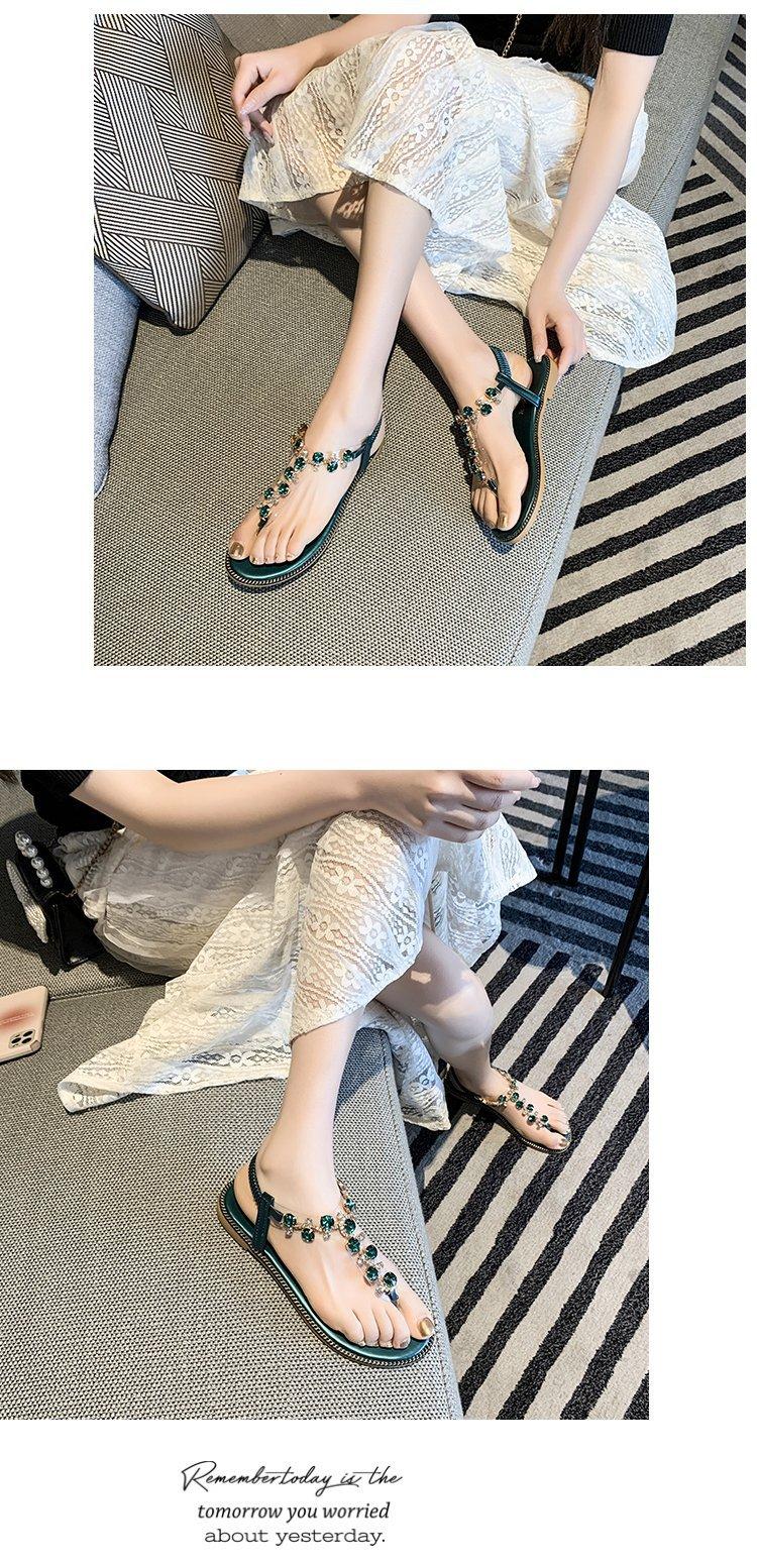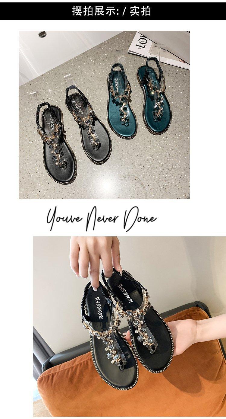 Sandalias Romanas Verano 2025 Nuevo Todo Combinable Estilo Hada Dama Plano Pedrería Espiga Sandalias Zapatos de Playa para Mujer