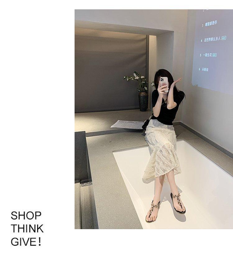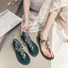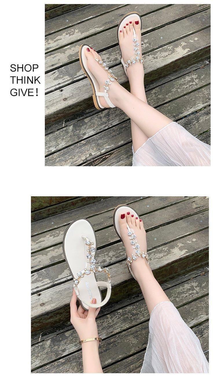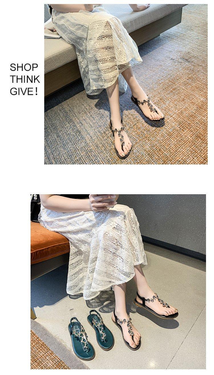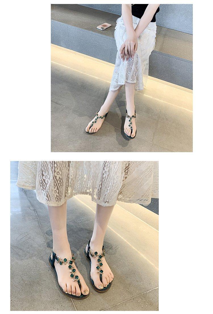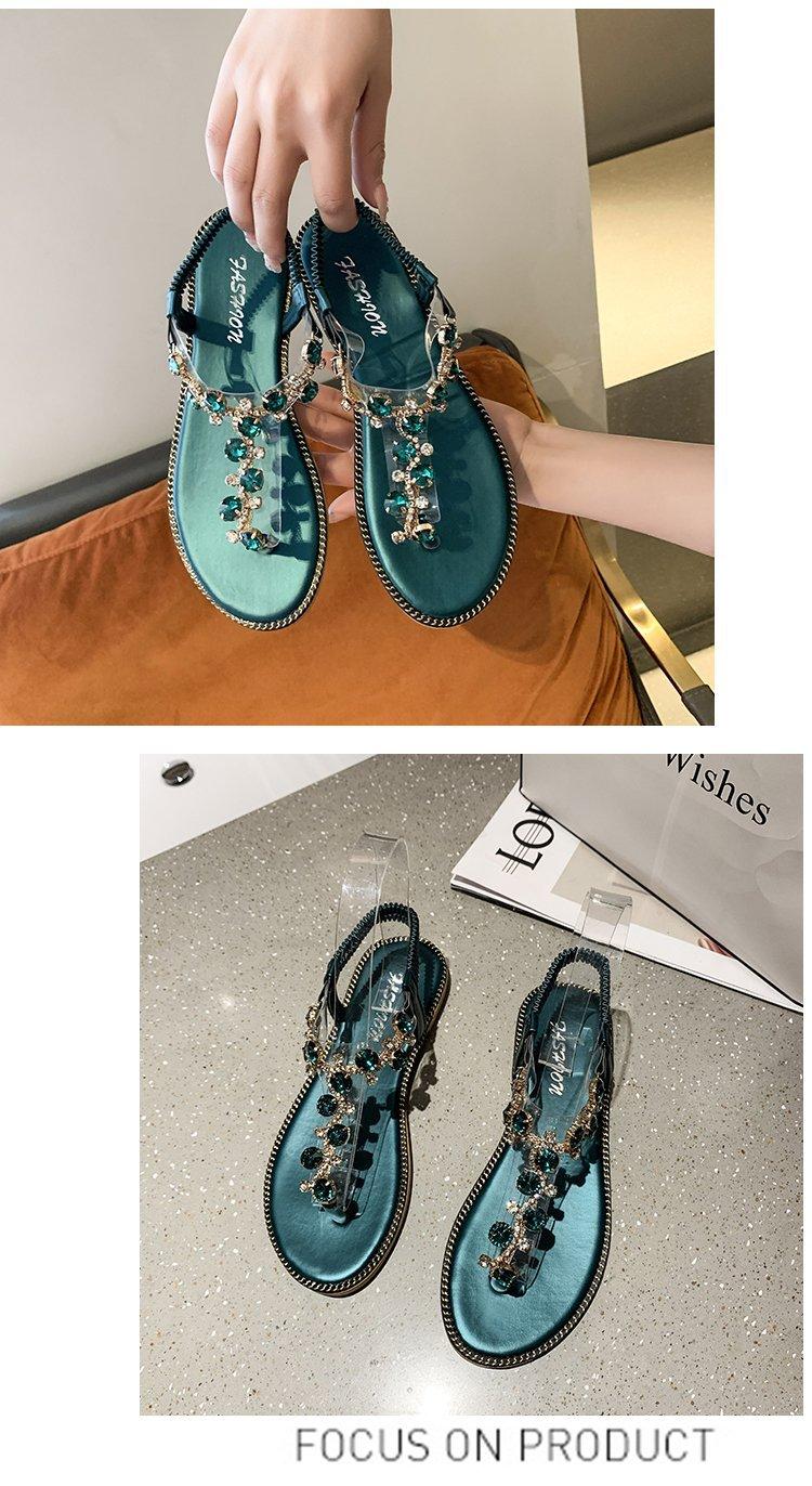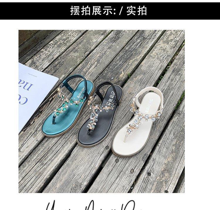 Sandalias Romanas Verano 2025 Nuevo Todo Combinable Estilo Hada Dama Plano Pedrería Espiga Sandalias Zapatos de Playa para Mujer