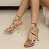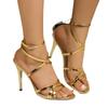 Europeo y Americano Comercio Exterior Talla Grande Combinación de Correas Sandalias de Tacón Alto con Puntera Abierta para Mujer Tacón Delgado Puntera Redonda Correa Anillo para Pie Zapatos de Moda Dorados