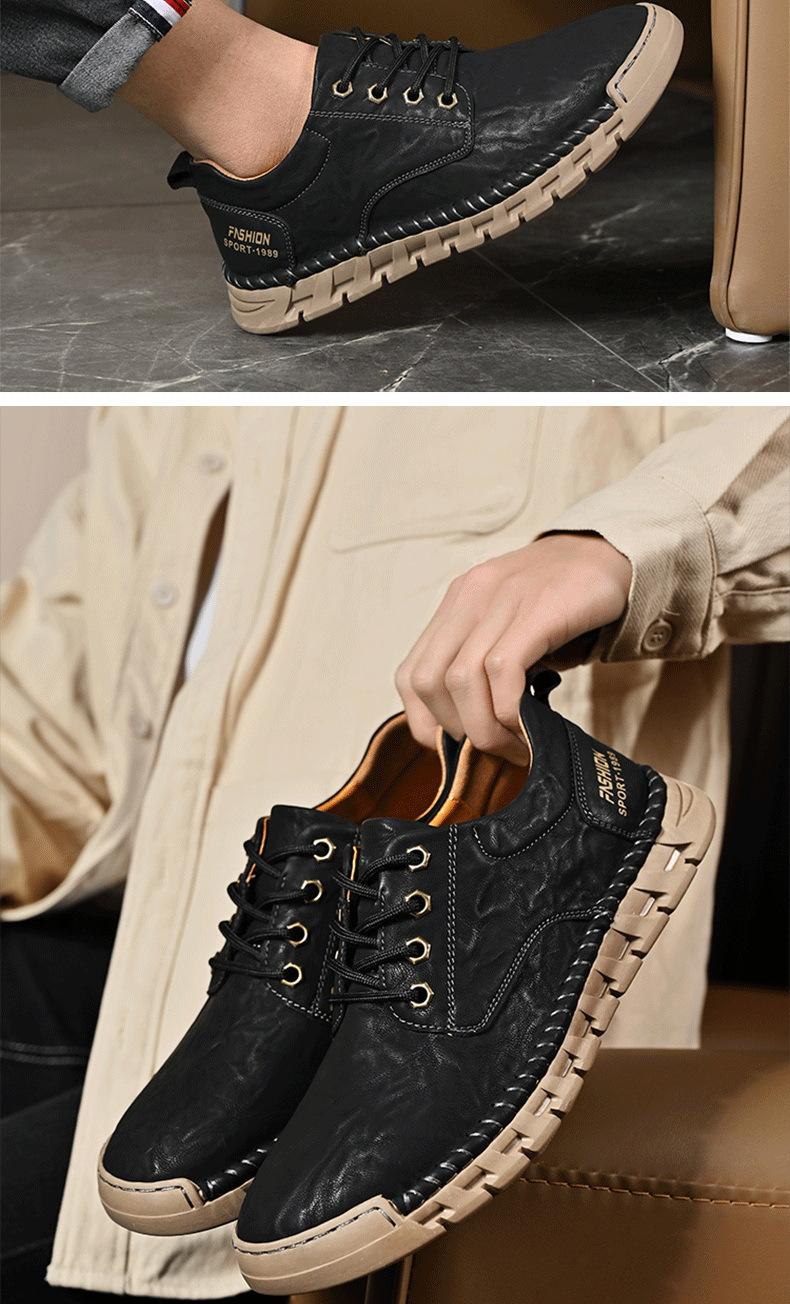 Zapatos de Hombre 2025 Nuevos Primavera Conducción Negro Casual Zapatos de Cuero Mocasines Slip-on de Suela Blanda con Cordones para Hombre