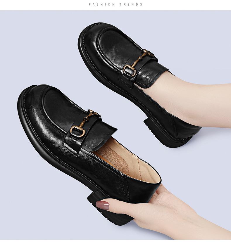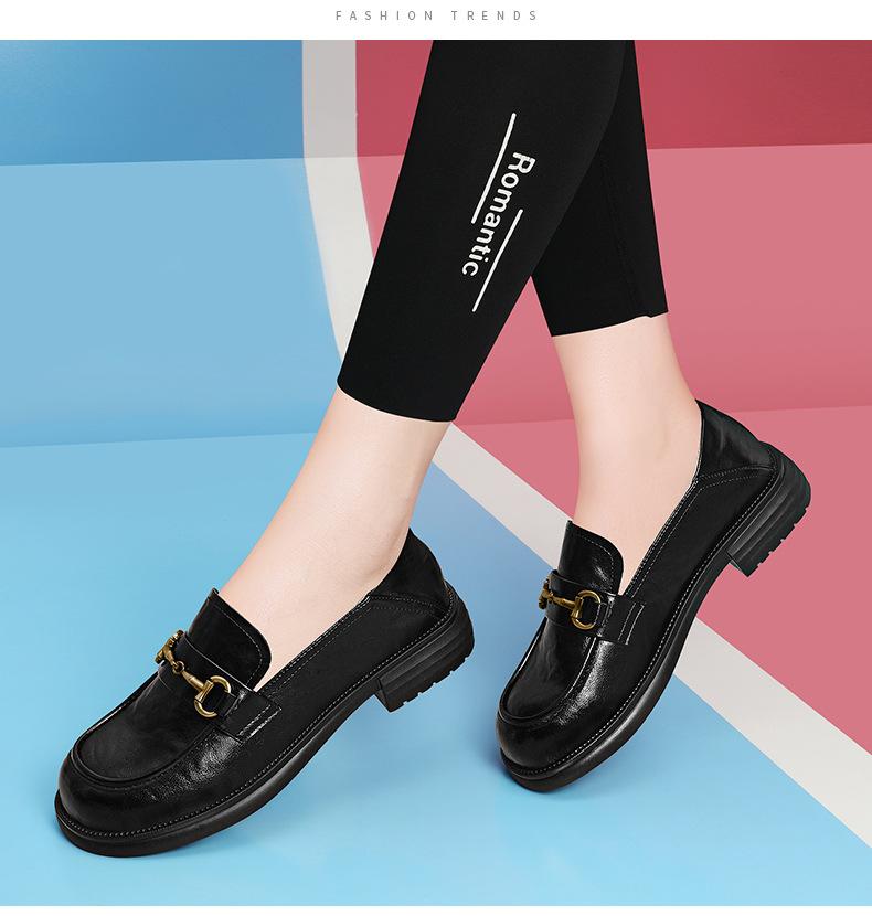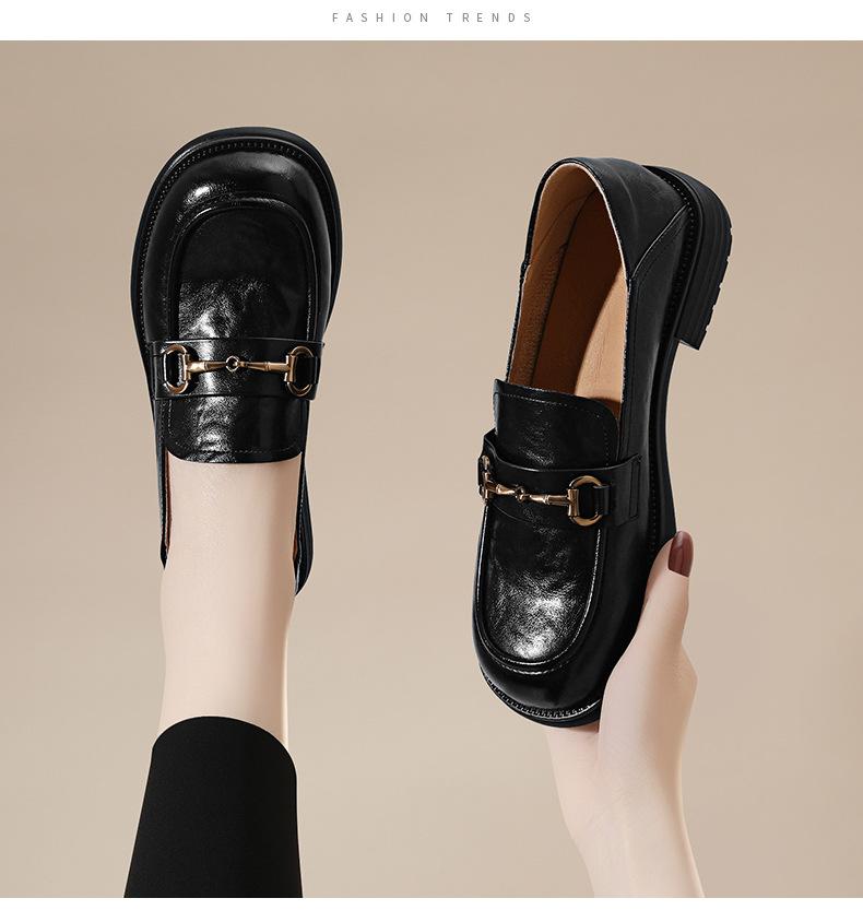 Mocasines Casuales Británicos Zapatos de Mujer Zapatos de Mujer para Viajar Zapatos de Cuero Pequeños Primavera 2025 Nuevos Gruesos Slip-on Zapatos de Cuero Pequeños