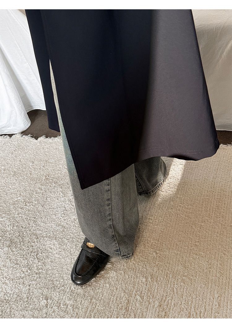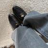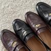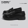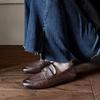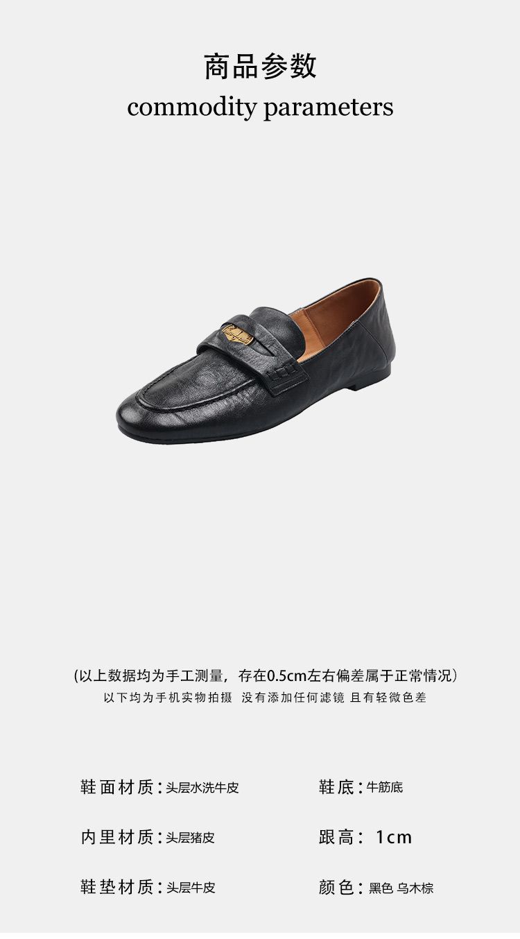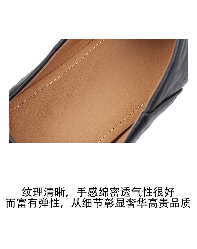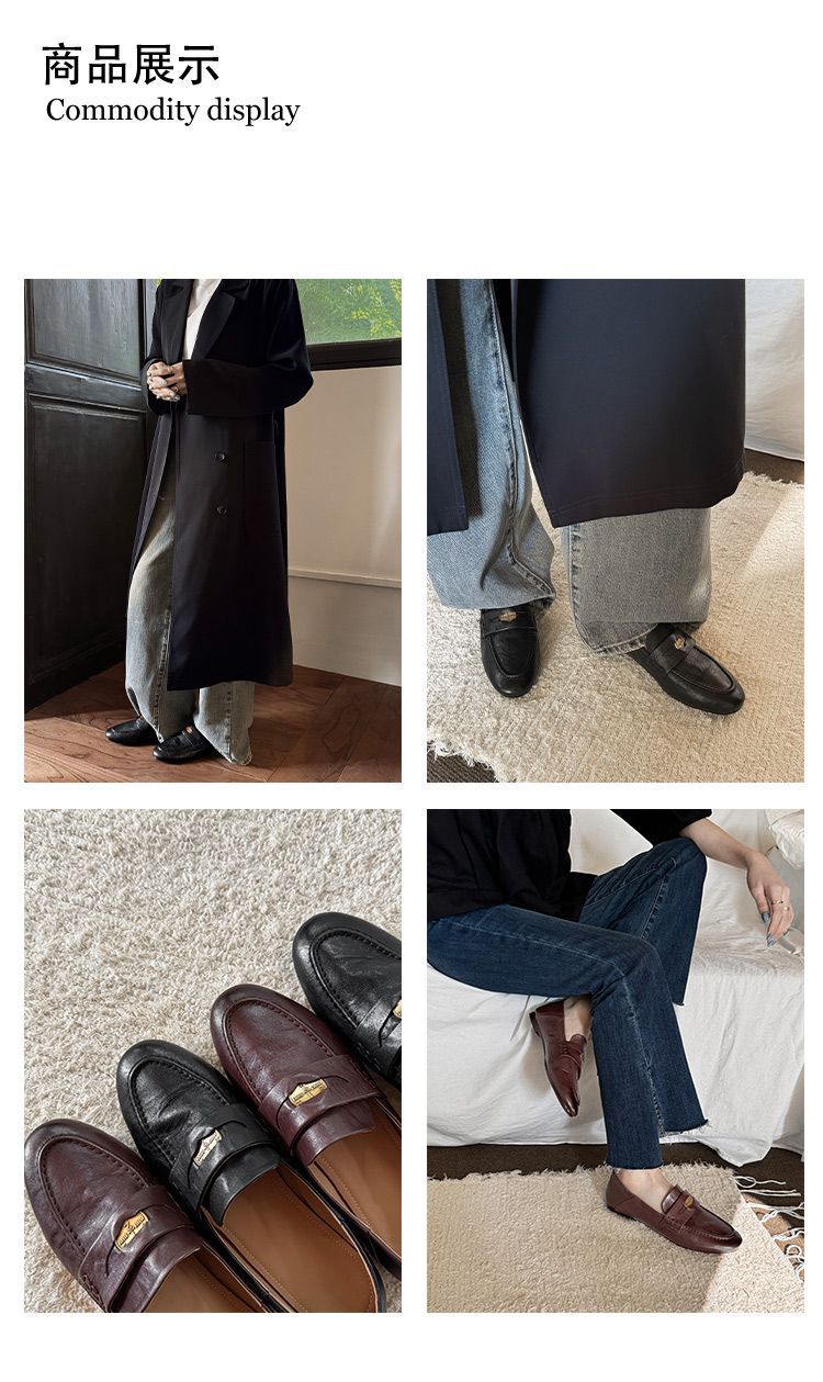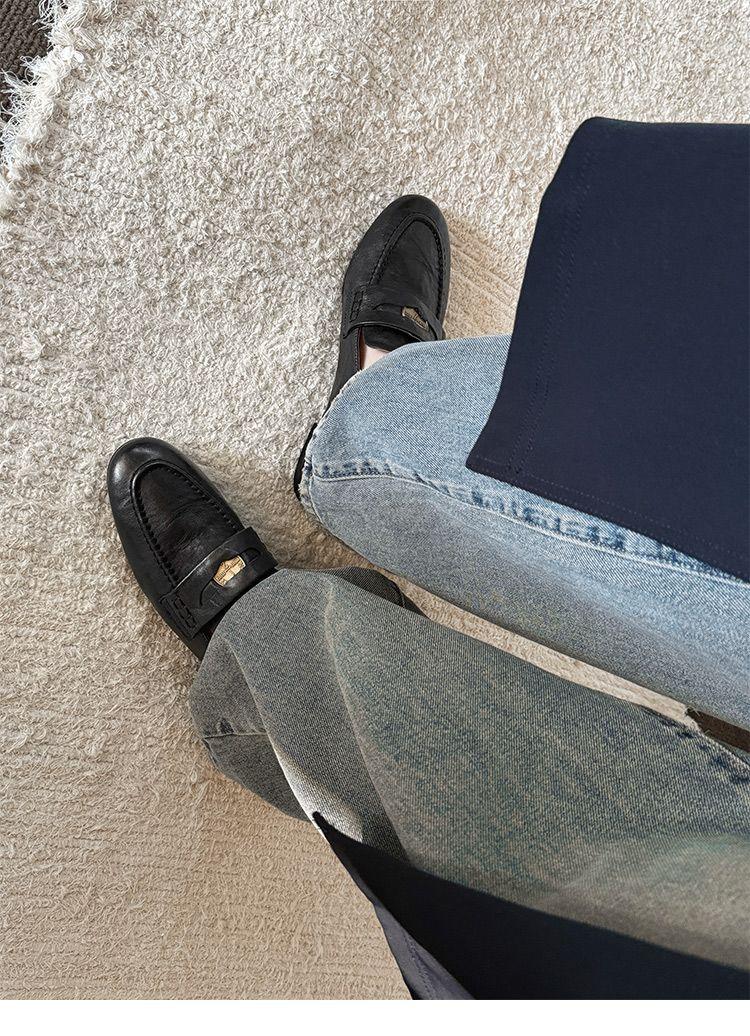 Mocasines planos de punta redonda con nicho francés para mujer, nuevos zapatos de primavera, de cuero genuino, de tacón bajo, negros, para niños.