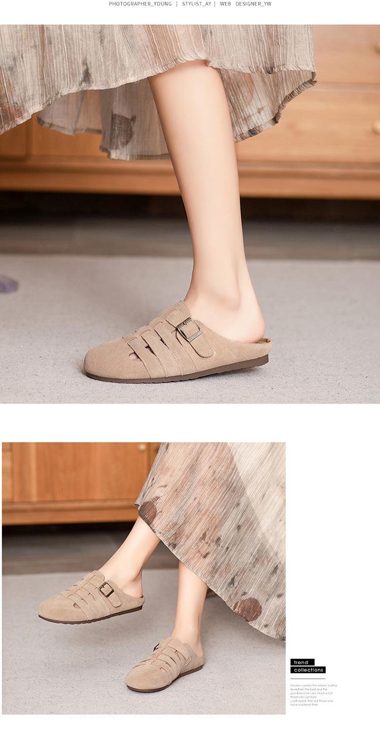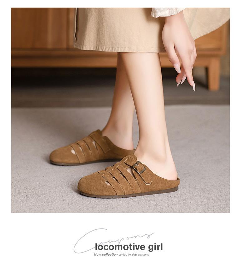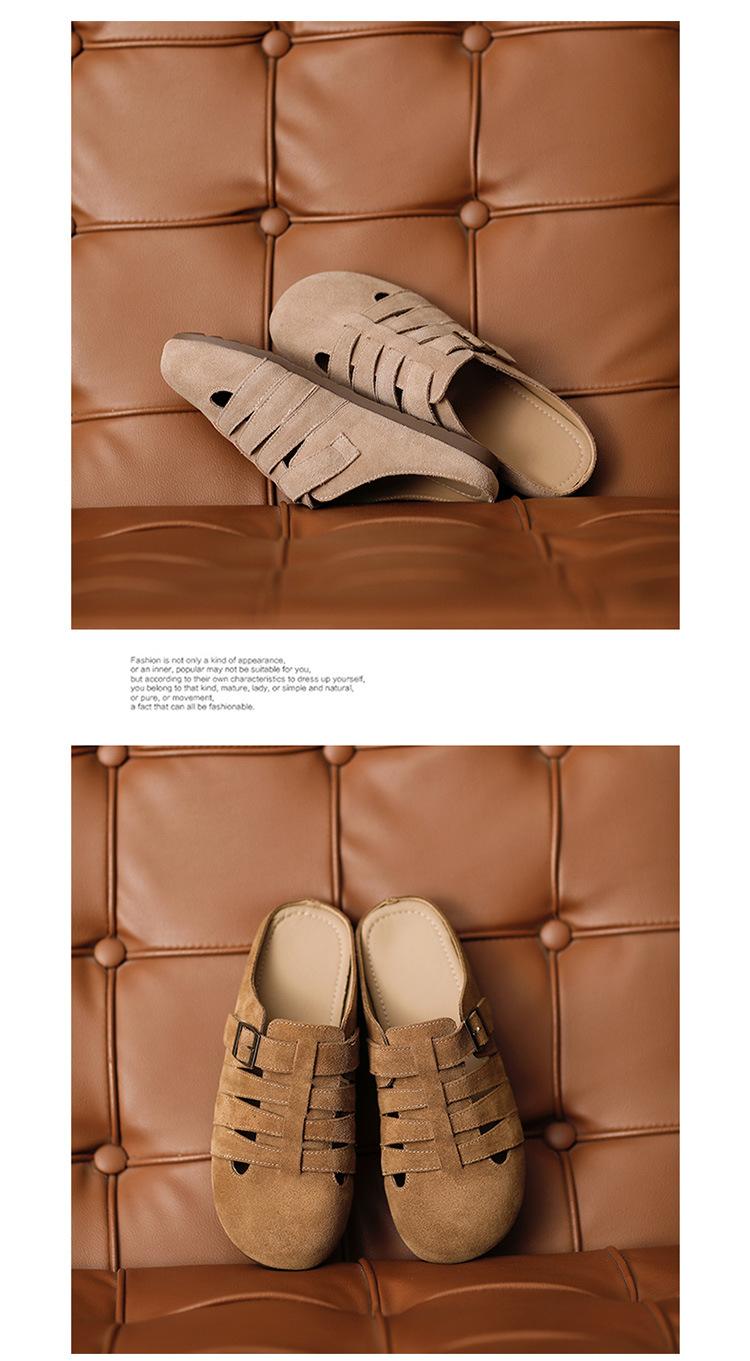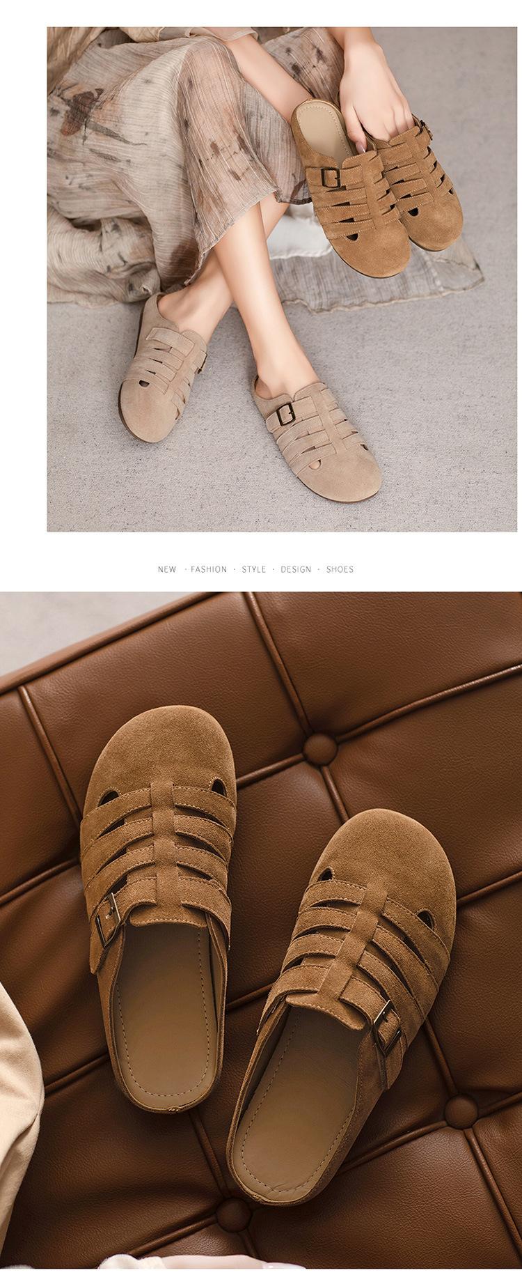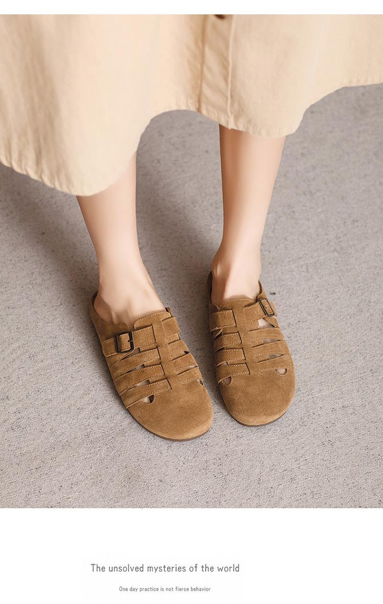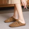 Primavera y Verano 2025 Nuevas Pantuflas Tejidas Vintage Genuinas Birkenstock Planas de Piel Vacuna Mueller Pantuflas Medias con Puntera