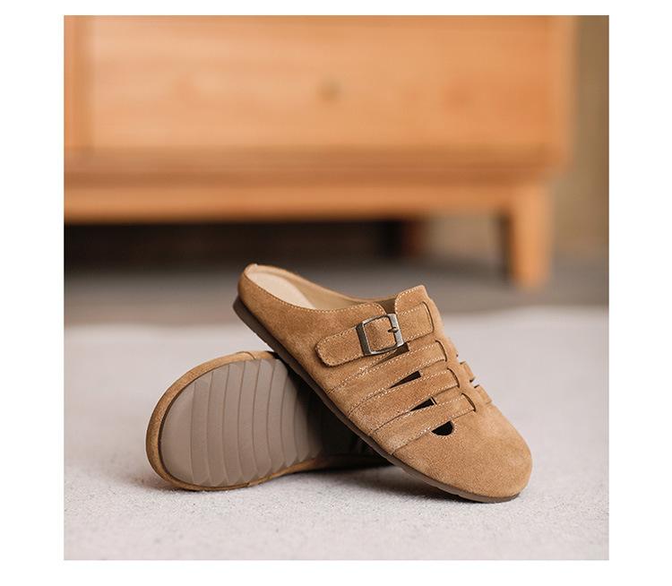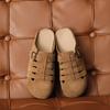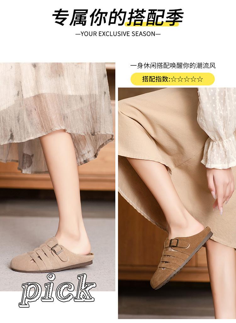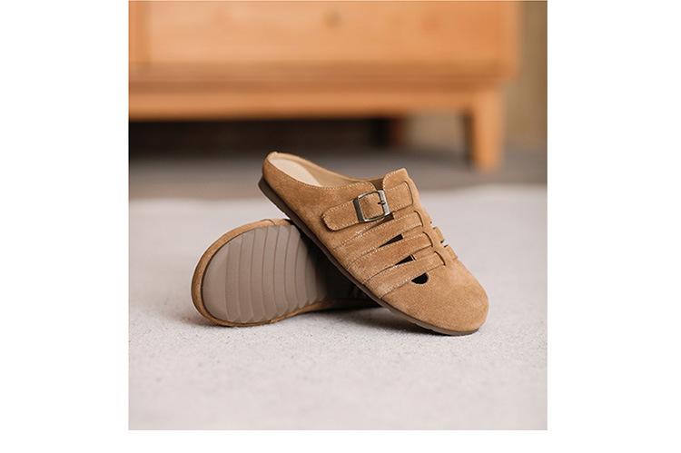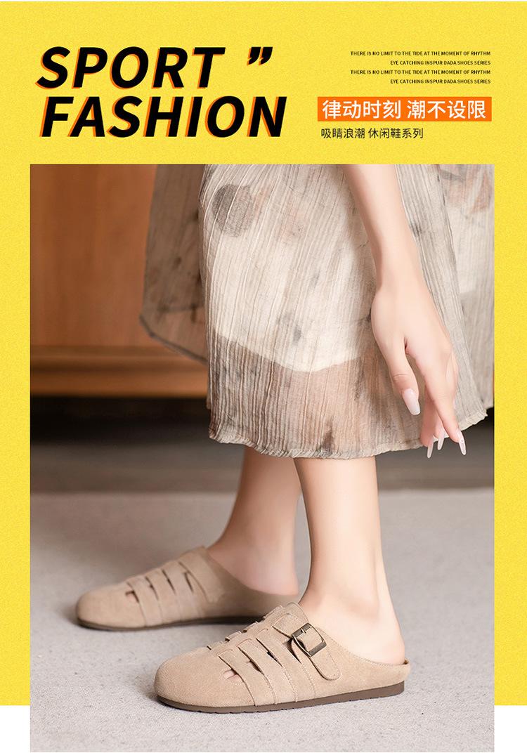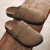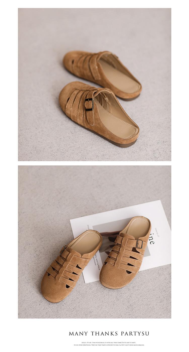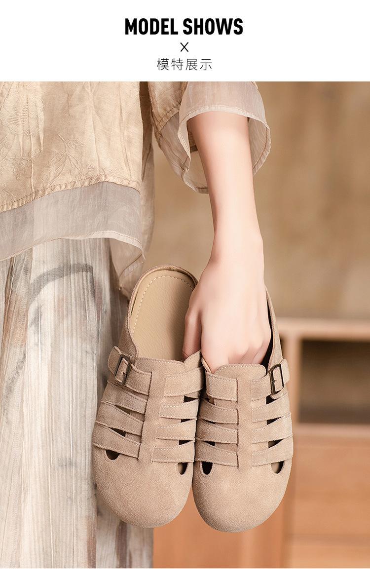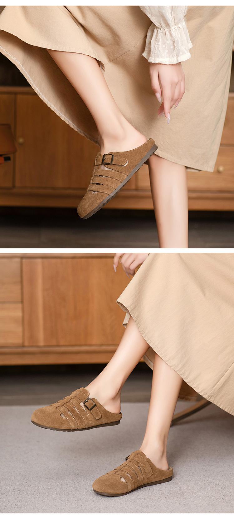 Primavera y Verano 2025 Nuevas Pantuflas Tejidas Vintage Genuinas Birkenstock Planas de Piel Vacuna Mueller Pantuflas Medias con Puntera