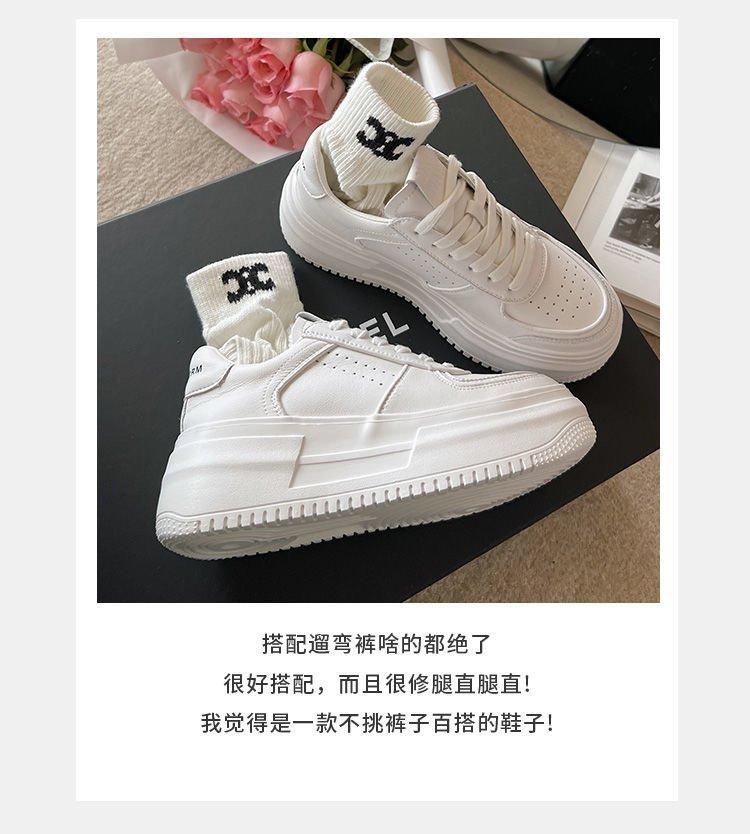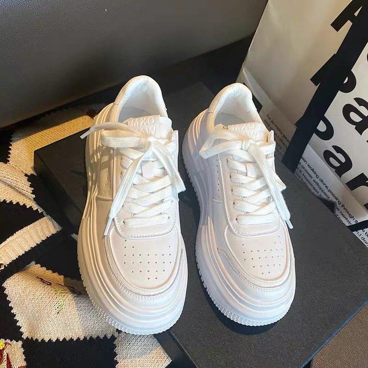 Zapatos de plataforma con suela gruesa para estudiantes, para mujer, tendencia ins, primavera 2025, nuevos, deportivos casuales, combinables, pequeños, blancos, zapatos de skate