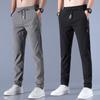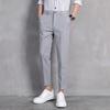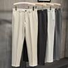 Pantalones de traje pequeños de moda de estilo coreano para hombre, pantalones casuales ajustados negros de verano de seda fina de hielo