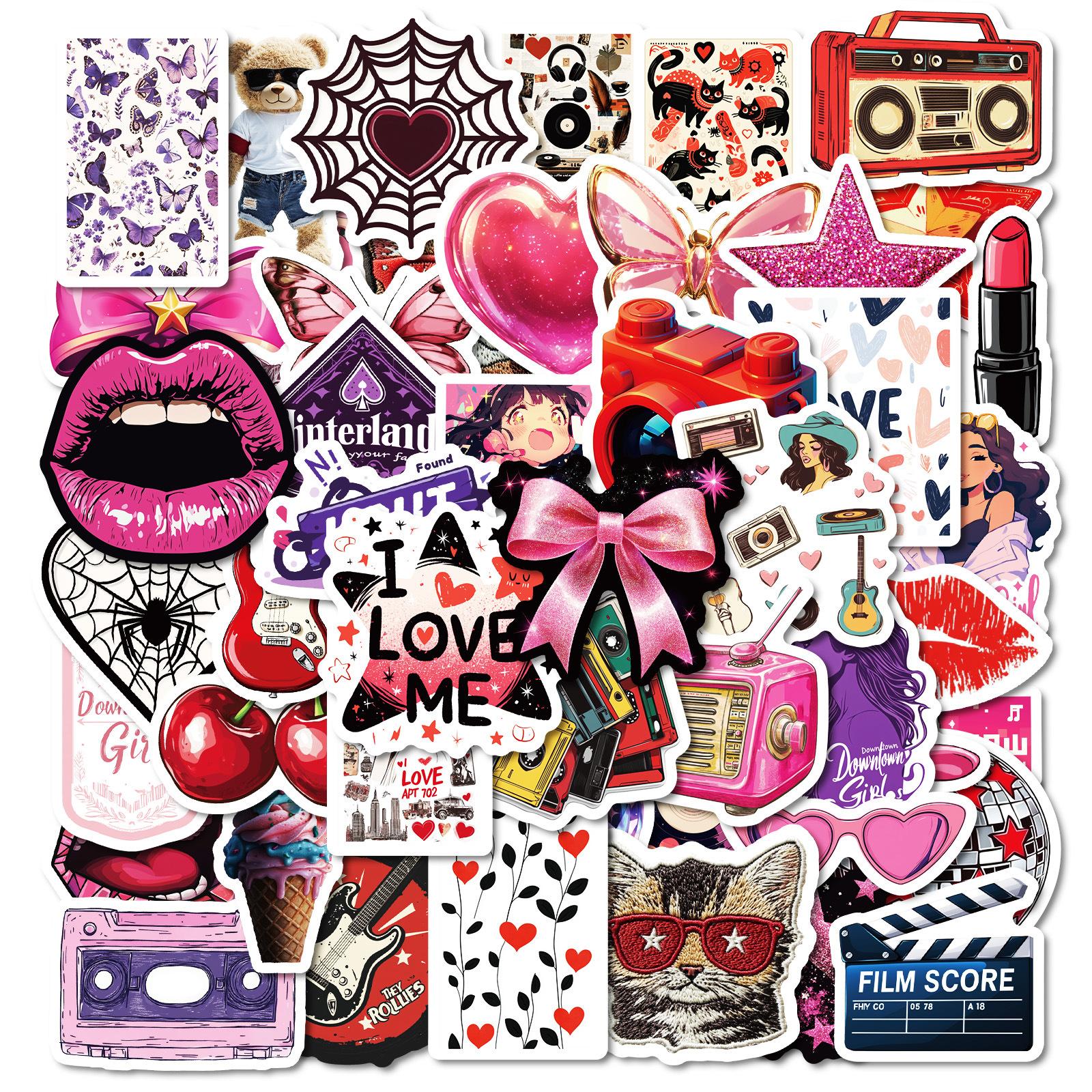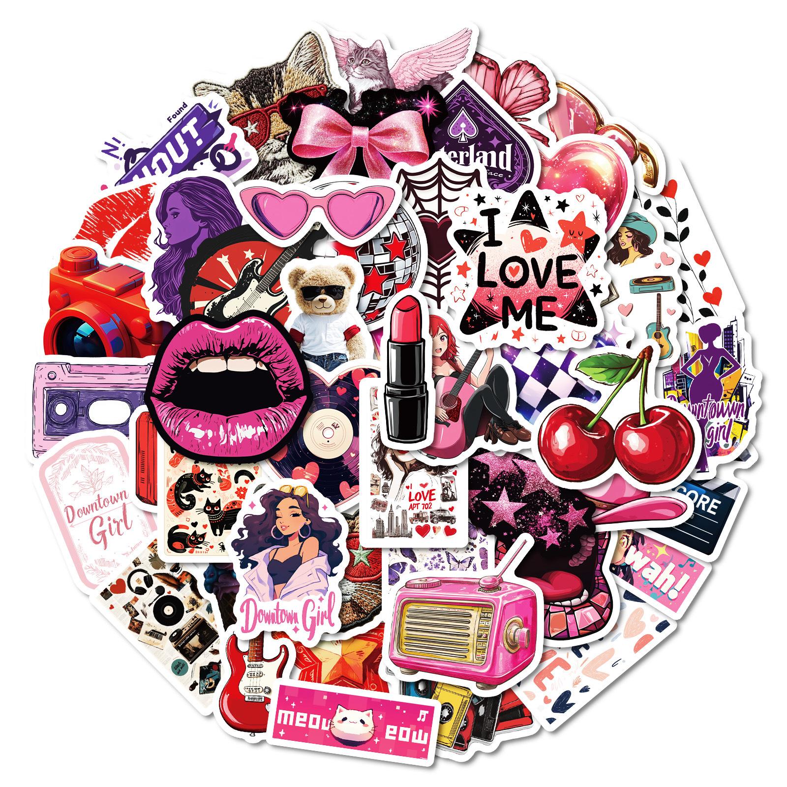 50 pegatinas de la serie de labios rojos calientes transfronterizos decorativas para tazas, equipaje, cuadernos, pegatinas de grafiti, comercio exterior en stock