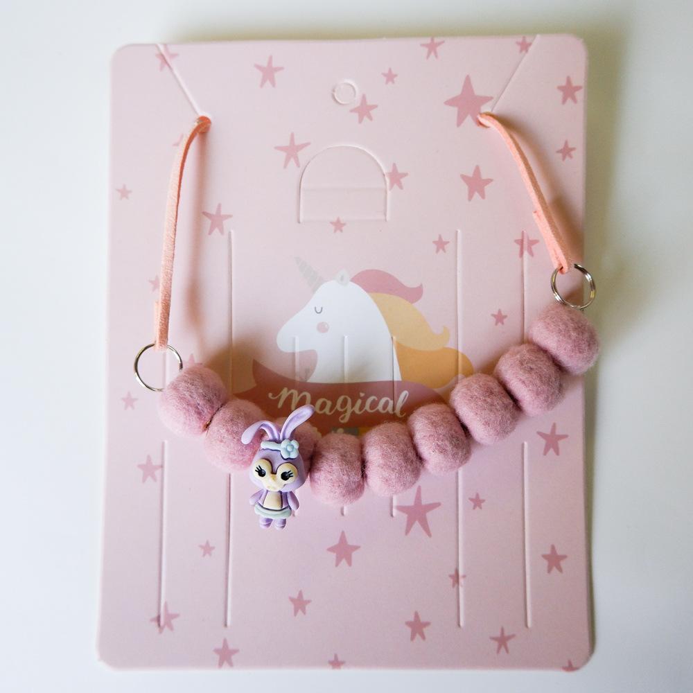 Collar infantil de cuentas de dibujos animados súper lindo, cuentas coreanas rosas, embalaje individual para niñas, accesorios de regalo para tienda de ropa infantil