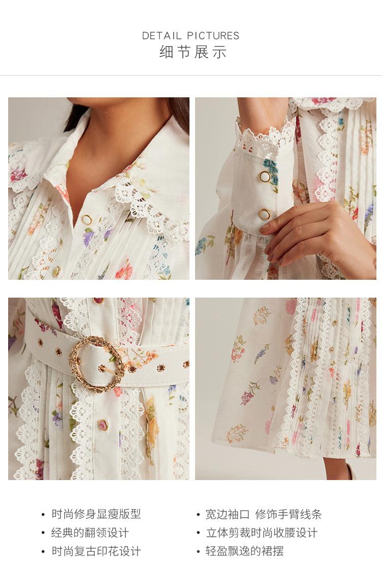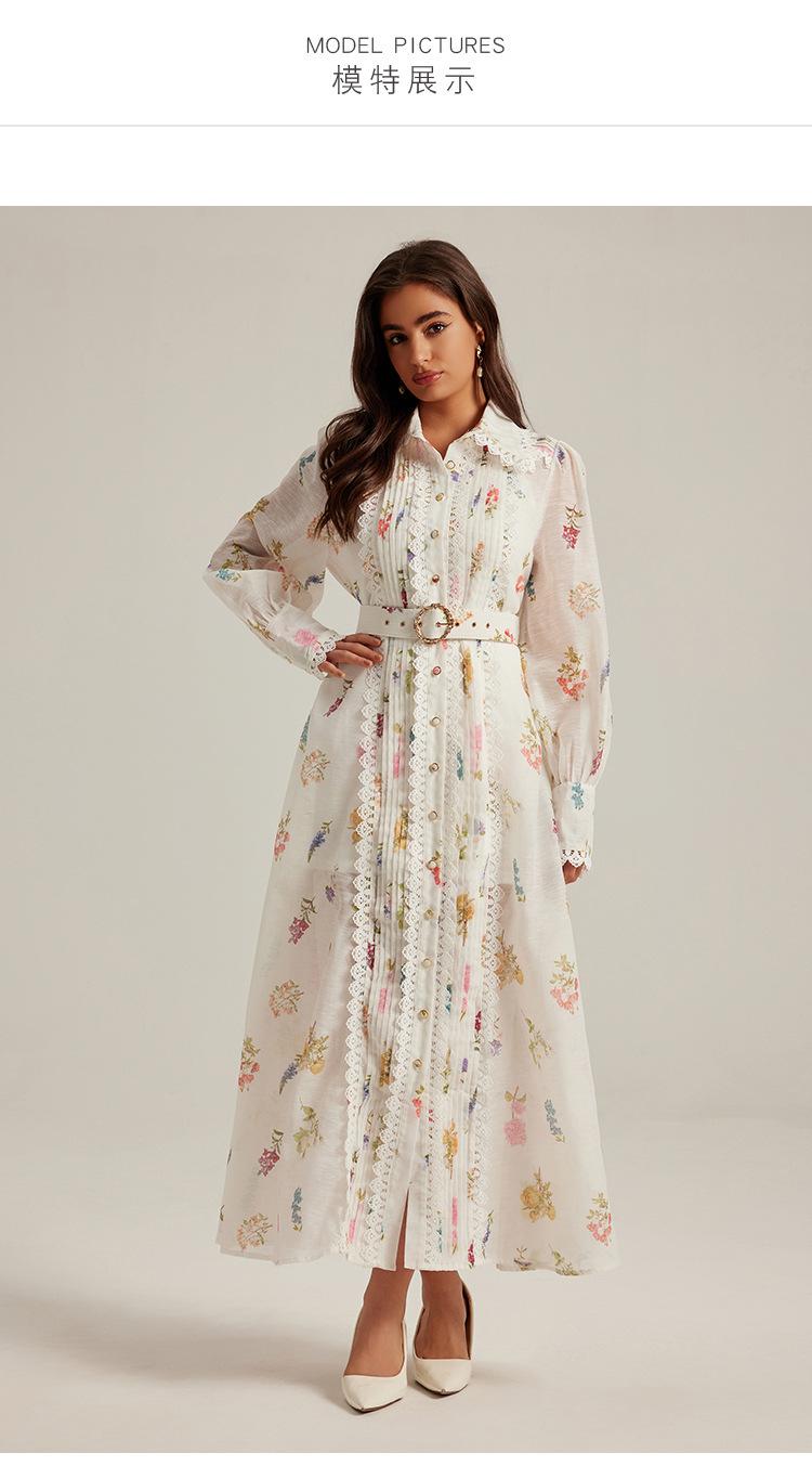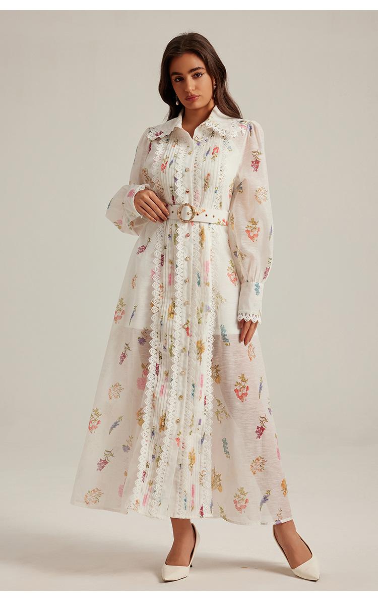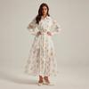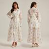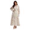Compra Vestido de Moda Estilo Festivo con Encaje, Estampado, Cuello Alto, Manga Larga, Cruzado Sencillo, Cintura Ajustada para Mujer con Cinturón de Tirantes al por mayor en Joom.pro