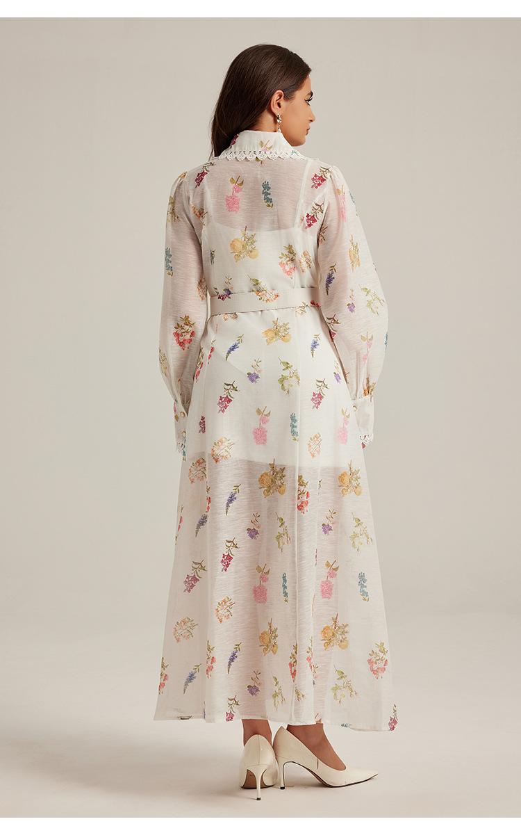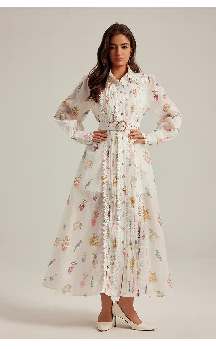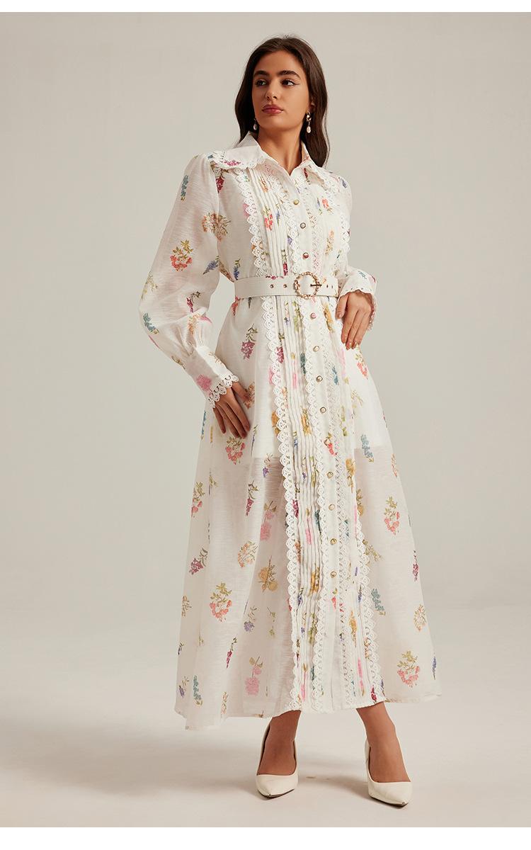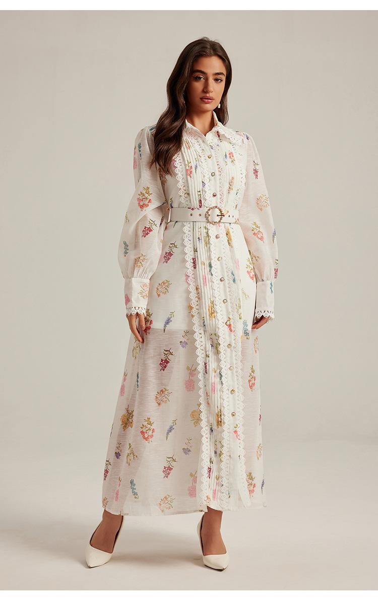 Compra Vestido de Moda Estilo Festivo con Encaje, Estampado, Cuello Alto, Manga Larga, Cruzado Sencillo, Cintura Ajustada para Mujer con Cinturón de Tirantes al por mayor en Joom.pro