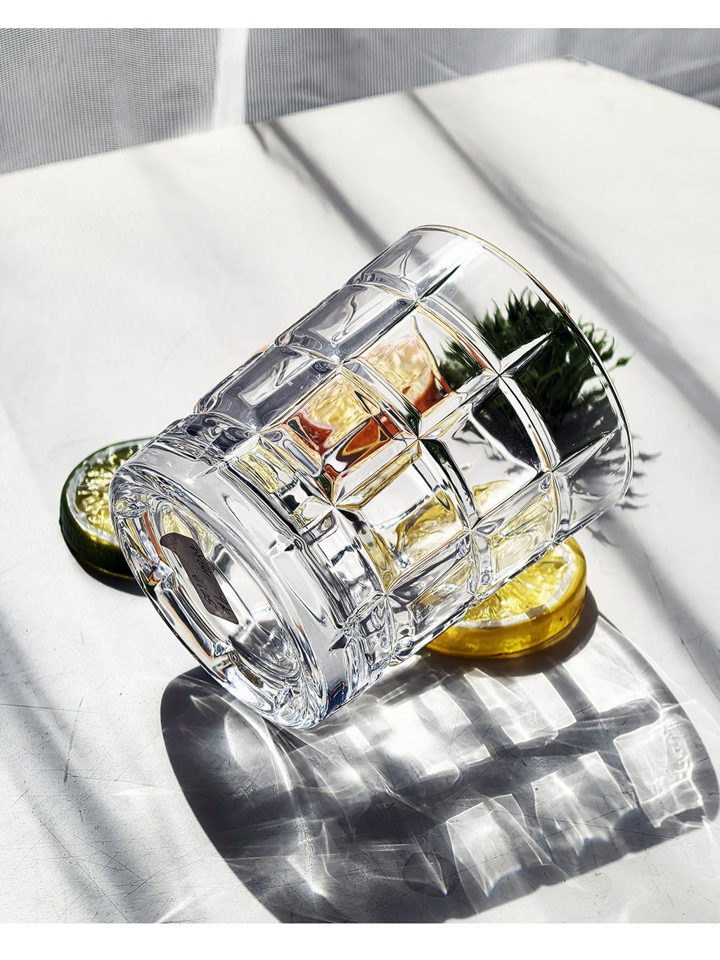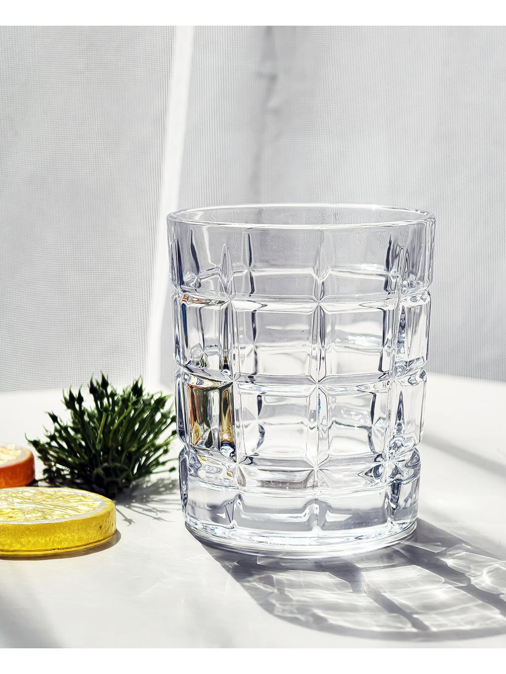 Compra Vaso de whisky de cristal sin plomo de 320 ml, copa de vino transparente, fondo grueso, cuadrado, a cuadros, para cerveza al por mayor en Joom.pro