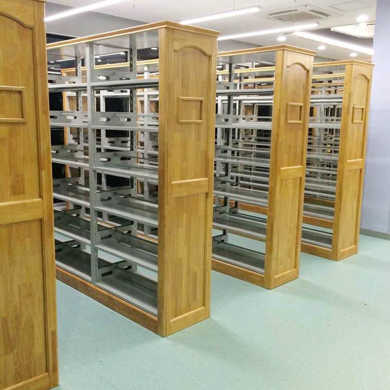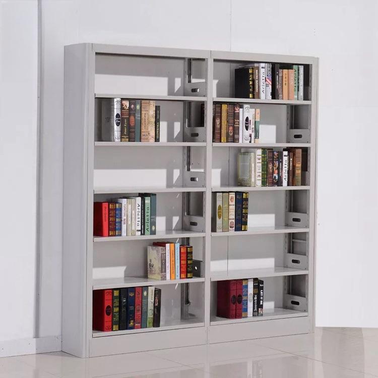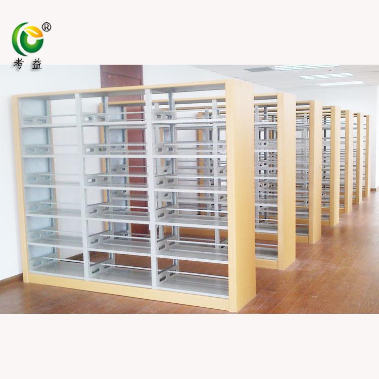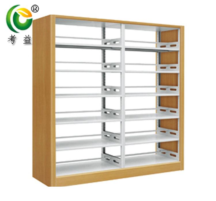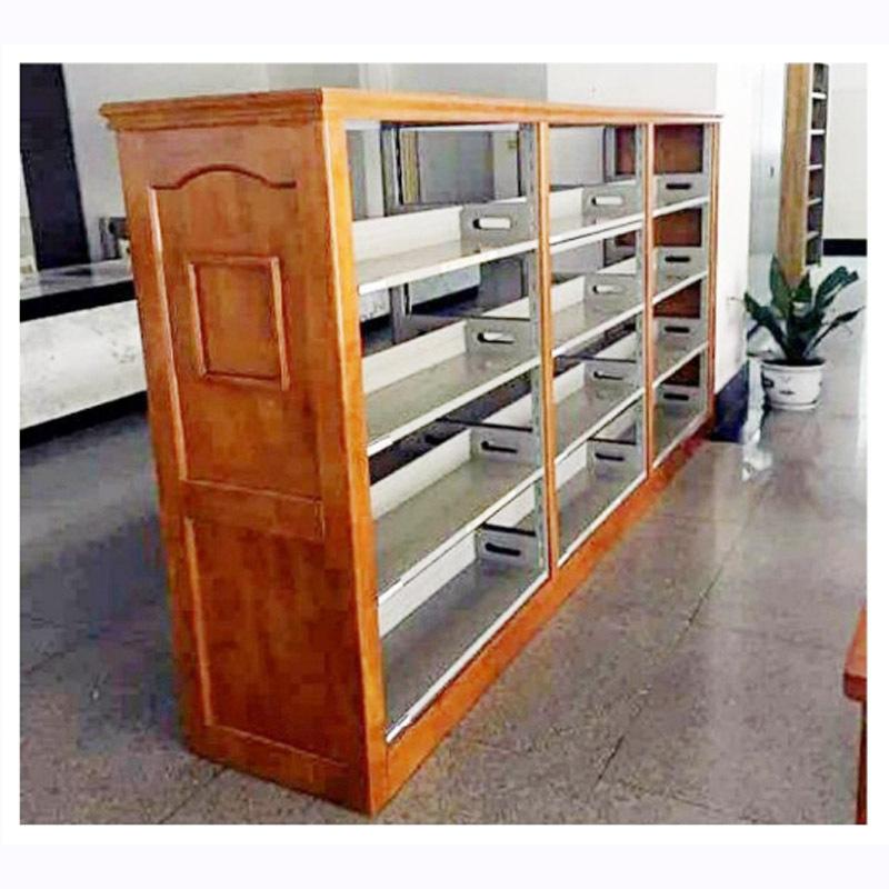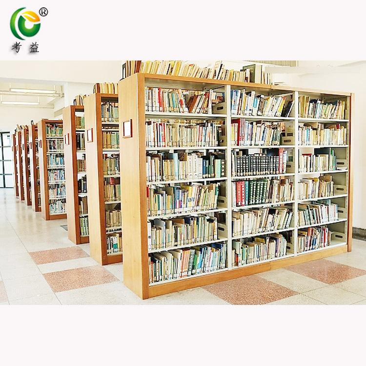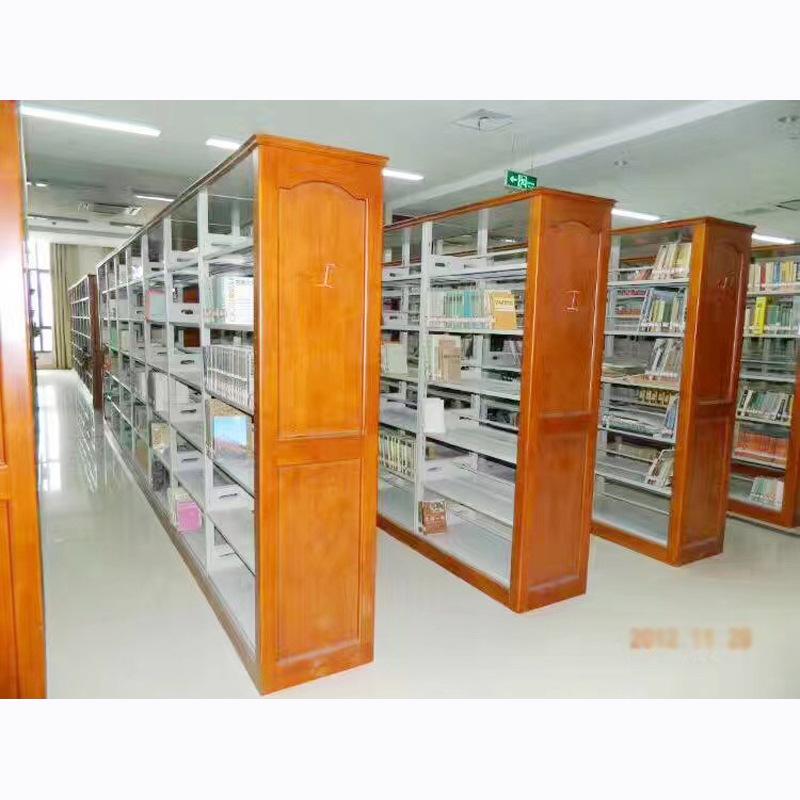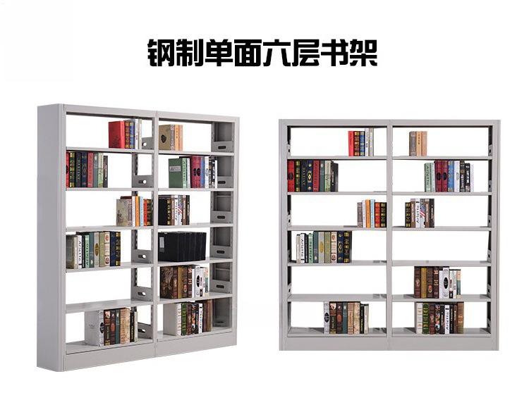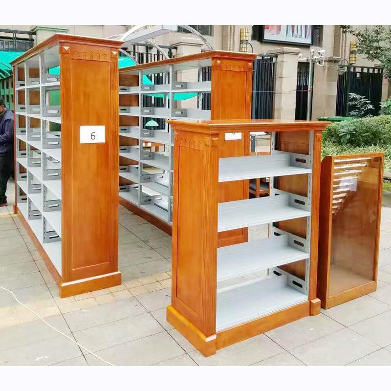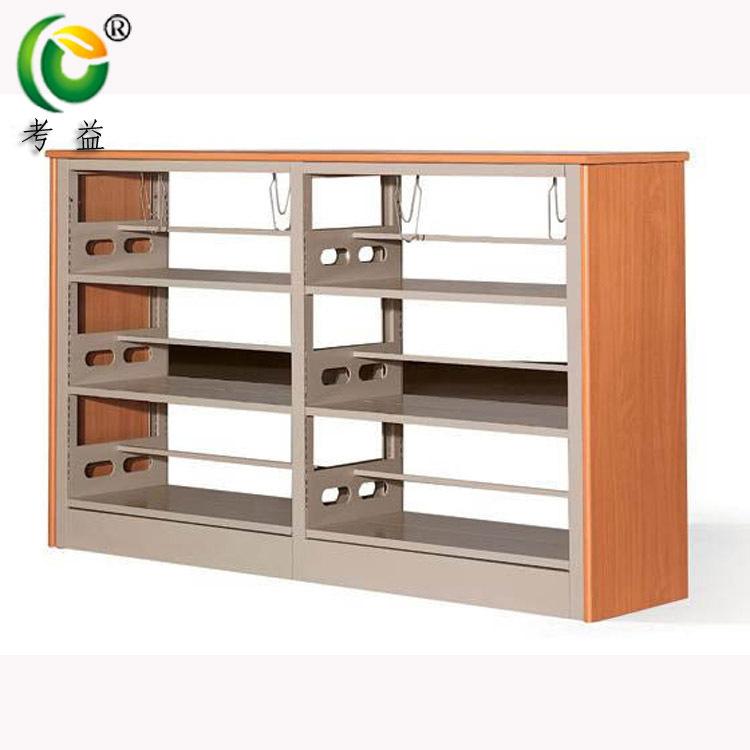 Librero lateral de roble de seis capas de doble columna de una cara, librero corto para niños escolares, librero de acero con placa de madera, librero para libros antiguos