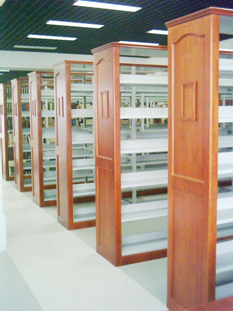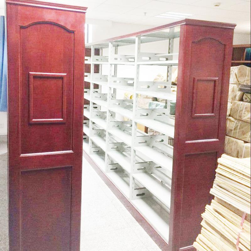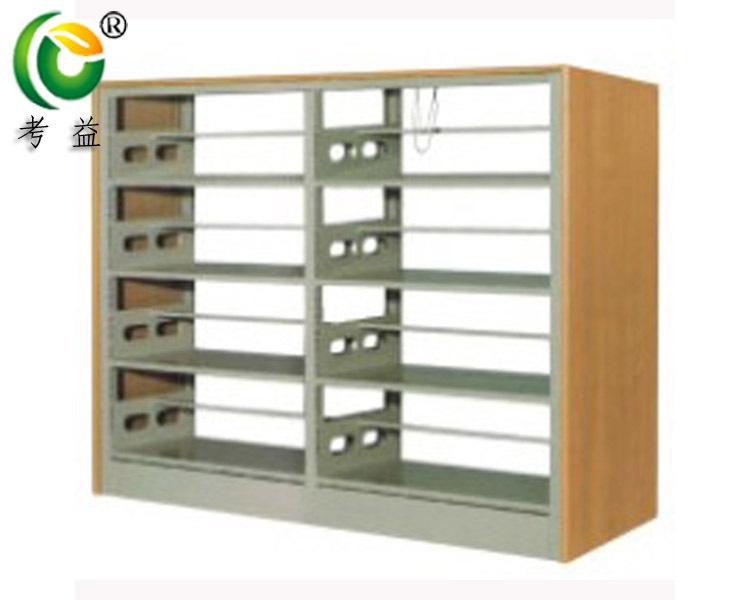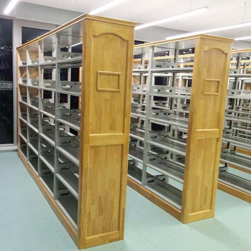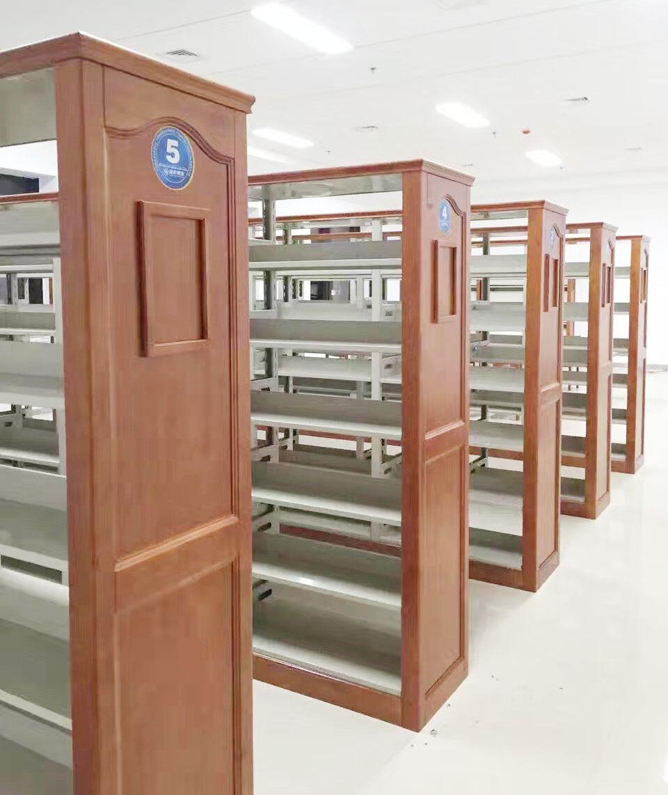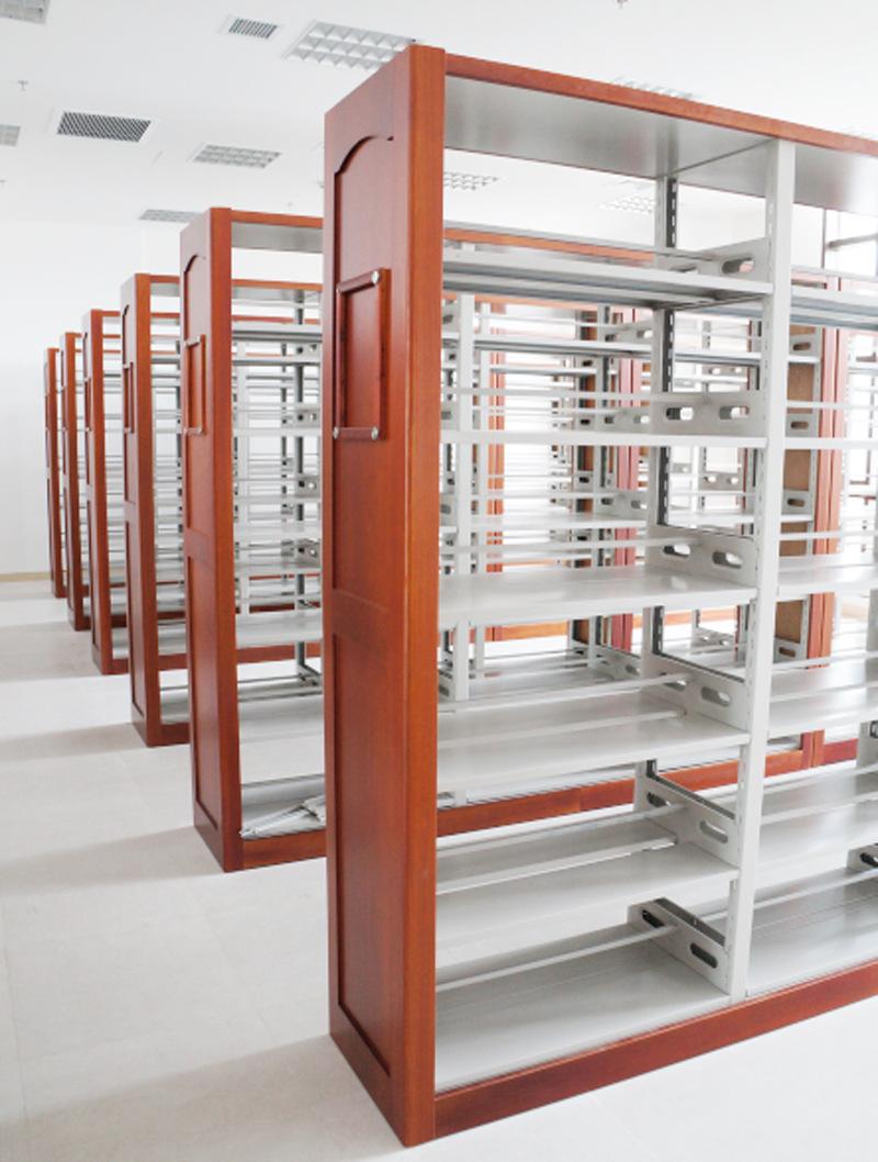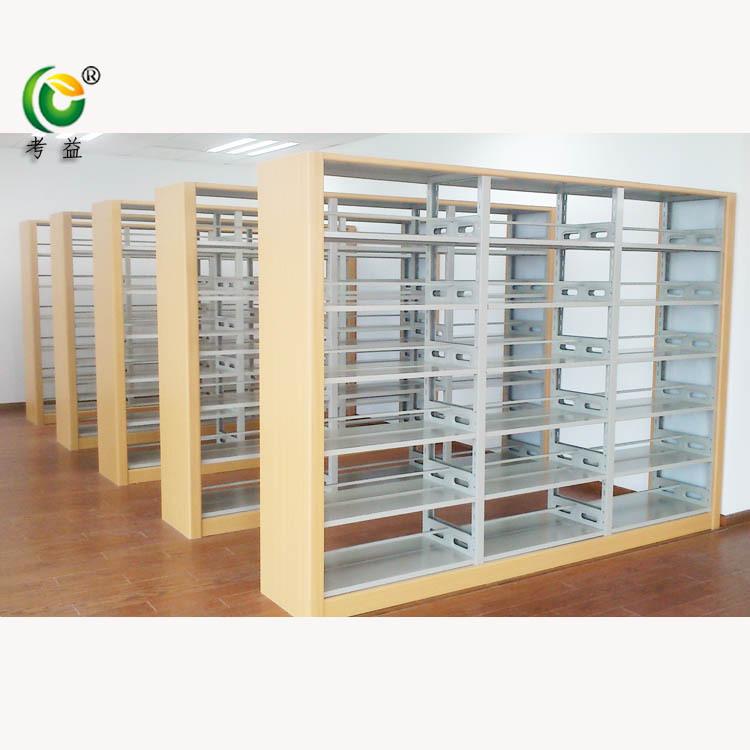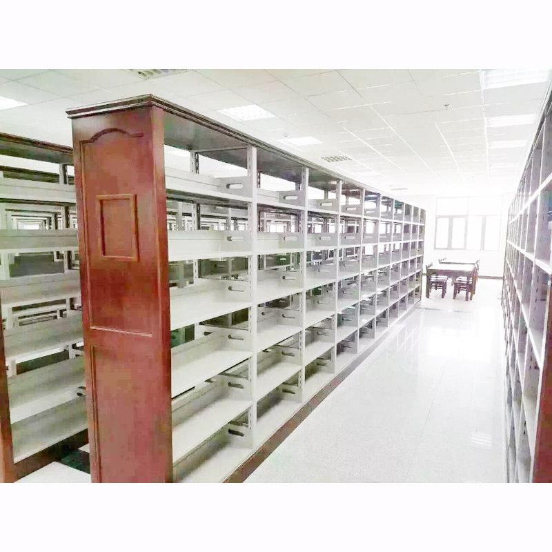 Librero lateral de roble de seis capas de doble columna de una cara, librero corto para niños escolares, librero de acero con placa de madera, librero para libros antiguos